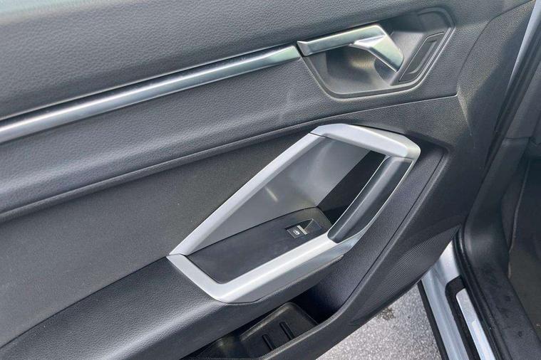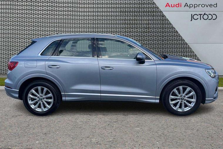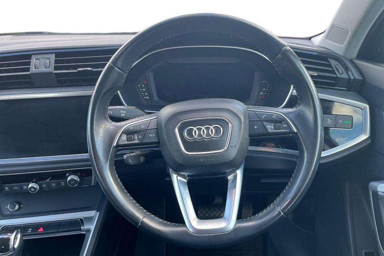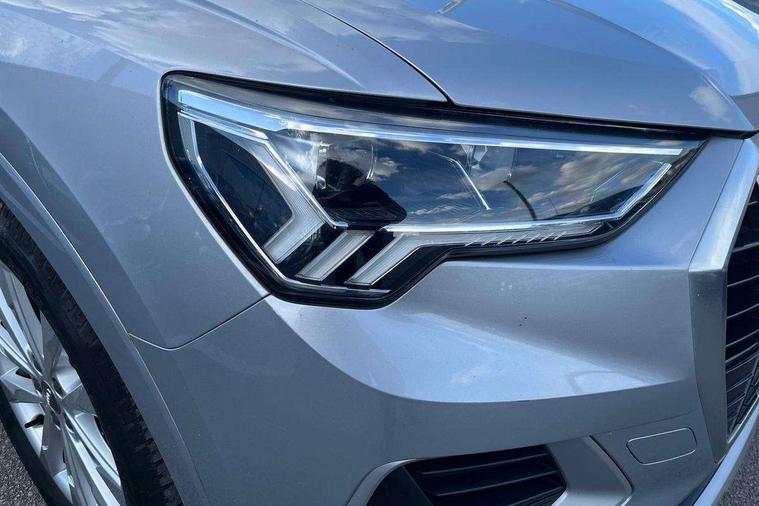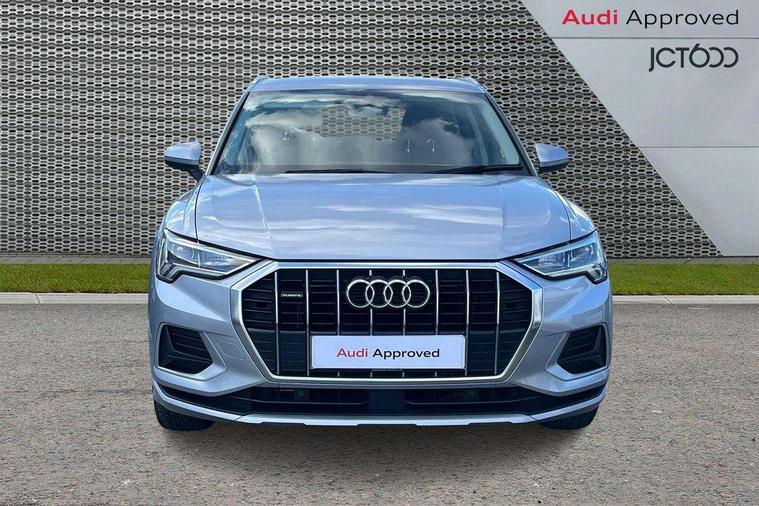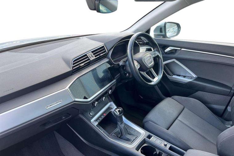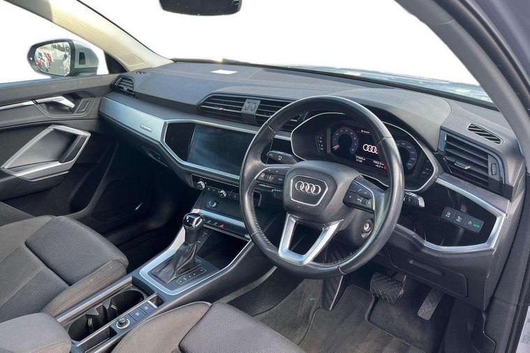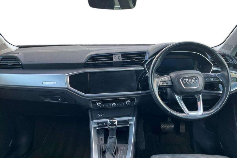 Audi connect safety and service (e-call), Audi drive select, Audi lane departure warning, Audi side assist, Audi smartphone interface, Bluetooth interface, Camera based traffic sign recognition, MMI navigation plus with MMI touch, Power opening/closing tailgate, Progressive steering, Rear parking sensors, Service interval indicator, Stop/start system, Voice control system, Standard suspension, 1 x USB type C and 1 USB type A charging points, 6 speakers, DAB digital radio module, Acoustic windscreen, Aluminium roof rails, Aluminium window trim, Auto dimming rear view mirror, Body coloured bumpers, Electrically adjustable and heated door mirrors with integrated LED side indicators, Front and rear electric windows, Front fog lights, Front side air inlets in matt selenite silver, Front spoiler in matt selenite silver, Grille vertical bars in aluminium silver/Matt, High gloss black finish B and C pillars, LED headlights with LED daytime running lights and dynamic rear indicator, LED rear lights, Rain and light sensors, Rear diffuser strip in selenite silver, Titanium black radiator grille, 12V socket in rear centre console, 40:20:40 split folding rear bench seat, Adjustable rear seat bench/backrest, Aluminium door sill trims, Dual zone climate control, Front and rear headrests, Front and rear velour floor mats, Front centre armrest with storage compartment and angle adjustment, ISOFIX child seat mounting and Top Tether with front passenger airbag deactivation, Lunar silver cloth headlining, Manual front seats with height adjustment, Stainless steel luggage compartment sill finisher, Non smoking pack - Q3, 3x3 point rear seatbelts, 6 airbags - Driver, front passenger, curtain and side windows, Audi pre-sense front with pedestrain and cyclist recognition, Electrically operated child locks on rear doors, Electromechanical parking brake, Electronic stabilisation control including ABS, ASR and EDL, Hill hold assist, Pre sense basic, Seatbelt monitoring, Tyre pressure warning, Warning triangle and first aid kit, Anti theft alarm, Anti theft wheel bolts, Remote central locking, MMI touch colour display in gloss black with aluminium surround,