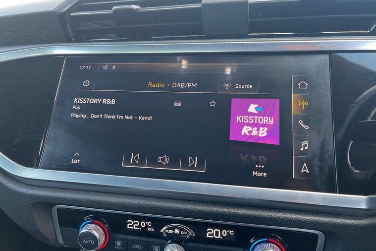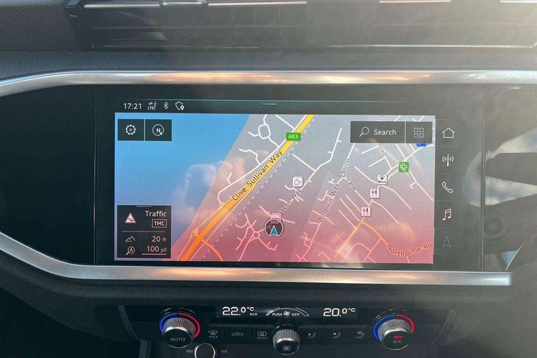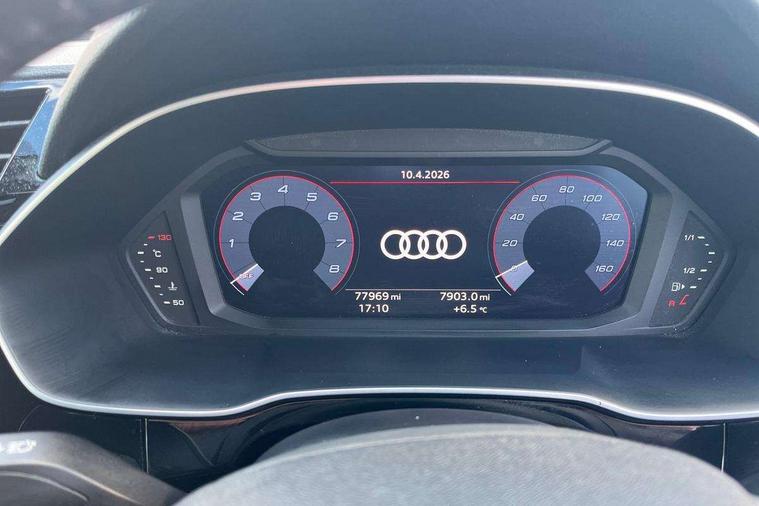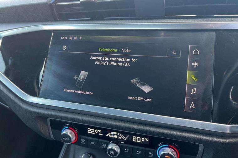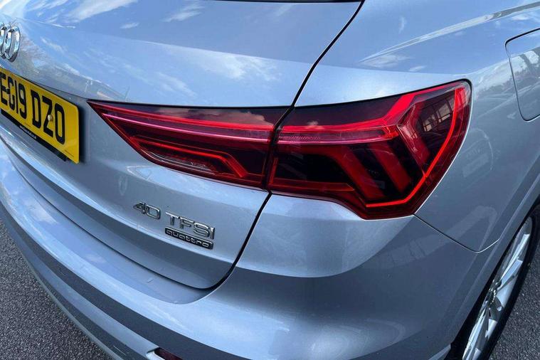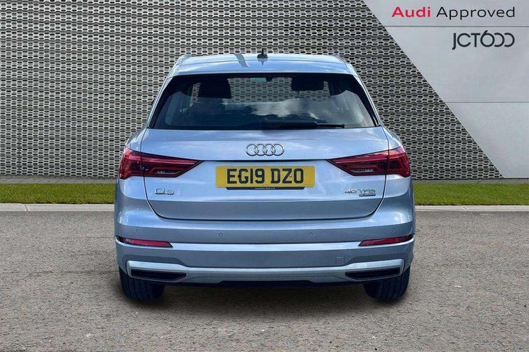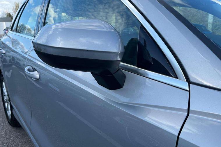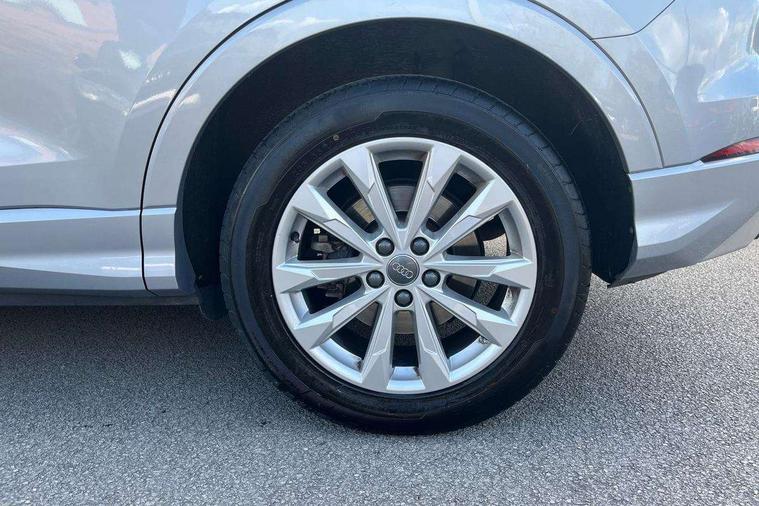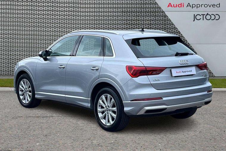 Audi connect safety and service (e-call), Audi drive select, Audi lane departure warning, Audi side assist, Audi smartphone interface, Bluetooth interface, Camera based traffic sign recognition, MMI navigation plus with MMI touch, Power opening/closing tailgate, Progressive steering, Rear parking sensors, Service interval indicator, Stop/start system, Voice control system, Standard suspension, 1 x USB type C and 1 USB type A charging points, 6 speakers, DAB digital radio module, Acoustic windscreen, Aluminium roof rails, Aluminium window trim, Auto dimming rear view mirror, Body coloured bumpers, Electrically adjustable and heated door mirrors with integrated LED side indicators, Front and rear electric windows, Front fog lights, Front side air inlets in matt selenite silver, Front spoiler in matt selenite silver, Grille vertical bars in aluminium silver/Matt, High gloss black finish B and C pillars, LED headlights with LED daytime running lights and dynamic rear indicator, LED rear lights, Rain and light sensors, Rear diffuser strip in selenite silver, Titanium black radiator grille, 12V socket in rear centre console, 40:20:40 split folding rear bench seat, Adjustable rear seat bench/backrest, Aluminium door sill trims, Dual zone climate control, Front and rear headrests, Front and rear velour floor mats, Front centre armrest with storage compartment and angle adjustment, ISOFIX child seat mounting and Top Tether with front passenger airbag deactivation, Lunar silver cloth headlining, Manual front seats with height adjustment, Stainless steel luggage compartment sill finisher, Non smoking pack - Q3, 3x3 point rear seatbelts, 6 airbags - Driver, front passenger, curtain and side windows, Audi pre-sense front with pedestrain and cyclist recognition, Electrically operated child locks on rear doors, Electromechanical parking brake, Electronic stabilisation control including ABS, ASR and EDL, Hill hold assist, Pre sense basic, Seatbelt monitoring, Tyre pressure warning, Warning triangle and first aid kit, Anti theft alarm, Anti theft wheel bolts, Remote central locking, MMI touch colour display in gloss black with aluminium surround,