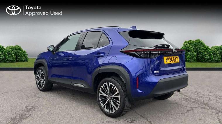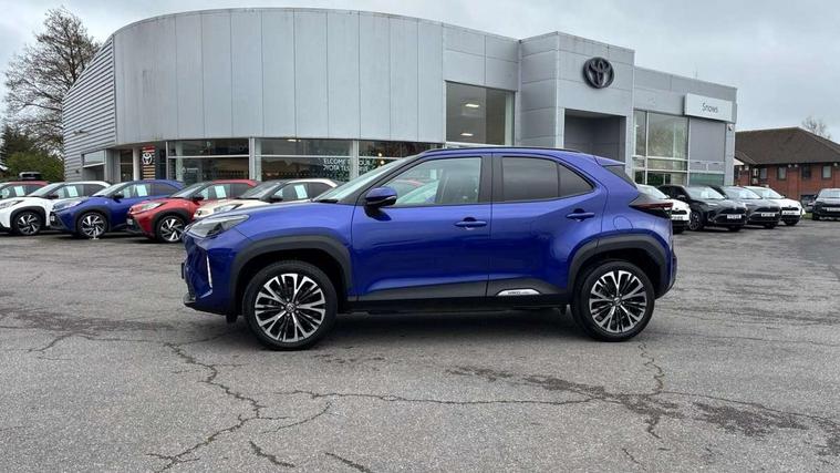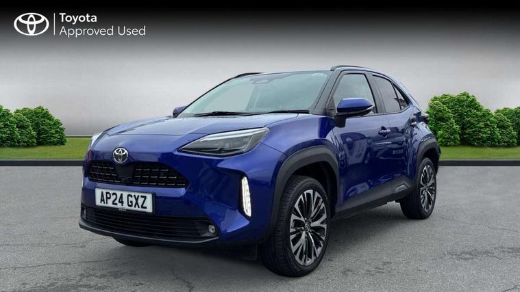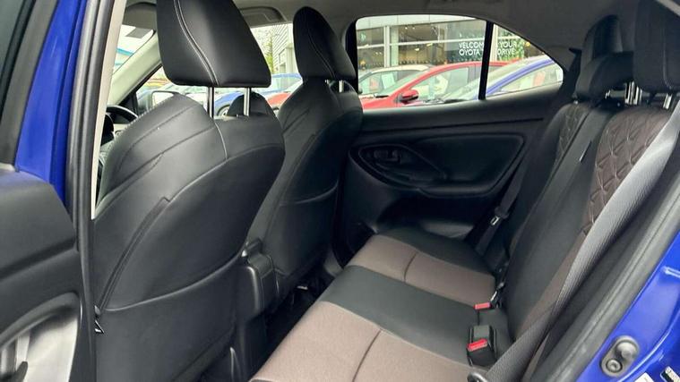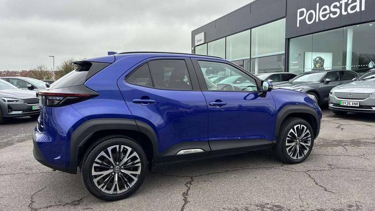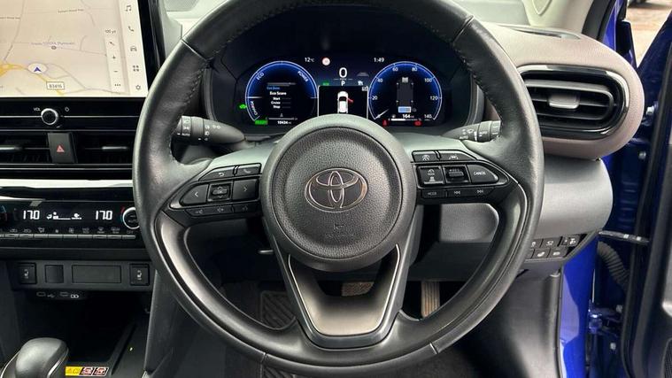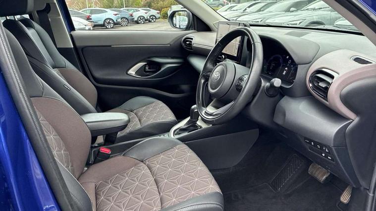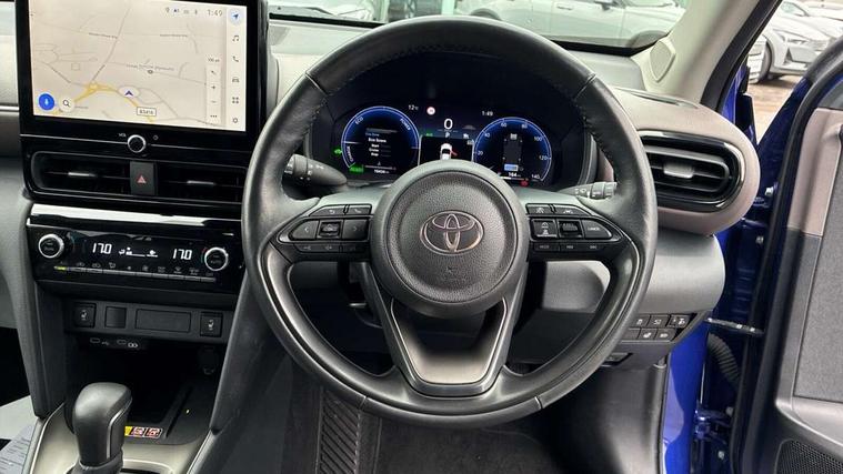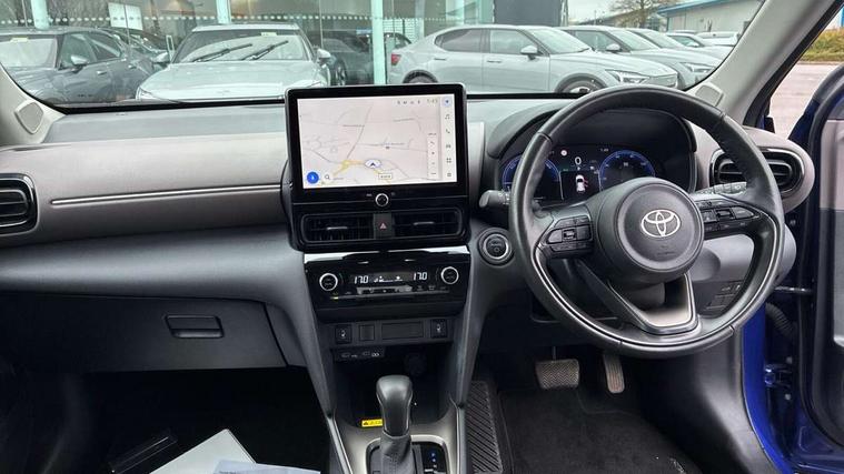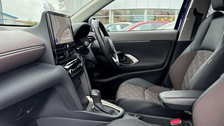 10.5" Multimedia display screen, 10.5" Toyota smart connect+ with navi multimedia system with wireless Smartphone integration incl Apple CarPlay, 360 degree panoramic view monitor, 7" Multi information display screen, Adaptive cruise control, multi info switches on steering wheel, Adjustable speed limiter, Advanced parking assist, Blind spot monitoring, Bluetooth connectivity, Color multi-information display, Digital speedometer, Digital tachometer, Drive mode selector, Driver attention alert system, Dynamic guide lines on reversing camera, eCall emergency system, Electric power steering, Emergency driving stop system, Full range intelligent adaptive cruise control, Hybrid system indicator, Intelligent front and rear parking sensors with clearance sonar and automatic braking, Intersection turn assist, Key reminder warning, Lane change assist, Lane departure warning, Lane trace assist, My T Connected services, Power tailgate, Pre-collision system enhanced with emergency steering assist, Rear cross traffic alert with brake assist, Remote boot door release in cabin, Road sign assist - RSA, Safe exit assist, Telephone switch on steering wheel, Wireless Mobile Phone Charger, Steering assisted vehicle stability control, 6 speakers, DAB Digital radio, Front USB Type-C connector, Front USB-C device charger, 3rd brake light, Acoustic windscreen glass, Anti-jam protection on power windows, Auto dimming rear view mirror, Auto high beam [AHB] with on/off switch, Auto intermittent windscreen wipers, Automatic headlights, Automatic headlights cut-off, Automatically retractable door mirrors, Black door moulding, Black lower front grille, Black protection moulding on side doors, Black roof rails, Black wheel arch mouldings, Body colour door handles, Body colour front bumper, Body colour rear bumper, Electric adjustable heated door mirrors, Follow me home headlights, Front and rear electric windows with auto up/down function, Gloss black upper front grille, Headlight cut off reminder, Indicators integrated on door mirrors, Intermittent rear wiper, Kick activated power back door, LED daytime running lights guide, LED front fog lights, LED front light guide, LED Indicators, LED projector headlights, LED rear lights with sequential indicators, Manual headlight levelling, Meshed shape upper front grille, Noise reduction layer on windscreen, Privacy glass, Rain sensor, Rear side wing doors, Rear spoiler, Rear window defogger, Shark fin antenna, 12v power outlet - front, 12V power point in boot, 2x Rear coat hooks, 3 seat bench in 2nd row, 3 spoke leather steering wheel, 40/60 split deckboard, 40:20:40 split folding rear bench seat, Adjustable rear headrests, Adjustable speed limiter switch on steering wheel, Boot light, Central armrest, Driver and front passenger personal lights, Driver and front passenger Whiplash injury Lesseing seats, Driver and passenger seatback pockets, Dual zone automatic air conditioning, Fabric door trim, Front console box, Front cup holders, Front door pockets, Front head restraints, Front sport seats, Front/rear assist grips, Gear shift indicator, Grey roof lining, Heated driver and passenger seats, Heated steering wheel, Height adjustable driver's seat, Height adjustable front passenger seat, Hooks for luggage holding belts, ISOFIX child restraint system, Lane departure alert switch on steering control, Leather gearshift, LED centre room light, Light on driver and passenger sun visor, Manual telescopic and tilting steering wheel, Mirror on driver and passenger sun visor, Nanoe-X air purifier, Partial synthetic leather upholstery, Pollen air filter, Power adjustable lumbar support on driver seat, Rear cup holders, Rear door pockets, Rear head restraints, Remote air-conditioning system, Single compartment glovebox, Single front passenger seat, Soft tonneau cover, Storage box under boot floor, Voice recognition switch on steering wheel, White ambient lighting in centre console, White ambient lighting in footwell, White ambient lighting on front doors, Yaris cross floor mats, Tech pack - Yaris Cross, 3x3 point rear seat belts, ABS+EBD+Brake assist, Downhill Assist Control (DAC), Driver and passenger central airbags, Driver and passenger front airbags, Driver and passenger side airbags, Electronic parking brake, Emergency brake light system (EBS), Front seat belt reminder, Hill start assist control (HAC), Passenger airbag on/off switch, Pre-collision system with pedestrian and cyclist detection, Rear door child safety locks, Rear passenger side airbags, Rear seat belt reminder, Traction control, Tyre pressure warning system, Immobiliser, Intrusion alarm, Keyless smart entry with push button start, Power door locks, Power passenger window lock, Remote door lock, Gloss black side air vent surrounds, Tyre repair kit,
