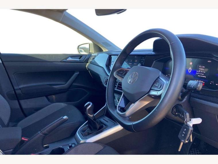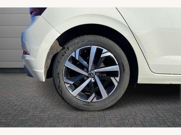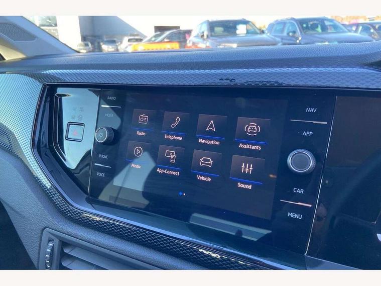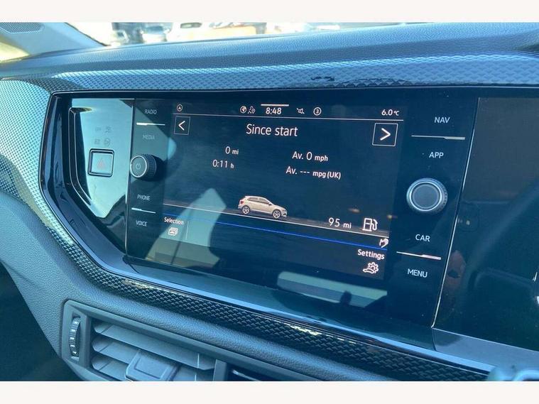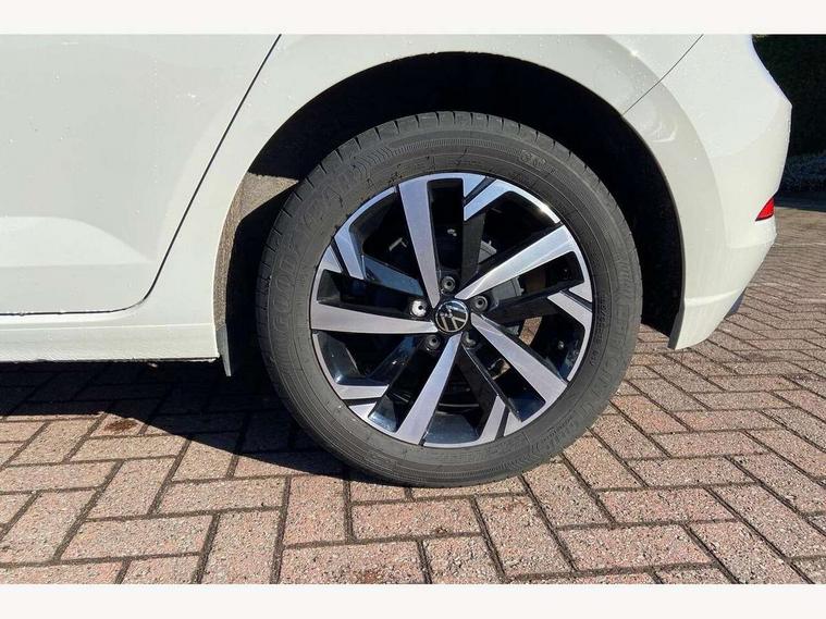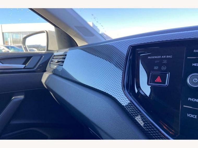 Adaptive cruise control without follow-to-stop and speed limiter, Advanced driver attention and drowsiness monitor, Bluetooth mobile phone interface, Dynamic road sign display, Emergency call service, Multifunction front facing camera for distance control, Park distance control, Power assisted speed sensitive steering, Preparation for navigation system with media and internet package, Preparation for We connect and We connect plus, Rear view camera, Speedo and rev counter, electronic odometer, trip, service interval display and exterior temperature gauge, Standard rear axle, Travel Assist - Lane keeping system and traffic jam assist, Travel assist including emergency assist, Trip computer, Warning signal and warning light for front and rear seatbelts not fastened, Washer fluid level indicator, Wireless app connect, Front wheel drive, Rear shock absorpion, Start-stop system with battery regeneration (recuperation - energy recovery during braking), DAB Digital radio, Diversity antenna for FM reception, Front and rear 6 speakers, Automatic dimming interior rear view mirror, Automatic headlight control with LED separate daytime running lights with coming/leaving home function, Body colour bumpers with chrome inserts, Body colour door handles, Body colour door mirrors, Electric front windows, Engine badge deletion, Headlight range adjustment, Heat insulating and laminated safety glass windshield, LED Headlights, LED rear combination lamps, Power folding adjustable/heated exterior mirrors and front passenger exterior mirror lowering function, Rain sensor, Rear electric windows, Rear fog light, Rear side wing doors, Rear tinted glass from B-pillar backwards approx 65% tinted, Rear windscreen washer and wiper with interval delay, Third brake light, 12V power socket in centre console, 2 front and 2 rear reading lights with switch off delay and dimmer, 2 USB-C ports in the front, 2 USB-C charging sockets on the center console in the rear, 3 rear head restraints, 60/40 split folding rear seat and rear seat bench not split, Ceramique roof lining, Chrome plated radiator grille inserts, air vent surrounds and light switch surrounds, Door and side trim panel, Driver and front passenger seat height adjustment, Driver/passenger sunvisors with illuminated vanity mirrors, Front centre armrest, Front seat backrest storage pockets, Front standard seats, Handbrake lever handle in leather, Hartley/Thomas cloth upholstery, Headliner in recycled material, Isofix child seat preparation easy-fit (for two outer rear seats, and front passenger seat) compatible with I-size, Leather trimmed gear knob, Luggage compartment cover, Luggage compartment lighting, Removable luggage compartment floor, Single front passenger seat, Standard climatic zones, Standard pedal cluster, Three spoke leather wrapped multifunction steering wheel, Light and vision pack - Polo, 3 point height adj front seatbelts + pretensioners, 3 point seat belt for centre rear seat, 3 point seatbelts, outer rear with ECE lable, ABS, Driver and front passenger airbag with front passenger airbag deactivation, Drivers and front passengers safety optimised head restraints, ESC (Electronic stability control) + EDL (Electronic Differntial lock) and ASR (Traction control), Extended and predictive pedestrian/ cyclist protection, Front assist with autonomous emergency braking (for Adaptive Cruise Control ACC up to 130 mph), Front curtain and side airbags with center airbag, Front disc brakes, Hill hold control, Manual child lock in rear doors, Rear drum brakes, Single tone horn, Tyre pressure loss indicator, Alarm with interior protection, Anti-theft alarm system with interior monitoring, backup horn, and towing protection, Anti-theft wheel bolts, Electronic engine immobiliser, Lava stone black gloss/matt decorative inserts in dash and front door panels, 16" Torsby alloy wheels, Low rolling resistance tyres,
