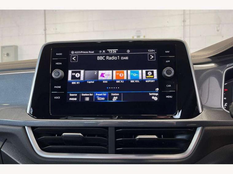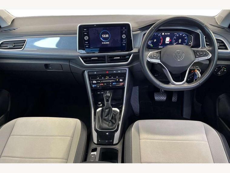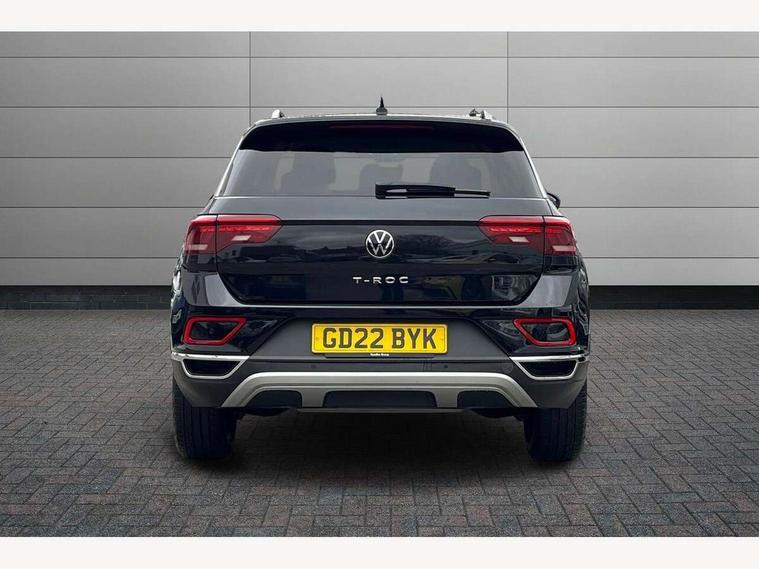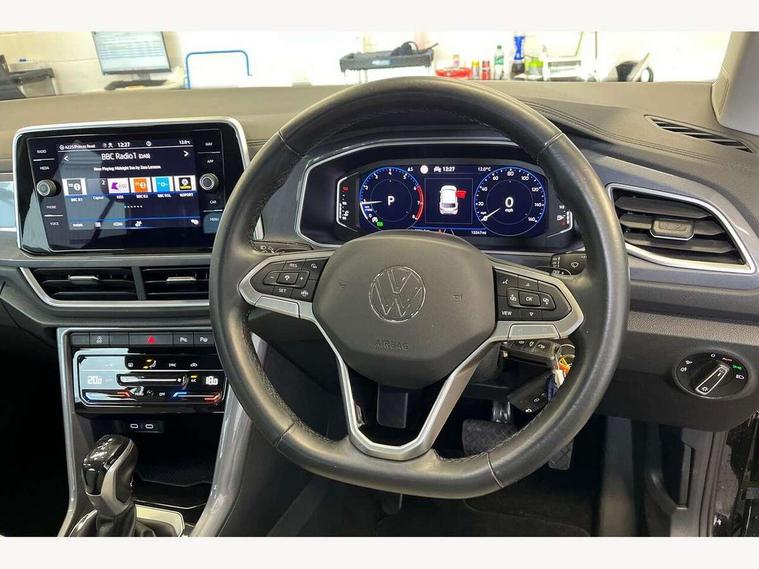 10.25" Digital cockpit pro, Bluetooth mobile phone interface, Driver alert system with fatigue detection, Driver tips and journey analysis, Emergency call service, Lane keeping system Lane Assist, Modified key software - reduce switch off time for key status change to Long no motion, Online services, Park assist including front and rear parking sensors, Service interval indicator, Tailgate/trunk lid release from outside, Think blue trainer driver tips and journey analysis, Warning sound and light for front seatbelts unfastened, Wireless app connect, Battery regeneration during braking, Start/stop function with battery regeneration, Diversity antenna for FM reception, Front and rear 6 speakers, Music playback - MP3, WMA and AAC files, Premium USB cable in choice of either Apple or Android smartphone compatibility, SD card slot, Simultaneous pairing of 2 compatible mobile devices, Title and cover art display, We Connect and We Connect Plus functionality, 3rd brake light, Auto dimming interior rear view mirror, Automatic hazard lights activation under emergency braking, Automatic headlight control with LED separate daytime running lights with coming/leaving home function, Body colour sports bumpers with silver metallic underbody fascia, Dynamic headlight range control with self adjusting whilst driving, Extended roof spoiler, Exterior mirrors aspherical on driver side, convex on front passenger side, External USB type C socket and charging sockets, Front windscreen wiper with intermittent wipe and 4 position delay, Heated rear window, LED Plus headlamps, LED rear combination lamps, LED rear number plate lights, LED tail lamp rear comination lamps, Light mode for poor weather, rain, fog or snow, Power windows with comfort operation and circuit breaker, Rain sensor, Rear exhaust tailpipe, Rear fog light on one side and reversing lights on both sides, Rear side wing doors, Rear wash/wipe with intermittent wipe setting, Remote electrically foldable door mirrors, puddle lights and reverse activated passenger's door mirror, 12V power socket in centre console, 3 rear head restraints, 3 seat bench in 2nd row, 4 load lashing points in luggage compartment, Air care climatronic air conditoning system with active combination filter and 2-zone temperature control, Chrome plated radiator grille inserts, air vent surrounds and light switch surrounds, Door and side trim panel with leatherette insert, Drawer under drivers seat, Front + rear carpet mats, Front centre armrest, Front comfort sports seats, Front cupholders x 2, Front footwell illumination, Instrument lighting, white adjustable panel illumination, Interior ambient lighting and surround lighting, Interior light delay, Isofix child seat preparation, Leather gearshift handle, LED interior light with switch off delay/dimmer and 2 front/rear LED reading lights, Load-through provision with cup holder when folded down ('Unsplit rear seat bench, split folding backrest, with centre armrest), Luggage compartment lighting, Non-folding front passenger seat backrest, Single front passenger seat, Storage compartment in left and right luggage area, Storage compartment in rear doors, Storage compartments in driver and front passenger doors, Sunvisors with illuminated vanity mirrors, Variable boot floor, height adjustable and removable, Driver assistance pack without proactive passenger protection - T-Roc, 3 point height adj front seatbelts + pretensioners, 3 point seatbelts in outer rear with ECE label, ABS, Child locks on rear doors, Driver and front passenger airbag with front passenger airbag deactivation, Driver and front passenger safety-optimised head restraints, Drivers seatbelt reminder, Electronic parking brake, Electronic Stability Control (ESC) inc EDL (Electronic Differential Lock) and ASR (Traction Control), Front and rear passengers curtain airbag system including front side airbags, Front assist with city emergency braking and pedestrian monitoring, Front seat side impact airbags, Predictive pedestrian protection, Rear disc brakes, Single tone horn, Tyre pressure loss indicator, Volkswagen roadside assistance, Alarm with interior protection, Anti-theft alarm system with interior monitoring, backup horn, and towing protection, Remote central locking with SAFELOCK, radio remote control with 2 remote control folding keys, Trims for alloy wheels,