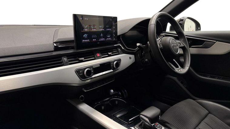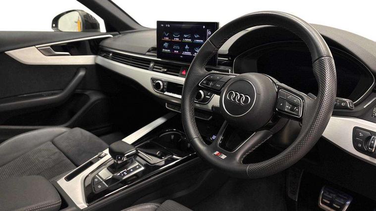 Audi connect safety and service (e-call), Audi connect with Amazon Alexa Integration, Audi drive select, Audi smartphone interface, Audi virtual cockpit, Automatic start-stop system with coasting functionality and efficiency programme, Bluetooth interface, Electromechanical power steering, Email, calendar and text messages displayed via MMI, MMI Navigation plus with MMI touch includes 10.1" high resolution colour MMI display, 3D map, Power operated tailgate, Voice control system, 54 litre fuel tank, Sports suspension lowered by 23mm, 2 USB charging ports, 8 passive loudspeakers, DAB digital radio reception, Aluminium roof rails, Auto dimming rear view mirror, Body colour door handles, Body colour front spoiler lip, Body colour side sill trim, Body coloured door mirrors, Electrically folding auto dimming/adjustable/heated door mirrors with LED side indicators and kerb view function for passenger side, Grained matt black side air inlets with matt aluminium silver inlay, High beam assistant, Honeycomb structure radiator grille in grained matt black, LED headlights with LED rear lights + dynamic rear indicators + headlight adjustment and high beam, turning light + LED daytime running lights, LED third brake light, Matt aluminium silver tailpipe trim, Privacy glass, Rain and light sensors, Rear side wing doors, Rear wiper, S Line badges on the front wings, S line front and rear bumpers with side skirts, S Line rear diffuser in matt anthracite black with trim strip in matt aluminium silver, S Line roof edge spoiler, Variable intermittent front wash/wipe, Windscreen with acoustic glazing, 3 spoke high multi-function sports leather steering wheel grips in perforated leather with S badging including paddle shift, 4 way electric lumbar support for driver and front passenger, 40/20/40 split folding 3 rear seat bench in 3 parts with rear centre armrest, Black cloth headlining, Black perforated leather gearknob, Contrast stitching on seats, steering wheel and gear lever gaiter, Deluxe 3 zone electronic climate control, Door sill trims with aluminium inlay, Electric load area cover, Front and rear head restraints, Front centre armrest, Heated front seats, Illuminated door sill trims with S logo, ISOFIX child seat mounting and top tether, Manual seat adjustment, Single front passenger seat, Stainless steel pedals and foot rest, High gloss package - A4, LED Interior light pack - A4/S4, 3 rear seatbelts, 6 airbags - Driver, front passenger, curtain and side windows, Electronic Stabilisation Control (ESC) including ABS, ASR and EDL, Hill hold assist, Multi collision brake assist, Pop-up bonnet for pedestrian protection, Pre sense city, Rear door child safety locks, Seatbelt monitoring, Warning triangle and first aid kit, Anti theft alarm, Anti theft wheel bolts, Central locking, Keyless Go, Matt brushed aluminium inlays, Tool kit, Tyre repair kit,