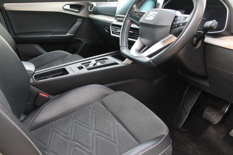 Digital cockpit, Front assist with forward collision warning braking reaction to vehicles, pedestrians and cyclists, Full link smartphone integration with Mirror Link, wireless Apple CarPlay and wired Google Android Auto, Lane keeping system, Lockable tailgate, Park assist (inc front/rear parking sensors), Power assisted speed sensitive electro-mechanical steering, Rear view camera, RPM, trip computer, outside temp gauge, instrument light brightness, low fuel warning light, lights on reminder, gearshift indicator, Service interval indicator, Start/stop system with regenerative braking, 10 amp mode 2 charging cable, XDS electronic differential lock and dynamic traction support, Auxiliary input socket, Auto dimming rear view mirror, Body colour door handles, Body coloured bumpers, Dark tinted rear windows, Door mirror LED indicator lights, Electric adjustable/heated/folding door mirrors with memory, Electric front/rear windows, Illuminated front door sill, LED front fog lamps with cornering function, LED headlights and tail lights with dynamic turn signals, welcome light silhouette from exterior mirrors and dynamic headlight range control, LED rear fog lamp, Rain sensing wipers, Rear wash/wipe, Separate daytime running light with automatic headlight control and coming home feature, 12v power point in centre console, 60/40 split rear bench seat with armrest, Ambient lighting in door trim, Dust/pollen filter, Electric driver lumbar support + passenger manual lumbar support, Folding boot cover, Front and rear height adjustable headrests, Front and rear reading lights X 4, Front centre armrest, Front seatback storage pockets, Heated front seats, Height/reach adjust steering wheel, Interior lighting with LED lighting in sunvisor, glovebox and rear headlining, ISOFIX points in outer rear seats with top tether anchorage points, Luggage tie-down hooks, Microsuede cloth upholstery, Power driver seat with memory and manual height adjustable passenger seat, Sunvisors with covered illuminated mirror, Three zone climate control, Tool kit, Media system plus with navigation - Leon, 3 point seatbelts on all rear seats, ABS, Brake control system - ESC and brake booster, Child proof door locks, Driver and front passenger airbags with front passenger airbag de-activation, front side and curtain airbags, Electronic parking brake, Extended safety system - seat belt tensioner, window closure and hazard lights, Hill hold control, Rear disc brakes, Seat belt reminder for front and rear seats, Tiredness recognition system, driver alert system, Tyre pressure monitoring system, Anti theft alarm system with interior monitoring in cab, backup horn and towing protection, KESSY Advanced - Keyless start, keyless entry with SAFELOCK, Locking wheel bolts, Wireless phone charging, Chrome interior detailing, 17" Alloy wheels with 91W tyres, Emergency tyre repair kit,