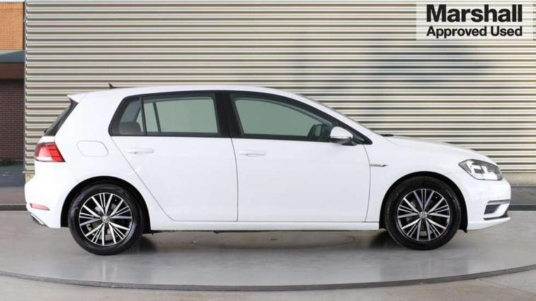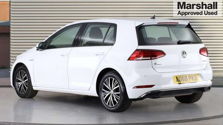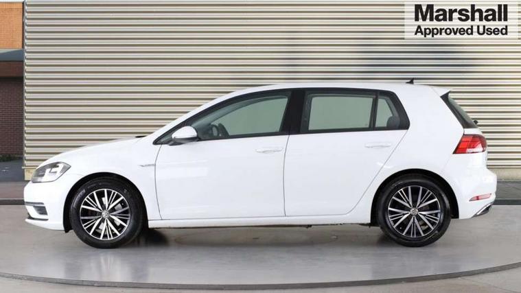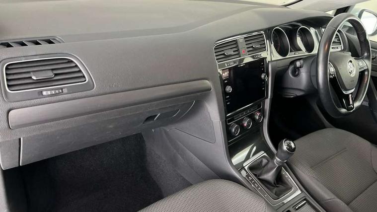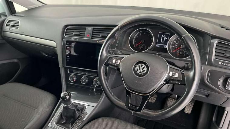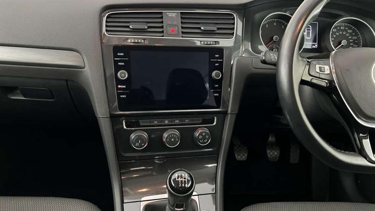 'Lights On' Reminder warning buzzer, 8" colour touch screen, ACC - Adaptive cruise control with front assist, forward collision warning, distance monitoring, city emergency brake and speed limiter, App-Connect, Bluetooth telephone and audio connection for compatible devices, Brake pad wear indicator warning light, Drive mode selector, Driver alert system, Driver profile selection, Front assist, radar sensor controlled distance monitor, city emergency braking + predictive pedestrian protection, Front assistant collision mitigation, Instrument cluster in white, Multifunction computer with visual gear change recommendation for fuel consumption, Power assisted speed sensitive electro-mechanical steering, Speedo, rev counter, electronic odometer, trip, service interval display, exterior temperature and fuel gauge, Stop/start system, Ultrasonic front and rear optical and audible parking sensors, Warning buzzer and light for front seatbelts unfastened, Battery regeneration during braking, XDS electronic differential lock, 8 Speakers, CD/MP3/WMA, USB and SD card reader, aux-in, Composition media system, DAB Digital radio receiver, SMS Functionality, Aerodynamic black radiator grille with chrome trimmed insert, Automatic coming/leaving home lighting function, Automatic dimming rear view mirror/rain sensor, Black rear diffuser, Body colour bumpers, Body colour door handles, Body colour door mirrors with integrated indicators, Electric front windows, Electric rear windows, Electrically adjustable and heated door mirrors, Glavanised body, Heated rear windscreen, High level 3rd brake light incorporating LED Technology, Range adjustable headlights via infotainment system with LED daytime running lights, Rear number plate lights incorporating LED technology, Rear window aerial, Rear window wash/wipe with intermittent wipe, Reflectors in all doors, Remote electrically foldable door mirrors, door mirror puddle lights and reverse activated kerb-view adjustment on passengers door mirror, Tailgate with integrated rear roof spoiler, Windscreen wipers/ intermittent wipe + 4 position delay, 12V socket in luggage compartment, 3 rear headrests, 4 load lashing points in luggage compartment, 60/40 split folding rear seat backrest, Bag hook in luggage compartment x 2, Cooled glovebox, Dust/pollen filter, Front and rear reading lights incorporating LED technology, Front centre armrest with storage compartment and two rear air vents, Front seat back storage pockets, Grab handles front x 2, rear x 2 with integrated coat hooks, Height and reach adjustable steering wheel, Illuminated vanity mirrors, Instrument lighting white adjustable panel illumination, Interior light delay, Isofix preparation for 2 rear child seats, Load through provision with rear centre armrest and cupholders x2, Luggage compartment light, Multifunction leather steering wheel with leather trimmed gear knob, Overhead storage box, Pearl grey headlining, Storage box in luggage compartment, Storage compartment in roof console with cover, Storage compartments in front doors, Storage compartments in rear doors, Stowable luggage compartment cover, Sun visors, Three spoke multi-function leather trimmed steering wheel and gearknob, Variable boot floor, height adjustable and removable, Mirror pack - Golf, 3 rear three point seatbelts, Airbags - Driver's and front passenger's, curtain airbag, Driver's knee, front side impact and passenger's airbag deactivation switch, Anti-lock Braking System (ABS) with Hydraulic Brake Assist (HBA), Automatic post collision braking system, Child locks on rear doors, Driver/Passenger optimised head restraints, Electronic parking brake with auto hold, Electronic stability control (ESC) including Electronic differential lock (EDL) and ASR (Traction control) with deactivation via infotainment system, Pre crash preventive occupant protection, Three point height adjustable front seatbelts with tensioners, Tyre pressure loss indicator, Alarm with interior protection, Electronic engine immobiliser, Remote central locking with 2 remote folding keys, Brushed dark silver decorative inserts in dash and door panels, Chrome plated air vent surround, Chrome-plated light switch surround, Polar night black centre console, Steel space saver spare wheel,