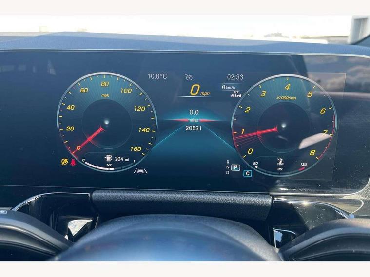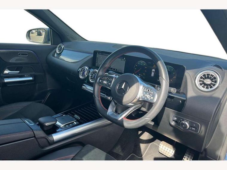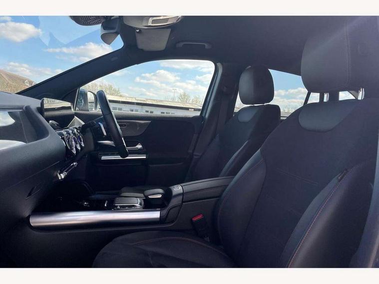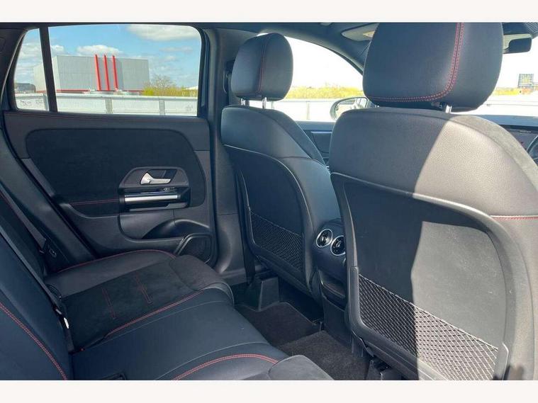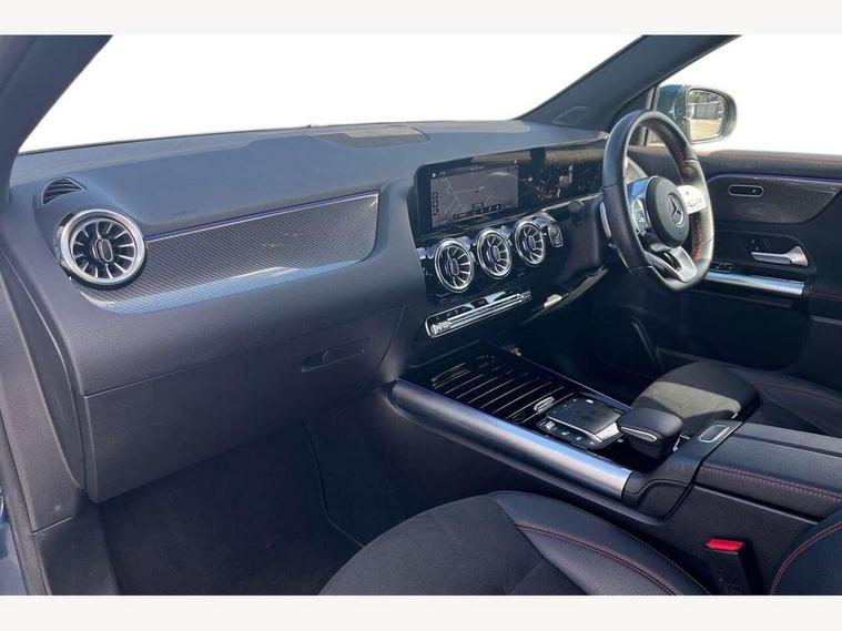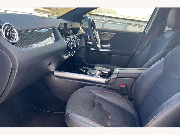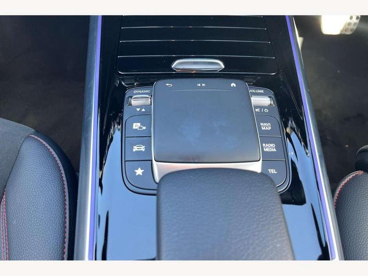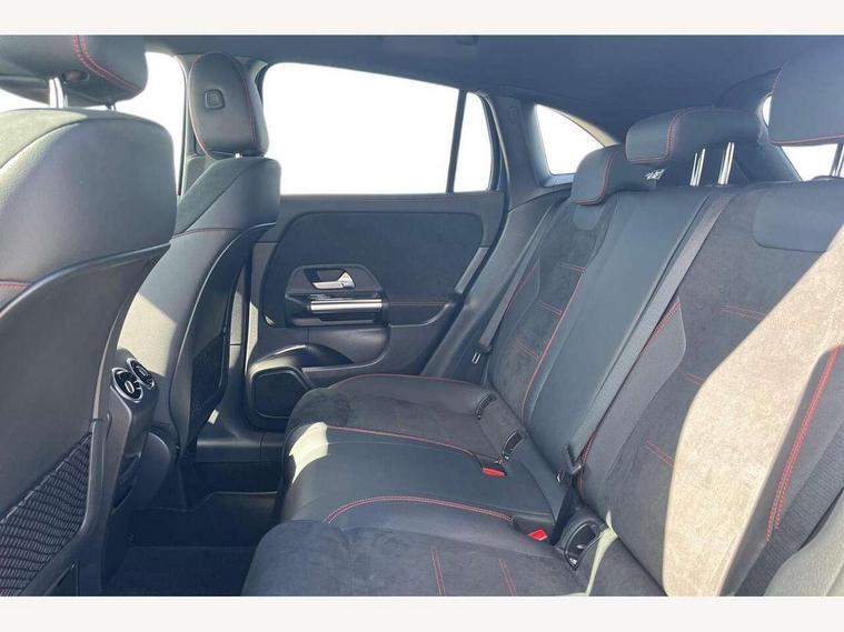 10.25 inch touchscreen central media display, 10.25" Digital instrument cluster display screen, Active lane keeping assist, Attention assist, Cruise control + speed limiter, Direct steering, DYNAMIC SELECT with a choice of driving modes (ECO, Comfort, Sport and Individual), ECO start/stop function, Fluid level warning indicator for fuel, oil, coolant and washer fluid, Hard-disk navigation, Hey Mercedes Voice activation, Lamp failure indicator, Mercedes me connect including emergency call system, accident recovery, breakdown and maintenance management, Mercedes me remote services, Multi function trip computer, Outside temperature gauge, Owners manual and service booklet in English, Pre-installation of private car share, Radio aerial integrated into front and rear windshields, Service indicator (ASSYST), Smartphone integration with Apple CarPlay and Android auto, Speed limit assist, Status display for rear seat belts in instrument cluster, Lowered comfort suspension, Rear axle multi-link, 2 USB ports (type C) in rear stowage compartment and one in front of center console, Bluetooth connectivity including audio streaming, DAB Digital radio, MBUX multimedia system, Media interface, Mercedes-Benz (225w) sound system with 10 speakers, Adaptive brake lights, Aerial for GPS, Aluminium roof rails, AMG front and rear apron, AMG specific/dual flow exhaust pipes in chrome (non-functional), Automatic headlamp activation, Beltline strips and weather strip in chrome, Black grained claddings with chrome parts, Body colour bumpers, Body colour door mirrors, Body coloured door handles with chrome insert for keyless entry, Car wash function, Dark privacy glass from B-pillar backwards, Electric front windows, Electric rear windows, Electrically adjustable and heated door mirrors with integrated LED indicators, Heated glass rear windscreen + timer control, Heated windscreen wash system, Interior mirror with black reading lamps and frameless, LED high performance headlamps with integrated LED daytime running lights, LED tail lights in two piece design, LED third brake light, Matt titanium grey front and rear apron trim, Pre-installation for trailer coupling, Rain sensor windscreen wipers, Rear fog lights, Rear side wing doors, Rear wiper, Roof spoiler, Single lamella raditor grille with chrome dotted diamond grille and inlay, 12V power socket in centre console, 3 seat bench in 2nd row, 3 spoke multifunction sports steering wheel in nappa leather with flattened bottom and perforated grip area, 40:20:40 split folding rear seat backrests, Adjustable head restraints, Air conditioning - Two zone thermotronic luxury automatic climate control with display, Ambient lighting in front headrests, AMG floor mats with AMG lettering in front, Artico man-made leather/Microfibre Dinamica upholstery with red contrast stitching, Auto Mercedes-Benz child seat recognition sensor, Black roof lining, Brushed door pulls in silver chrome, Courtesy light in boot, Front centre armrest with stowage, Galvanished gear shift paddles on steering wheel, Heated front seats, illuminated door sills with changeable cover, Illuminated glovebox, Interior lighting - 64 colour Ambient lighting, Leather trimmed gearknob, Luggage net on driver/front passenger seat backrest, Manually height and reach adjustable steering column, Multi-gesture touchpad control on center console, Single front passenger seat, Sports pedals in brushed stainless steel with black rubber studs, Sports seats, Stowage compartment in centre console, Stowage compartment with retractable cover, Sunvisors with illuminated vanity mirrors, Twin front cup holders, Two outer rear seat isofix and top tether child seat fixing points, AMG body styling pack - GLA, Comfort seat pack - GLA Class, Interior lighting with light and sight pack - GLA, Load compartment pack - GLA, Mirror pack - GLA Class, Parking pack - GLA, 3 rear 3 point seatbelts, ABS with Brake Assist, Active bonnet pedestrain safety measure which detects an impact and raises bonnet by 65mm, Active brake assist includes forward collision warning system with autonomous braking, Adaptive brake assist with hold function and hill start assist, Bonnet with power domes, Brake pad wear warning indicator, Childproof locks manually operated for rear doors and electrically operated for rear power windows, Crash responsive emergency lighting, Driver and passenger head and side airbags, Drivers knee airbag, Dual stage driver/passenger airbags, Electronic parking brake, ESP curve dynamic assist, ESP with ASR, Front and rear seatbelt reminder, Front brake callipers with Mercedes Benz logo lettering on front, Front brake discs internally ventilated and perforated, Front passenger seat occupancy sensor, Tyre pressure monitoring system, Warning triangle and first aid kit, Window airbags, Alarm system with immobiliser and interior protection -Thatcham category 1, Keyless Go starting function, Remote central locking and crash sensor with emergency opening function, Urban guard vehicle protection, Vehicle key with decorative surround in chrome, Carbon structure trim, Chrome air vent surrounds, 19" AMG 5 twin spoke light alloy wheels aerodynamically optimised painted in tantalite grey with a high sheen finish, Summer tyres, Tirefit tyre sealant kit,