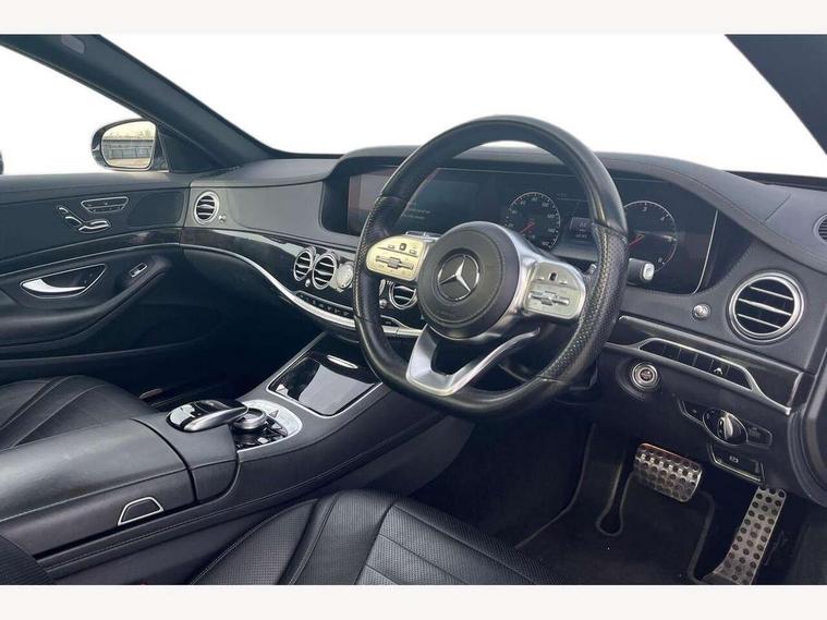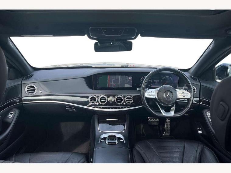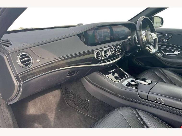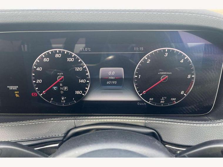 360 degree parking camera, Active park assist with parktronic system, Analogue clock with Mercedes-Benz star, Attention assist, Cockpit display 12.3" widescreen digital instrument cluster, Collision prevention assist plus, COMAND online with Media interface system, Crosswind Assist, Digital operating instructions, Direct steering, Mercedes connect me, Near field communication, Outside temperature gauge, Rear seat belt status indicator, Remote boot release, Service indicator (ASSYST), Smartphone integration with Apple CarPlay and Android auto, Soft closing aid for boot/doors, Stop/start system, Traffic sign recognition, Trip computer, Wireless Smartphone charger, AirMATIC suspension, Diesel particulate filter, 2 USB sockets in rear, Central controller dial to operate audio functions and telephone, DAB Digital radio, Adaptive brake lights, AMG bodystyling front and rear aprons and side skirts, Auto dimming driver's door mirror, Auto dimming rear view mirror, Electric adjustable/heated/folding door mirrors, Electric windows, Front fog lights, Green tinted glass, Headlight Assist and automatic headlight activation, LED tail lights, Magic vision control, Mirror projection of brand logo, Multi beam LED headlights, Rain sensor windscreen wipers, Rear black sill protector, Visible twin exhaust tailpipe in bumper, 12V power socket in centre console, 4 way electric lumbar support for driver and front passenger, Ambient lighting, AMG brushed stainless steel sports pedals with rubber studs, AMG floor mats, Auto Mercedes-Benz child seat recognition sensor, Comfort ventilated front seats, Easy entry/ electrically adjustable steering column, Electric adjustable front seats, Front adjustable head restraints, Front seat back map pockets, Front/rear centre armrests with storage, Front/rear reading lights, Heated front seats, Heated rear seats, Illuminated door sills, Illuminated vanity mirrors, Load securing rings in luggage compartment, Lockable/illuminated air conditioned glovebox, Luggage nets in boot/front pass footwell, Pre-safe impulse seats, Steering wheel gearshift paddles, Sunglasses storage, Twin front cupholders, Twin rear cupholders, Keyless Go comfort pack - S Class, Seat memory pack - S Class, ABS, Active bonnet, ASR, Brake pad wear indicator front brakes, Driver/Front Passenger airbags, Electronic parking brake, ESP curve dynamic assist, First aid kit, Front passenger seat with pre-safe positioning system, Front seatbelt pretensioners with force limiters and automatic belt height adjustment, Front side airbags, Grey brake calipers, i-Size and ISOFIX rear child restraint system, Pre-Safe anticipatory safety system, Rear outer seatbelt pretensioners with force limiters and automatic belt height adjustment, Three 3 point rear seatbelts, Tyre pressure monitoring system, Window airbags, Alarm system with interior protection, Immobiliser, Locking wheel bolts, Remote central locking, Dashboard upper section in artico man-made leather, Tyre sealant kit,