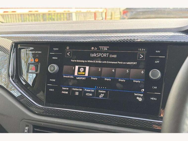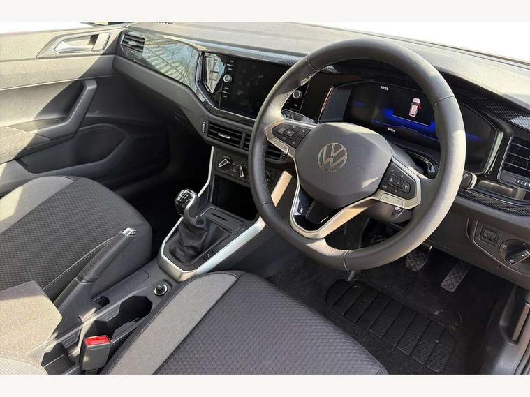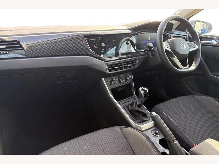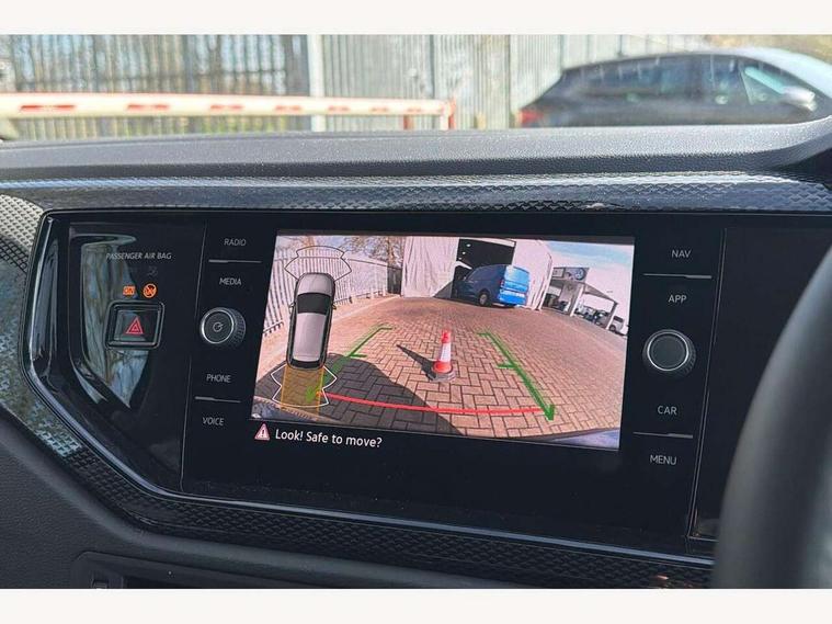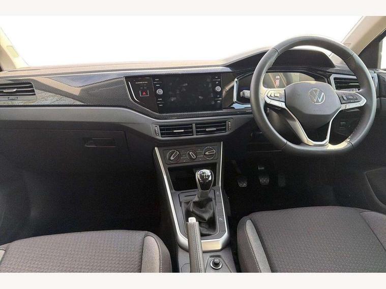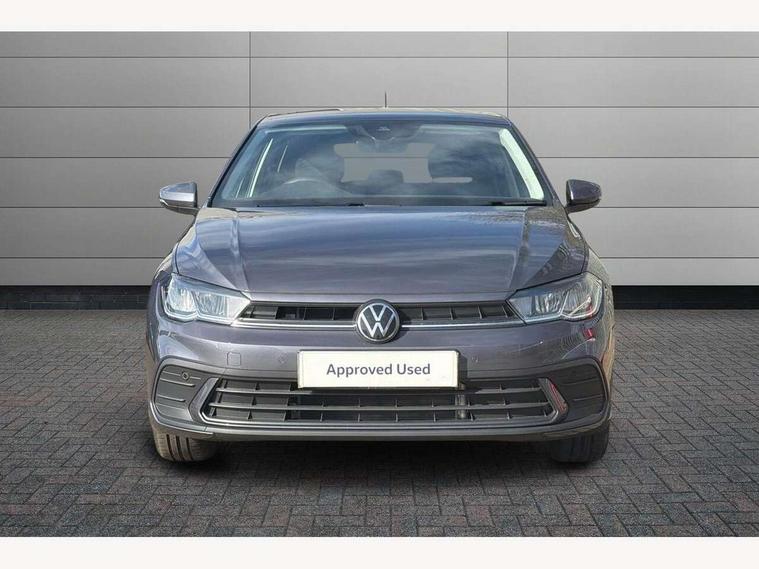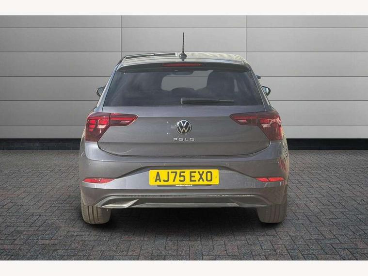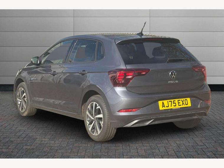 Adaptive cruise control without follow-to-stop and speed limiter, Advanced driver attention and drowsiness monitor, Bluetooth mobile phone interface, Dynamic road sign display, Emergency call service, Mobile phone preparation with inductive charging function, Multifunction front facing camera for distance control, Power assisted speed sensitive steering, Preparation for navigation system with media and internet package, Preparation for We connect and We connect plus, Rear view camera, Speedo and rev counter, electronic odometer, trip, service interval display and exterior temperature gauge, Standard rear axle, Travel Assist - Lane keeping system and traffic jam assist, Travel assist including emergency assist, Trip computer, Warning signal and warning light for front and rear seatbelts not fastened, Washer fluid level indicator, Wireless app connect, Front wheel drive, Rear shock absorpion, Start-stop system with battery regeneration (recuperation - energy recovery during braking), DAB Digital radio, Diversity antenna for FM reception, Automatic dimming interior rear view mirror, Automatic headlight control with LED separate daytime running lights with coming/leaving home function, Body colour bumpers with chrome inserts, Body colour door handles, Body colour door mirrors, Electric front windows, Engine badge deletion, Headlight range adjustment, Heat insulating and laminated safety glass windshield, LED Headlights, LED rear combination lamps, Power folding adjustable/heated exterior mirrors and front passenger exterior mirror lowering function, Rain sensor, Rear electric windows, Rear fog light, Rear side wing doors, Rear tinted glass from B-pillar backwards approx 65% tinted, Rear windscreen washer and wiper with interval delay, Third brake light, 12V power socket in centre console, 2 front and 2 rear reading lights with switch off delay and dimmer, 2 USB-C ports in the front, 2 USB-C charging sockets on the center console in the rear, 3 rear head restraints, 60/40 split folding rear seat and rear seat bench not split, Carpet mats, front and rear, Ceramique roof lining, Chrome plated radiator grille inserts, air vent surrounds and light switch surrounds, Door and side trim panel, Driver and front passenger seat height adjustment, Driver/passenger sunvisors with illuminated vanity mirrors, Front centre armrest, Front seat backrest storage pockets, Front standard seats, Handbrake lever handle in leather, Hartley/Thomas cloth upholstery, Headliner in recycled material, Isofix child seat preparation easy-fit (for two outer rear seats, and front passenger seat) compatible with I-size, Leather trimmed gear knob, Luggage compartment cover, Luggage compartment lighting, Removable luggage compartment floor, Single front passenger seat, Standard climatic zones, Standard pedal cluster, Three spoke leather wrapped multifunction steering wheel, Light and vision pack - Polo, 3 point height adj front seatbelts + pretensioners, 3 point seat belt for centre rear seat, 3 point seatbelts, outer rear with ECE lable, ABS, Driver and front passenger airbag with front passenger airbag deactivation, Drivers and front passengers safety optimised head restraints, ESC (Electronic stability control) + EDL (Electronic Differntial lock) and ASR (Traction control), Extended and predictive pedestrian/ cyclist protection, Front assist with autonomous emergency braking (for Adaptive Cruise Control ACC up to 130 mph), Front curtain and side airbags with center airbag, Front disc brakes, Hill hold control, Manual child lock in rear doors, Rear drum brakes, Single tone horn, Tyre pressure loss indicator, Alarm with interior protection, Anti-theft alarm system with interior monitoring, backup horn, and towing protection, Anti-theft wheel bolts, Electronic engine immobiliser, Lava stone black gloss/matt decorative inserts in dash and front door panels, 16" Torsby alloy wheels, Low rolling resistance tyres,