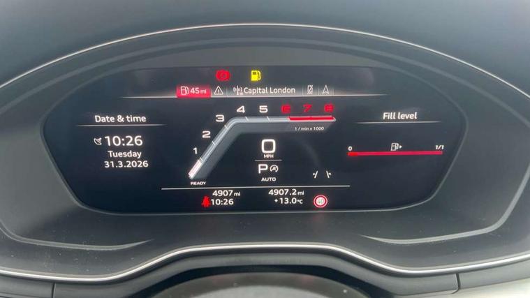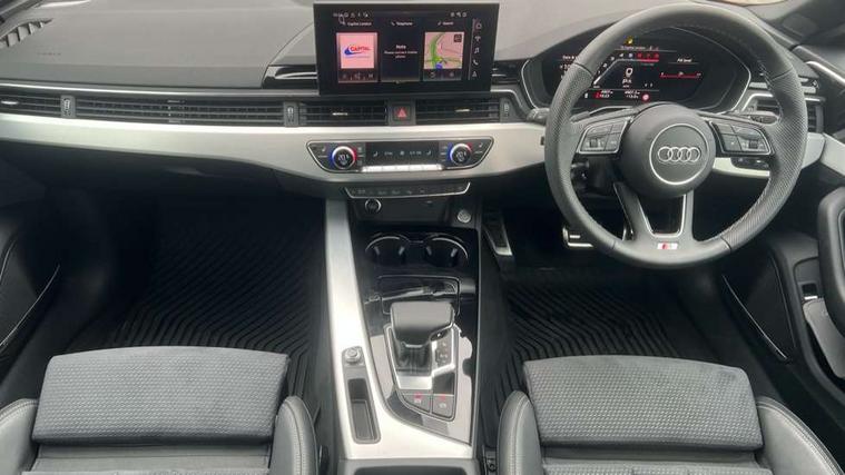 Audi connect safety and service (e-call), Audi drive select (Auto, Comfort, Dynamic, Efficiency and Individual), Audi smartphone interface, Audi virtual cockpit - 12.3" full colour digital instrument cluster, vehicle/engine speed, Radio/media information+Driver assistance systems, Automatic start-stop system with coasting functionality and efficiency programme, Bluetooth interface, Camera based traffic sign recognition, Electro-mechanical power steering, Email, calendar and text messages displayed via MMI, Front and rear parking sensors, Lane departure warning, MMI nav+ with MMI touch - 10.1" high resolution MMI display, touch sensitive, 3D map, route/country info, dynamic route guide, personal route assist, Power operated tailgate, Rear view camera, Service interval indicator, Voice control system, 54 litre fuel tank, Sports suspension lowered by 23mm, 8 passive loudspeakers, CD player, DAB digital radio reception, Two additional USB ports for rear passenger in rear centre console, Two SDXC card slots, Auto dimming door mirrors, Auto dimming rear view mirror, Body colour bumpers, Body colour door handles, Body colour front spoiler lip, Body colour side sill trim, Body coloured door mirrors, Electric adjustable heated door mirrors, Electric folding door mirrors, Electric front windows, Front fog lights, Honeycomb structure radiator grille in grained matt black, Kerb-view function for passenger side, LED headlights and rear lights with LED daytime running lights, LED side indicator lights integrated into door mirrors, LED third brake light, Matt aluminium silver tailpipe trim, Privacy glass, Rain and light sensors, Rear side wing doors, Rear wiper, S line badges on front wings, S line front and rear bumpers with side skirts, S Line rear diffuser in matt anthracite black with trim strip in matt aluminium silver, Side air inlets in grained matt black with matt aluminium silver inlay, Variable front intermittent wipers, Windscreen with acoustic glazing, 3 seat bench in 2nd row, 3 spoke high multifunction leather sport steering wheel with paddle shfit and S badging perforated leather grips, 4 way electric lumbar support for driver and front passenger, 40/20/40 split folding 3 seater rear bench seat, Adjustable steering column, Black carpets, Black cloth headlining, Black perforated leather gearknob, Contrast stitching on seats, steering wheel and gear lever gaiter, Deluxe 3 zone electronic climate control, Front centre armrest, Front head restraints, Front/rear floor mats, Heated front seats, Illuminated front door sill trim with S logo, ISOFIX child seat mounting and top tether, Luggage compartment mat, Manual seat adjustment, Rear centre armrest, Rear headrests, Single front passenger seat, Stainless steel pedals and footrest, Sunvisors with vanity mirrors, LED interior light pack - A5/RS5, 3x3 point rear seatbelts, 6 airbags - Driver, front passenger, curtain and side airbags, Attention and drowsiness assist, Electromechanical parking brake, Electronic Stabilisation Control (ESC) including ABS, ASR and EDL, Front passenger airbag deactivation, Height adjustable front seatbelts, Hill hold assist, Manual child lock in rear doors, Multi collision brake assist, Pop-up bonnet for pedestrian protection, Pre sense city, Seatbelt monitoring, Tyre pressure warning, Variable restraint system, Warning triangle and first aid kit, Anti theft alarm system, Anti theft wheel bolts, Immobiliser, Keyless Go, Remote central locking, Matt brushed aluminium inlays, Tool kit, Tyre repair kit,