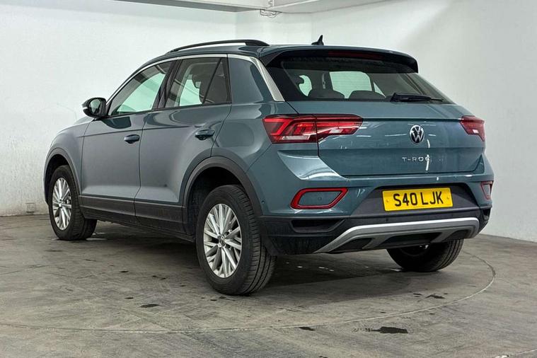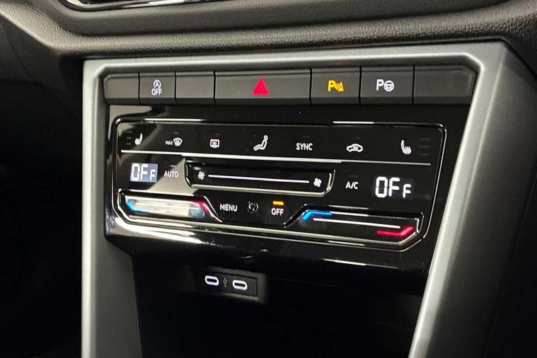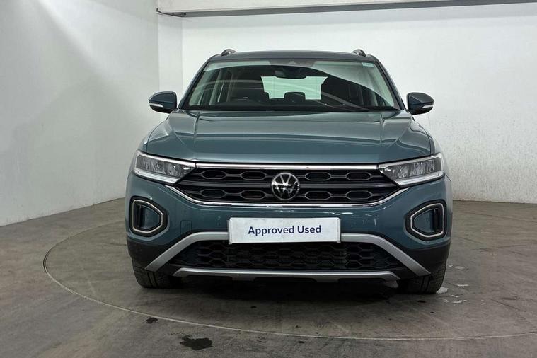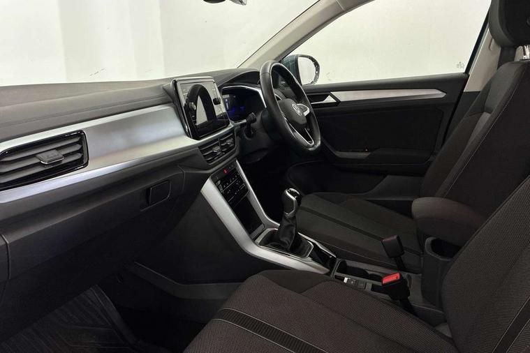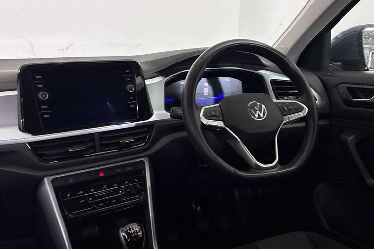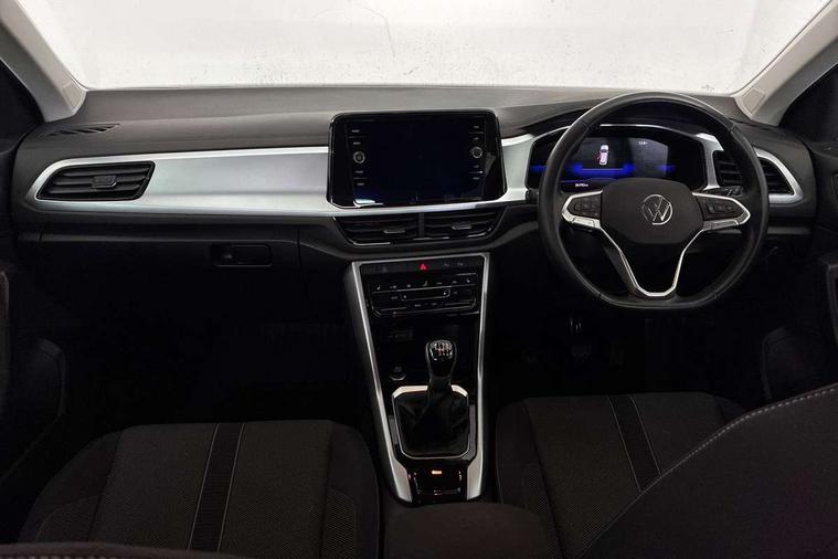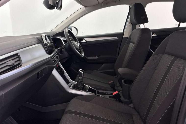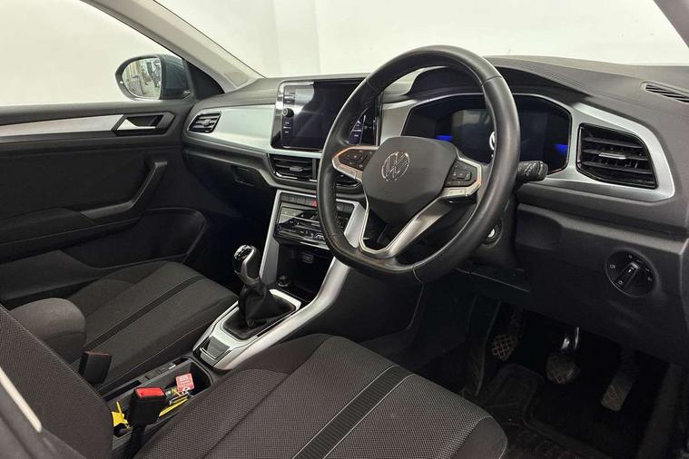 Bluetooth mobile phone interface, Driver alert system with fatigue detection, Driver tips and journey analysis, Emergency call service, Lane keeping system Lane Assist, Modified key software - reduce switch off time for key status change to Long no motion, Online services, Park assist including front and rear parking sensors, Power assisted speed sensitive steering, Service interval indicator, Tailgate/trunk lid release from outside, Think blue trainer driver tips and journey analysis, Warning sound and light for front seatbelts unfastened, Wireless app connect, Battery regeneration during braking, Front shock absorption, Rear shock absorption chassis with increased ride height, Start/stop function with battery regeneration, DAB Digital radio, Diversity antenna for FM reception, Front and rear 6 speakers, Music playback - MP3, WMA and AAC files, Premium USB cable in choice of either Apple or Android smartphone compatibility, SD card slot, Simultaneous pairing of 2 compatible mobile devices, Title and cover art display, We Connect and We Connect Plus functionality, 3rd brake light, Auto dimming interior rear view mirror, Automatic hazard lights activation under emergency braking, Automatic headlight control with LED separate daytime running lights with coming/leaving home function, Black roof rails, Body coloured bumpers and radiator grille with chrome trim and front fog lamps with chrome bezel, Body coloured exterior mirror housings and door handles, Extended roof spoiler, Exterior mirrors aspherical on driver side, convex on front passenger side, External USB type C socket and charging sockets, Front windscreen wiper with intermittent wipe and 4 position delay, Heated rear window, LED Headlights, LED rear combination lamps, LED rear number plate lights, LED tail lamp rear comination lamps, Power windows with comfort operation and circuit breaker, Rain sensor, Rear exhaust tailpipe, Rear fog light on one side and reversing lights on both sides, Rear side wing doors, Rear wash/wipe with intermittent wipe setting, Remote electrically foldable door mirrors, puddle lights and reverse activated passenger's door mirror, 12V power socket in centre console, 3 rear head restraints, 3 seat bench in 2nd row, 4 load lashing points in luggage compartment, Air care climatronic air conditoning system with active combination filter and 2-zone temperature control, Ambient lighting with mirror logo projection, Cloth upholstery, Door and side trim panel in cloth, Drawer under drivers seat, Driver/front passenger seat height adjustment, Front centre armrest, Front comfort sports seats, Front cupholders x 2, Front reading light, Instrument lighting, white adjustable panel illumination, Interior light delay, Isofix child seat preparation, Leather gearshift handle, Load-through provision with cup holder when folded down ('Unsplit rear seat bench, split folding backrest, with centre armrest), Luggage compartment lighting, Lumbar support for driver's and front passengers seat, Non-folding front passenger seat backrest, Single front passenger seat, Storage compartment in left and right luggage area, Storage compartment in rear doors, Storage compartments in driver and front passenger doors, Sunvisors with illuminated vanity mirrors, Variable boot floor, height adjustable and removable, Driver assistance pack without proactive passenger protection - T-Roc, 3 point height adj front seatbelts + pretensioners, 3 point seatbelts in outer rear with ECE label, ABS, Child locks on rear doors, Driver and front passenger airbag with front passenger airbag deactivation, Driver and front passenger safety-optimised head restraints, Drivers seatbelt reminder, Electronic parking brake, Electronic Stability Control (ESC) inc EDL (Electronic Differential Lock) and ASR (Traction Control), Front and rear passengers curtain airbag system including front side airbags, Front assist with city emergency braking and pedestrian monitoring, Front disc brakes, Front seat side impact airbags, Hill start assist, Predictive pedestrian protection, Rear disc brakes, Single tone horn, Tyre pressure loss indicator, Volkswagen roadside assistance, Alarm with interior protection, Anti-theft alarm system with interior monitoring, backup horn, and towing protection, Remote central locking with SAFELOCK, radio remote control with 2 remote control folding keys, Pewter matt decorative inserts for intrument panel, centre console and door panels at the front, Trims for alloy wheels,