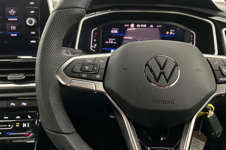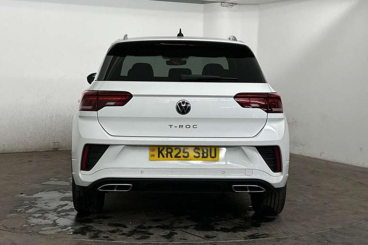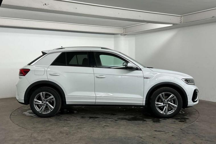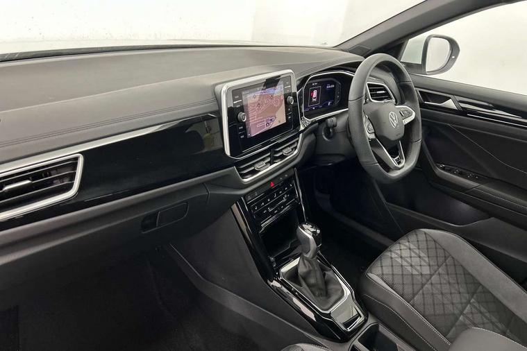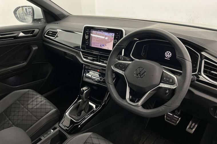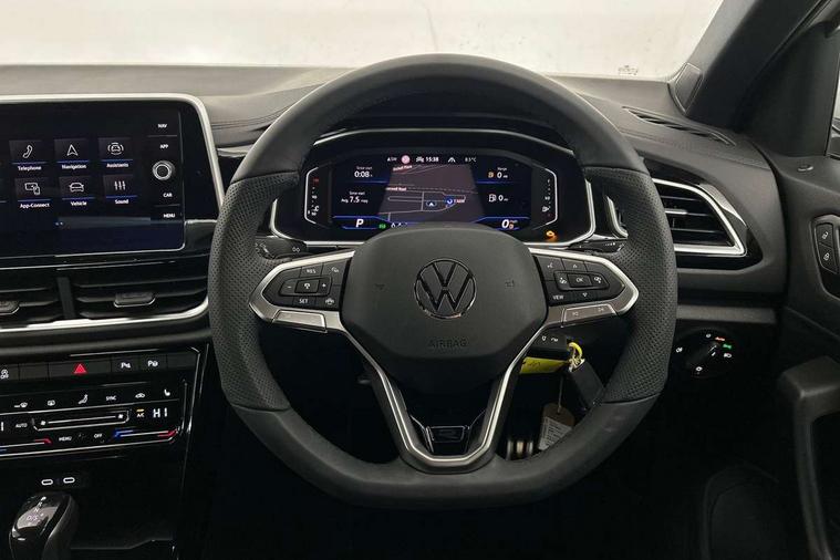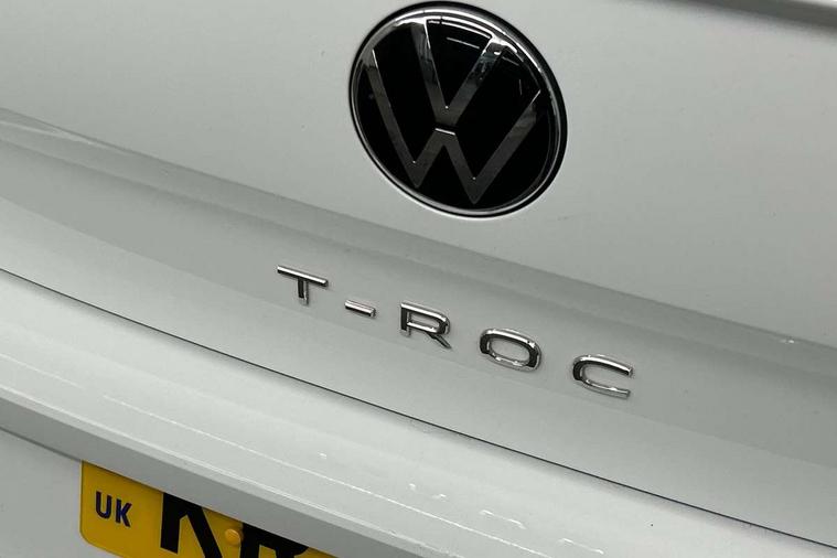 10.25" Digital cockpit pro, Advanced driver attention and drowsiness monitor, Emergency call service, Lane keeping system Lane Assist, Mobile phone interface, Modified key software - reduce switch off time for key status change to Long no motion, Online services, Park assist including front and rear parking sensors, Service interval indicator, Tailgate/trunk lid release from outside, Think blue trainer driver tips and journey analysis, Warning sound and light for front seatbelts unfastened, Wireless app connect, Battery regeneration during braking, Start/stop function with battery regeneration, DAB Digital radio, Diversity antenna for FM reception, Front and rear 6 speakers, Music playback - MP3, WMA and AAC files, Premium USB cable in choice of either Apple or Android smartphone compatibility, SD card slot, Simultaneous pairing of 2 compatible mobile devices, Title and cover art display, We Connect and We Connect Plus functionality, Auto dimming interior rear view mirror, Automatic hazard lights activation under emergency braking, Automatic headlight control with LED separate daytime running lights with coming/leaving home function, Body coloured exterior mirror housings and door handles, Electrically adjustable and heated door mirrors, Extended roof spoiler, Exterior mirrors aspherical on driver side, convex on front passenger side, External USB type C socket and charging sockets, Front windscreen wiper with intermittent wipe and 4 position delay, Heated rear window, LED 3rd brake light, LED rear combination lamps, LED rear number plate lights, Power windows with comfort operation and circuit breaker, Privacy glass for rear side windows and rear window, R-Line design body coloured bumpers, Rain sensor, Rear exhaust tailpipe, Rear fog light on one side and reversing lights on both sides, Rear side wing doors, Rear wash/wipe with intermittent wipe setting, Remote electrically foldable door mirrors, puddle lights and reverse activated passenger's door mirror, 12V power socket in centre console, 3 rear head restraints, 3 seat bench in 2nd row, 4 load lashing points in luggage compartment, Air care climatronic air conditoning system with active combination filter and 2-zone temperature control, Black roof lining, Chrome plated decorative trims, Chrome plated radiator grille inserts, air vent surrounds and light switch surrounds, Door and side trim panel with leatherette insert, Front + rear carpet mats, Front centre armrest, Front cupholders x 2, Front footwell illumination, Front reading light, Front scuff plates with R Line logo, Front seat back storage pockets, Glove compartment door with light, Instrument lighting, white adjustable panel illumination, Interior ambient lighting and surround lighting, Interior light delay, Isofix child seat preparation, Leather gearshift handle, Load-through provision with cup holder when folded down ('Unsplit rear seat bench, split folding backrest, with centre armrest), Luggage compartment lighting, Single front passenger seat, Stainless steel pedals, Storage compartment in left and right luggage area, Storage compartment in rear doors, Storage compartments in driver and front passenger doors, Sunvisors with illuminated vanity mirrors, Variable boot floor, height adjustable and removable, Driver assistance pack without proactive passenger protection - T-Roc, 3 point height adj front seatbelts + pretensioners, 3 point seatbelts in outer rear with ECE label, ABS, Child locks on rear doors, City emergency braking and pedestrian monitoring, Driver and front passenger airbag with front passenger airbag deactivation, Driver and front passenger safety-optimised head restraints, Drivers seatbelt reminder, Electronic parking brake, Electronic Stability Control (ESC) inc EDL (Electronic Differential Lock) and ASR (Traction Control), Front and rear passengers curtain airbag system including front side airbags, Hill start assist, Predictive pedestrian protection, Rear disc brakes, Two tone horn, Tyre pressure loss indicator, Volkswagen roadside assistance, Piano black decorative inserts in dashboard and front door trim panels, Trims for alloy wheels,