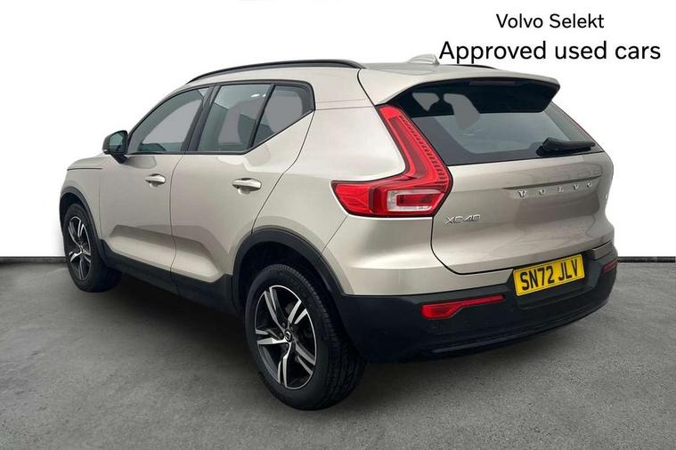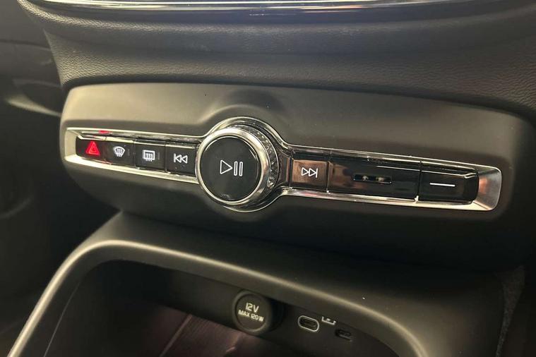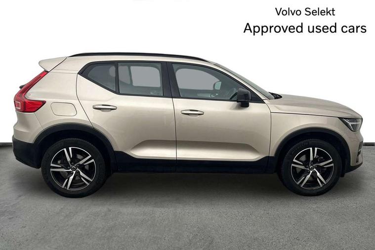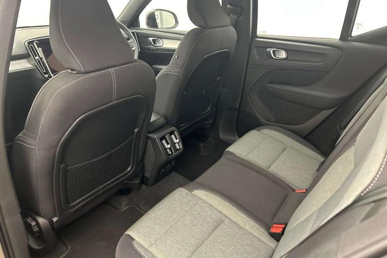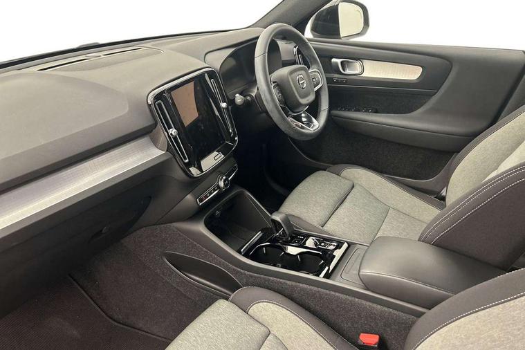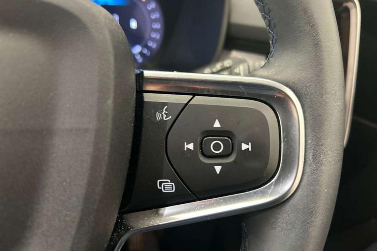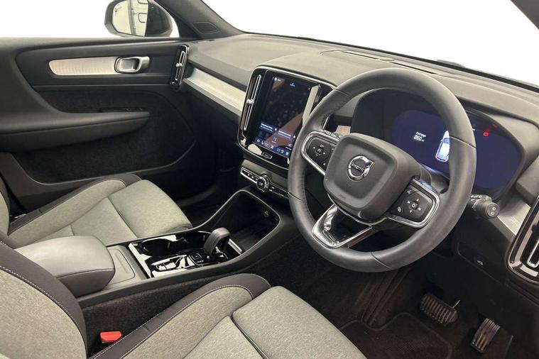 12.3" Progressive Driver Display, 9" centre console portrait touch screen, Adjustable steering wheel force, Bluetooth hands free telephone kit, Cruise control, Driver awareness - blind spot information system with steer assist, cross traffic alert with autobrake, rear collision warning and migitation, E-call, Front park assist, Google automatic services - Nav with google maps, apple carplay/android auto, voice recognition with google assistant, Hands free power tailgate, Lane keep assist with driver alert control, Oncoming Lane Mitigation, Rear park assist, Rear park assist camera, Speed limiter, Speed sensitive steering, Wireless/Inductive Mobile Phone Charging, Dynamic chassis, DAB Digital radio, High performance sound, 8 speakers/250W, front USB and 2 rear type C USB, Steering wheel mounted remote controls, Adaptive brake lights with high level LED brake lights, Auto dimming feature for exterior door mirrors, Auto dimming interior mirror, Automatic headlamp levelling, Automatic LED Headlights + Active high beam incorporating daytime running lights, Front aluminium tread plates, Front and rear electric windows, High gloss black front and rear skid plate, High gloss black mesh front grille with high gloss black surround, High gloss black window trim, Home safe and approach lighting, Integrated roof rails in high gloss black, LED front fog lights, Puddle lights, Rain sensor with automatic windscreen wiper activation, Rear side wing doors, Rear wiper, Roof antenna, Roof spoiler, Visible VIN plate, 12V socket in front tunnel console and luggage compartment, 2-Zone electronic climate control with CleanZone air quality system and pollen filter, 3 seat bench in 2nd row, 3 Spoke tailored steering wheel with chrome trim, 60/40 versatile split folding rear seat, A-pillar parking ticket holder, Ambient front door and instrumental panel lighting, Centre console cupholders and storage, Flexible load floor and grocery bag holder, Floor mats, Front door pocket and front cupholder illumination, Front footwell illumination, Front headrests, Front reading light and theatre lighting, Front seat cushion extensions, Front tunnel pocket, Glovebox bag hook, Heated front seats, Height adjustable passenger seat, Height/reach adjustable steering column, High gloss centre tunnel deco, Illuminated glovebox, Illuminated luggage compartment, Illuminated tailgate, Illuminated vanity mirrors, Integrated waste bin, Isofix attachments on outer rear seats, Load protection net, Multi directional lumbar support, Power driver seat with memory + exterior mirrors memory, Rear armrest / integral cup holders / storage tray, Rear headrests, Rear reading and courtesy lights, Single front passenger seat, Underfloor cargo storage, Climate pack without heated front seats - XC40, 3x3 point rear seatbelts, City safety with steering support with Pedestrian + cyclist + front collision warning with full auto brake and rear auto brake, Drivers knee airbag, Dual stage driver/passenger airbags, Electronic parking brake with auto hold, First aid kit, Front and outer rear seatbelt reminder and pretensioners, Front seats SIPS airbags, Hill descent control, Hill start assist, Inflatable curtain, Passenger airbag cut-off device, Power child locks on rear doors, Road sign information display, Run off Road Mitigation, Run off Road Protection, SIPS (Side Impact Protection System), Slippery road and hazard light alert, Stability and Traction Control with Spin control, Engine Drag Control and Corner Traction Control, Tyre pressure monitoring system, Vehicle deceleration control with Anti-lock Brake System, Electronic Brake Distribution and Emergency Brake Assist, Warning triangle, WHIPS whiplash protection system - front, Anti-theft alarm including immobiliser/volume sensor + level sensor, Key integrated remote control central locking + fuel flap with deadlocking system and auto open/close power windows, Keyless drive includes keyless entry and keyless start, Locking wheel nuts,