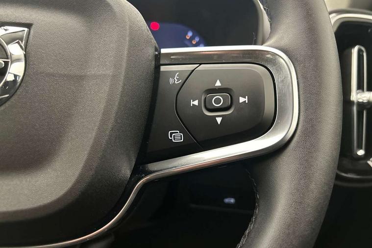 12.3" Progressive Driver Display, 9" centre console portrait touch screen, Adjustable steering wheel force, Bluetooth hands free telephone kit, E-call, eCall emergency call system, Front park assist, Google automatic services - Nav with google maps, apple carplay/android auto, voice recognition with google assistant, Hands free power tailgate, Lane keep assist with driver alert control, Oncoming Lane Mitigation, Rear park assist, Speed limiter, Speed sensitive steering, Wireless/Inductive Mobile Phone Charging, Dynamic chassis, DAB Digital radio, High performance sound, 8 speakers/250W, front USB and 2 rear type C USB, Steering wheel mounted remote controls, Adaptive brake lights with high level LED brake lights, Auto dimming interior mirror, Automatic headlamp levelling, Automatic LED Headlights + Active high beam incorporating daytime running lights, Front aluminium tread plates, Front and rear electric windows, High gloss black front and rear skid plate, High gloss black mesh front grille with high gloss black surround, High gloss black window trim, Home safe and approach lighting, Integrated roof rails in high gloss black, LED front fog lights, Puddle lights, Rain sensor with automatic windscreen wiper activation, Rear side wing doors, Rear wiper, Roof antenna, Roof spoiler, Visible VIN plate, 12V socket in front tunnel console and luggage compartment, 2-Zone electronic climate control with CleanZone air quality system and pollen filter, 3 seat bench in 2nd row, 3 Spoke tailored steering wheel with chrome trim, 60/40 versatile split folding rear seat, A-pillar parking ticket holder, Ambient front door and instrumental panel lighting, Centre console cupholders and storage, Flexible load floor and grocery bag holder, Floor mats, Front door pocket and front cupholder illumination, Front footwell illumination, Front headrests, Front reading light and theatre lighting, Front seat cushion extensions, Front tunnel pocket, Glovebox bag hook, Height adjustable passenger seat, Height/reach adjustable steering column, High gloss centre tunnel deco, Illuminated glovebox, Illuminated luggage compartment, Illuminated tailgate, Illuminated vanity mirrors, Integrated waste bin, Isofix attachments on outer rear seats, Load protection net, Multi directional lumbar support, Power driver seat with memory + exterior mirrors memory, Rear armrest / integral cup holders / storage tray, Rear headrests, Rear reading and courtesy lights, Single front passenger seat, Underfloor cargo storage, Climate pack - XC40, 3x3 point rear seatbelts, City safety with steering support with Pedestrian + cyclist + front collision warning with full auto brake and rear auto brake, Drivers knee airbag, Dual stage driver/passenger airbags, Electronic parking brake with auto hold, First aid kit, Front and outer rear seatbelt reminder and pretensioners, Front seats SIPS airbags, Hill descent control, Hill start assist, Inflatable curtain, Passenger airbag cut-off device, Power child locks on rear doors, Road sign information display, Run off Road Mitigation, Run off Road Protection, SIPS (Side Impact Protection System), Slippery road and hazard light alert, Stability and Traction Control with Spin control, Engine Drag Control and Corner Traction Control, Tyre pressure monitoring system, Vehicle deceleration control with Anti-lock Brake System, Electronic Brake Distribution and Emergency Brake Assist, Warning triangle, WHIPS whiplash protection system - front, Anti-theft alarm including immobiliser/volume sensor + level sensor, Care key with user defined top speed, Key integrated remote control central locking + fuel flap with deadlocking system and auto open/close power windows, Keyless drive includes keyless entry and keyless start, Locking wheel nuts, Private locking for tailgate,