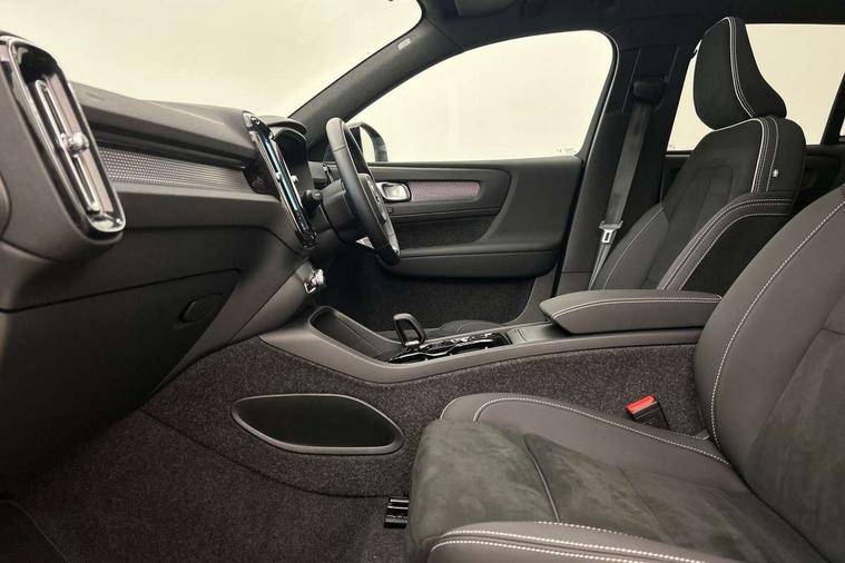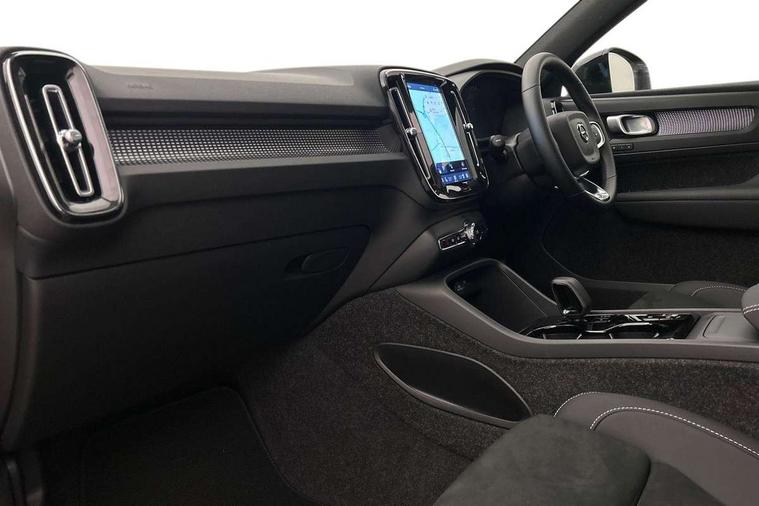 12.3" Progressive Driver Display, 360 degree surround view parking camera with side proximity sensors, 9" centre console portrait touch screen, Adjustable steering wheel force, Android auto (Wired), Apple carplay (wired), Bluetooth handsfree system, Driver alert control, Driver assistance (pilot assist and adaptive cruise control), Driver awareness - Blind spot information system with steer assist, cross traffic alert with autobrake and rear collision warning and mitigation, E-call, Front park assist, Google automotive services - Enabled entertainment apps, navigation with google maps, voice recognition with google assistant, Hands free power tailgate, Intelligent speed assistance, Lane keeping aid, Oncoming Lane Mitigation, Rear park assist, Speed sensitive steering, Volvo cars services with app - Driving journal, engine remote start, remote door locking/unlocking and vehicle dashboard, Wireless/Inductive Mobile Phone Charging, Automatic transmission with start/stop and manual change functions, Dynamic chassis, DAB Digital radio, Premium Sound by Harman Kardon, Dolby Pro Logic II Surround Sound, Dirac Unison, 12 speakers/600W and subwoofer, Steering wheel mounted remote controls, Active bending pixel LED headlights with adaptive shadow technology, Active high beam incorporating daytime running lights, Adaptive brake lights with high level LED brake lights, Auto dimming feature for exterior door mirrors, Auto dimming interior mirror, Automatic headlamp levelling, Colour coordinated auto folding and heated power door mirrors, Dark tinted windows - rear side windows and rear screen, Front aluminium tread plates, Front and rear electric windows, Headlight cleaning system, High gloss black front and rear skid plate, High gloss black front bumper deco, High gloss black front grille strikethrough and ironmark, High gloss black rear model, engine and volvo logo badges, High gloss black window trim, Home safe and approach lighting, Integrated roof rails in high gloss black, LED front fog lights with cornering function, Power glass tilt and slide panoramic sunroof with sun curtain, Puddle lights, Rain sensor with automatic windscreen wiper activation, Rear side wing doors, Rear wiper, Roof antenna, Roof spoiler, Visible VIN plate, 12V socket in front tunnel console and luggage compartment, 2-Zone electronic climate control with CleanZone air quality system and pollen filter, 3 seat bench in 2nd row, 3 Spoke tailored steering wheel with chrome trim, 60/40 versatile split folding rear seat, Centre console cupholders and storage, Charcoal headlining, Connect textile/microtech upholstery, Flexible load floor and grocery bag holder, Floor mats, Front cabin courtesy lights, Front door pocket, front cupholder, ambient front door, rear reading, rear courtesy, instrument panel and tailgate lighting, Front footwell illumination, Front headrests, Front reading lights, Front seat cushion extensions, Front side step illumination (under door), Glovebox bag hook, Heated front seats, Height/reach adjustable steering column, High gloss centre tunnel deco, Illuminated glovebox, Illuminated luggage compartment, Illuminated vanity mirrors + ticket holder, Integrated waste bin, Isofix attachments on outer rear seats, Load cover, Load protection net, Multi directional lumbar support for driver and passenger seat, Power driver seat with memory + exterior mirrors memory, Power folding rear headrests, Power passenger seat, Rear armrest with cupholders, Single front passenger seat, Underfloor cargo storage, Climate pack without heated front seats - XC40, 3x3 point rear seatbelts, City safety with steering support with Pedestrian + cyclist + front collision warning with full auto brake and rear auto brake, Driver and passenger airbags, Drivers knee airbag, Electronic parking brake with auto hold, First aid kit, Front and outer rear seatbelt reminder and pretensioners, Front seats SIPS airbags, Hill descent control, Hill start assist, Inflatable curtain, Passenger airbag cut-off device, Power child locks on rear doors, Road sign information display, Run off Road Protection, SIPS (Side Impact Protection System), Slippery road and hazard light alert, Stability and Traction Control with Spin control, Engine Drag Control and Corner Traction Control, Tyre pressure monitoring system, Vehicle deceleration control with Anti-lock Brake System, Electronic Brake Distribution and Emergency Brake Assist, Warning triangle, WHIPS whiplash protection system - front, 2 x Key integrated remote control central locking including with deadlocking system and auto open/close windows and sunroof, Anti-theft alarm including immobiliser/volume sensor + level sensor, Keyless drive includes keyless entry and keyless start, Locking wheel nuts,