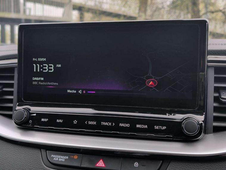 10.25" touchscreen satellite navigation, 4.2" supervision colour cluster display, Apple car play/Android Auto with voice control, Bluetooth with Voice Recognition & Music Streaming, Drive mode select (Normal and Sport), Driver attention warning + (DAW) with leading vehicle departure warning, Emergency call service, Emergency stop signalling system, Forward Collision-Avoidance Assist (FCA) - City/Pedestrian/Cyclist, Kia connect UVO, Lane Following Assist (LFA), Lane keep assist, Manual speed limit assist, Motor driven power steering, Rear parking sensor, Reversing camera system with dynamic guidelines (Integrated into centre fascia screen), Smart cruise control with stop/go functionality, Trip computer, Intelligent Stop and Go, 6 speaker audio system, DAB Radio with MP3, Illuminated USB ports, Steering wheel mounted controls, USB Fast Charger in Front Centre Console, USB type A port, All-round Electric Windows with Front Auto Up & Down Function, Auto dimming rear view mirror, Automatic defog system, Automatic headlights control, Body colour bumpers, Body colour door mirrors, Body colour exterior door handles, Body colour rear roof spoiler, Chrome window surround, Electric adjustable/heated/folding door mirrors with LED Indicators, Heated rear window with timer, High beam assist, High gloss black and white chrome coated radiator grille, LED daytime running lights, LED front fog lights, LED Headlights, LED High-mounted Brake Light, LED rear combination lights, Privacy glass (rear side windows and tailgate), Rain sensing front wipers, Rear side wing doors, Rear wash/wipe, Roof rails, Tinted glass, Wide view drivers door mirror, Windscreen Washer Level Warning, 1 x Front 12V socket, 12V power socket in luggage compartment, 3 seat bench in 2nd row, 3 x passenger assist grips, 60/40 split folding rear seat, All-round height adjustable headrests, Centre console storage box/armrest, Cloth upholstery with faux leather bolsters, Cupholders in centre console, Cupholders in rear armrest, Dash illumination dimmer switch, Door courtesy lamps, Driver & Front Passenger Sunvisors with Vanity Mirror Illumination & Ticket Holder, Driver + front passenger electric lumbar support, Driver's seat height adjuster, Dual Height Luggage Area Floor, Dual zone automatic air conditioning, Faux leather door centre trim, Front and rear door storage, Front cabin map light with sunglasses case, Front Passenger Seat Height Adjuster, Front seat back pockets, Heated front seats, Heated steering wheel, Interior door lock/unlock function, ISOFIX Child seat top tethers and anchor fixings, Leather handbrake, Leather trimmed steering wheel, Luggage area light, Luggage area parcel shelf, Luggage hooks, Rear centre armrest, Rear coat hooks, Single front passenger seat, Tilt/telescopic adjustable steering wheel, All round 3-point seatbelts, Anti-lock braking system (ABS), Brake assist system, Dual front side airbags, Dual horn, EBD - Electronic brakeforce distribution, Electronic parking brake, Electronic stability control (ESC) and vehicle stability management (VSM), Front passenger airbag cut-off switch, Height adjustable front seatbelts, Hill start assist control (HAC), Impact sensing auto door unlocking, Rear door child safety locks, Seatbelt reminder warning, Twin curtain airbags, Twin front airbags, Tyre pressure monitoring system, Alarm system, Engine Immobiliser & Deadlocks, Engine Start/Stop Button with Smart Entry System, Locking wheel nuts, Speed sensitive auto door locking, Satin Chrome Fascia Trim, 17" Alloy wheels, Tyre mobility kit,