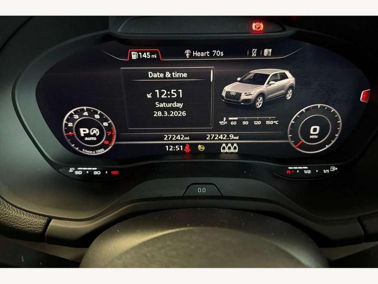 Audi connect navigation and infotainment includes innovative services, Audi connect remote and control connects your vehicle to your smartphone, Audi drive select - Power steering assistance + engine + gearshift, Audi drive select with efficiency, Audi smartphone interface, Audi virtual cockpit, Automatic start/stop system with recuperation, Bluetooth interface includes bluetooth audio streaming, Cruise control, E-call, MMI navigation plus with MMI touch, Power operated tailgate, Progressive steering, Rear parking sensors, 2 x SDXC card reader, 6 passive loudspeakers, DAB Digital radio, DVD Drive, Auto dimming rear view mirror, Black window trims, Bumper in full body colour paint finish, Electrically adjustable, folding, auto dimming and heated door mirrors with integrated LED side indicators, Front windscreen with grey tinted sunband, LED daytime running lights, LED headlights with LED rear lights, LED third brake light, Privacy glass - dark tinted rear and rear side windows from B-pillar backwards, Rear side wing doors, Rear wiper, Variable front intermittent wipers, Wheel arch trims in manhattan grey, 12V socket in front, 3 seat bench in 2nd row, 3 spoke flat bottomed multi-function leather sport steering wheel with gear shift paddles, 4-way electric lumbar support for front seats including seat height adjustment for both front seat, 60/40 split folding rear seat bench, Black cloth headlining, Front and rear head restraints, Front centre armrest, Front/rear floor mats, Height/reach adjust steering wheel, Illuminated door sill trims with S logo, ISOFIX child seat mounting in front passenger and rear outer seats, Single front passenger seat, Stainless steel pedals, Black styling pack - Q2, 3x3 point rear seatbelts, 6 airbags - Front, curtain and front side airbags, Electromechanical parking brake, Electronic stabilisation control including ABS, ASR and EDL, Front passenger airbag deactivation, Hill hold assist, Pre-sense front with pedestrian recognition, Seatbelt monitoring, Tyre pressure warning light, Warning triangle and first aid kit, Anti theft alarm, Anti theft wheel bolts, Electronically operated child locks, Remote central door locking, Aluminium interior element, Matt brushed aluminium trim inlays, Tool kit,