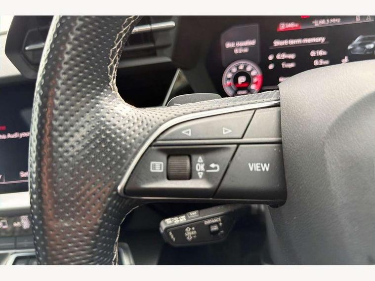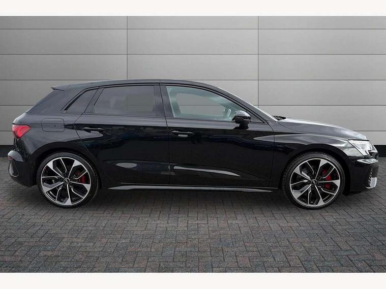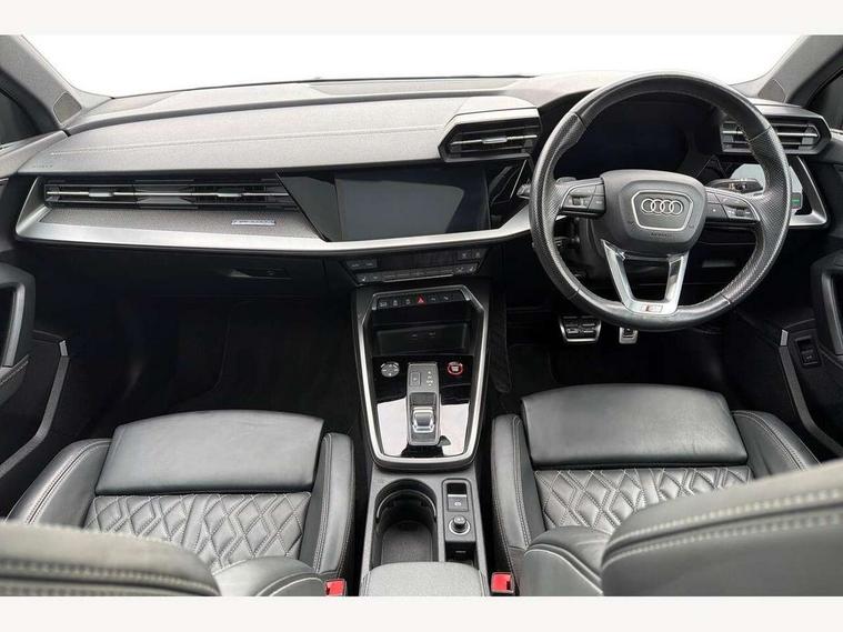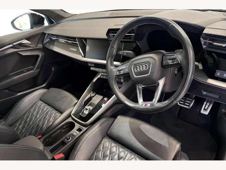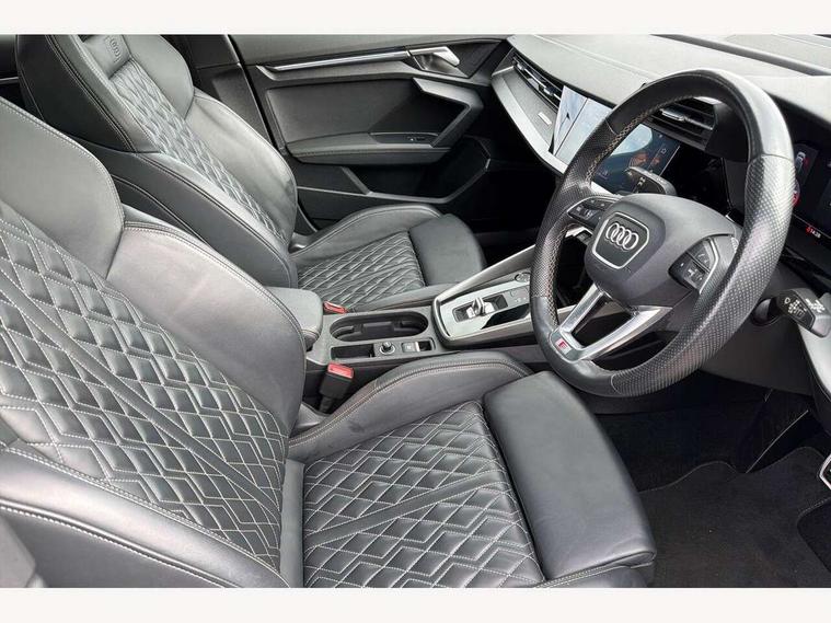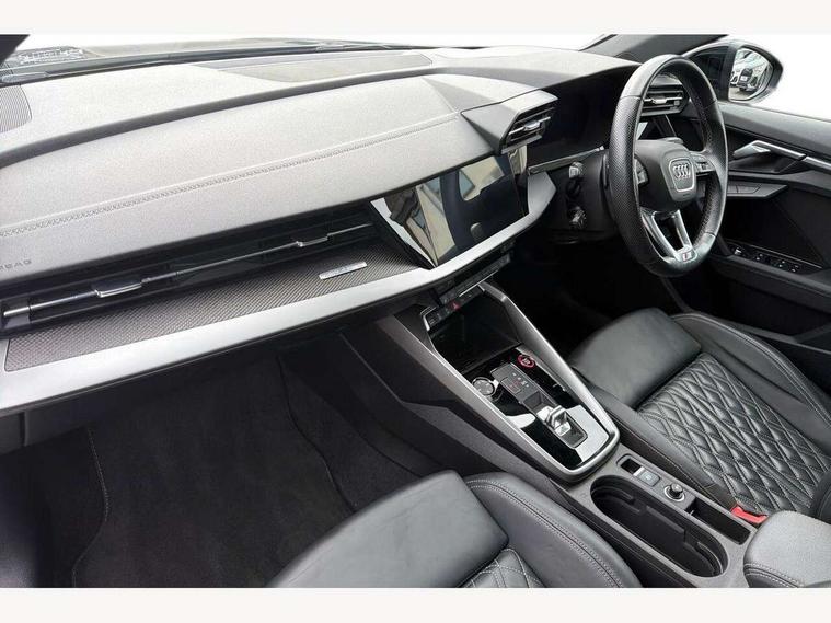 Audi connect emergency call and service, Audi drive select (Auto, Comfort, Dynamic, Efficiency and Individual), Audi phone box with wireless charging, Audi smartphone interface, Audi virtual cockpit plus - 12.3" full HD resolution dynamic digital instrument cluster, Automatic start/stop system with recuperation, Bluetooth interface, Collision avoidance assistant, Head up Display, Lane departure warning system, MMI Navigation Plus with high resolution 10.1" colour touch screen display, Progressive steering, Service indicator, Trip computer, Voice control system with natural language interaction, Quattro permanent all wheel drive, S suspension with damper control, 2xUSB-C connection with data and charging functions, Bang and Olufsen premium sound system with 3D sound, DAB Digital radio, Acoustic glass windscreen, Audi Beam uses LEDs to project Vorsprung logo, Audi matrix LED headlights with LED rear lights + dynamic front and rear indicators, Auto dimming frameless rear view mirror, Dual branch oval twin tailpipes in chrome plated finish, Electrically adj heated/folding + automatically dimming exterior mirrors with memory + automatic kerb side function for passenger side exterior mirror, Front electric windows, Headlight washers, Illuminated aluminium inserts front door sills with S logo, Integrated LED indicators in door mirrors, LED daytime running lights, Light and rain sensors, Privacy glass - dark tinted rear window, rear door and side windows, Rear electric windows, Rear side air outlets in grained matt black, Rear wiper, 12V socket and storage compartment in front centre console, 3 spoke leather multifunction steering wheel with gear shift paddles, 4 way electrically adjustable lumbar support for driver and front passenger, 40/20/40 split folding rear seat bench with cupholder, Black cloth headlining, Dual zone electronic climate control, Electrically adjustable front seats with memory function for driver's side, Front and rear centre armrest in leather, Front and rear headrests, Front/rear floor mats, Heated front seats, Height and reach adjustable steering wheel, Interior lighting - glove compartment light and right hand side, Luggage compartment floor covering, Seat side bolsters, Stainless steel pedals and front footrest, Aluminium interior elements pack - A3 Sportback, Black styling pack - A3 Sportback, Design body styling - A3 Sportback, Driver assistance package - A3 Sportback, Extended ambient lighting pack - A3 Sportback, LED interior lighting pack - A3 Sportback Edition 1/Vorsprung, Storage pack - A3 Sportback, 3x3 point rear seat belts, Driver and front passenger airbag with passenger airbag deactivation, Electronic Stabilisation Control (ESC) including ABS, ASR and EDL, First aid kit with warning triangle and 2 safety vests, Front side airbags with head airbags and interaction airbag, Hill hold assist, Pre-sense front with pedestrian and cyclist detection, Seatbelt monitoring, Tyre pressure loss indicator, Advanced key, Anti theft alarm, Anti-theft wheel bolts, Electronically operated child lock, Immobiliser, Remote control central locking, Carbon inlays, accent surfaces in the dashboard and centre console in platinum grey silk effect paint finish, Tool kit,