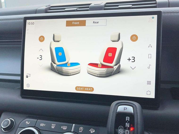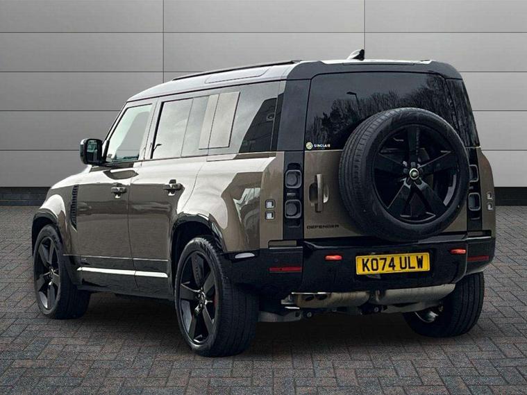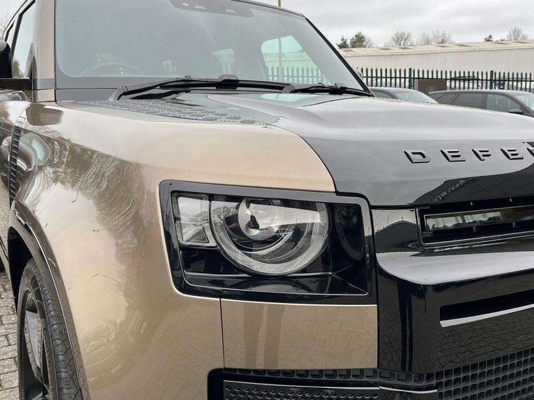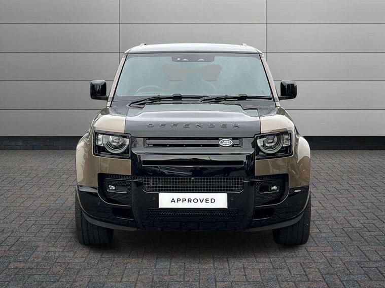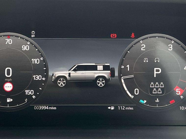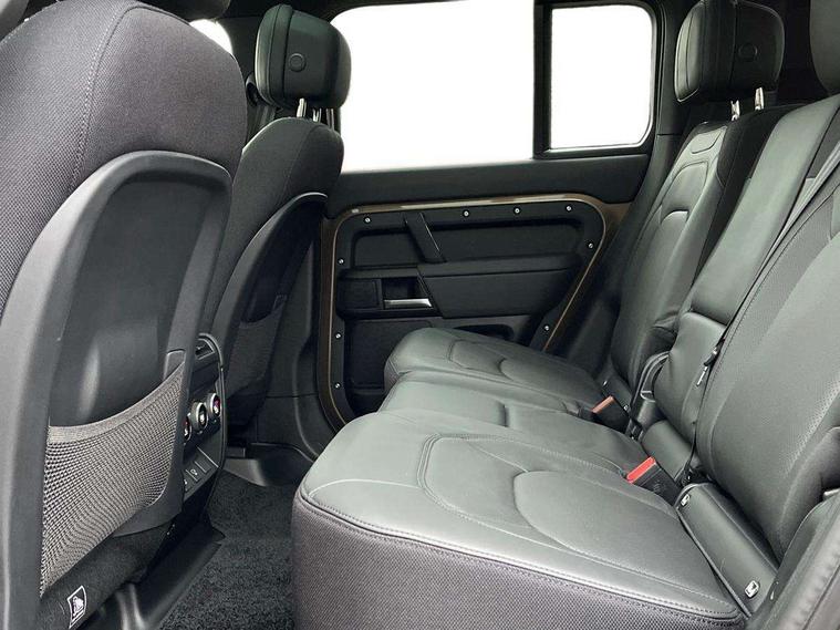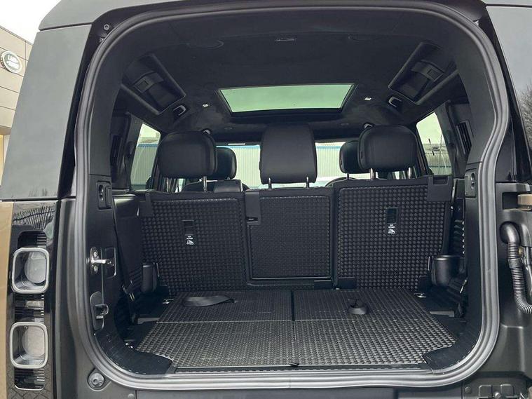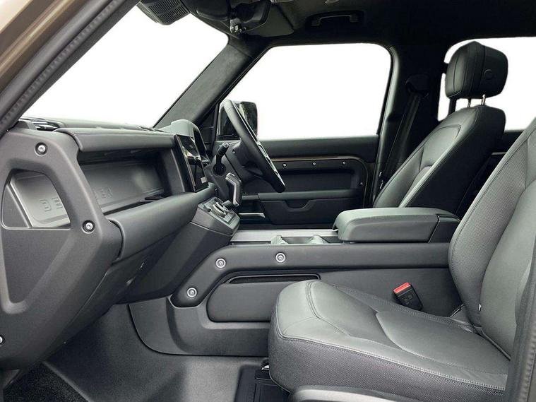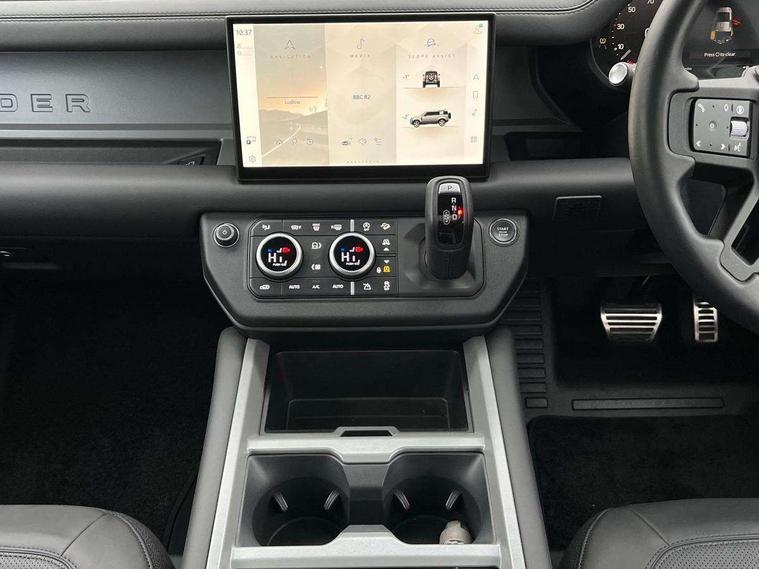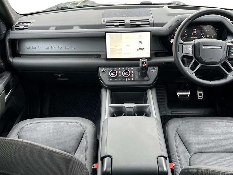 1 x USB-C (power only) & 1 x USB-C (power & data) in Row 1, 2 x USB-C in Row 2, 11.4" touchscreen, 2 x USB-C in Row 3, 360 degree parking aid, 3D Surround Camera with 360 View, 180 Rear View, Front Traffic Detection, Forward Vehicle Guidance, Tow Hitch Assist and clear sight Ground View, Adaptive cruise control, Android Auto, Apple CarPlay, Blind spot assist, Bluetooth system, Brake pad wear indicator, Clear exit monitor, Connected navigation pro, Driver condition monitor, Electric power assisted steering (EPAS), Head up Display, Interactive driver display, Lane keep assist, Push button start, Rear collision monitor, Rear traffic monitor, Traffic sign recognition with adaptive speed limiter, Trip computer, Wade Sensing, Wireless device charging, 8 speed automatic transmission, Adaptive dynamics, All terrain progress control, All wheel drive system, Configurable Terrain Response, Electronic active differential with brake torque vectoring, Electronic air suspension, Terrain Response 2, Twin speed transfer box, DAB Radio (Digital Audio Broadcasting), Meridian 700w surround sound audio system with 15 speakers, Pivi pro connected, Automatic headlight levelling, Automatic headlights, Centre high mounted stop light, ClearSight interior rear view mirror, Darkened LED tail lights, Electric heated/power fold door mirrors with approach lights and auto dimming driver side, Electric windows with one touch open/close and anti-trap, Follow me home lighting, Front fog lights, Heated rear window with timer, Heated windscreen, Illuminated metal treadplates with brand name script, Matrix LED headlights with signature DRL, Privacy glass, Puddle lights, Rain sensing windscreen wipers, Rear fog lights, Rear side wing doors, Rear wiper, Side hinged tailgate, Sliding panoramic roof, Standard tail door, Trailer stability assist, X badge, 12V power socket in loadspace, 14 way heated and cooled electric memory front seats with 4 way manual winged headrests, 2 seat bench in 3rd row, 3 seat bench in 2nd row, 60:40 load through climate rear seats with winged headrests, manual slide and recline and centre armrest, Alpine lights, Bright metal pedals, Configurable cabin lighting, Domestic plug socket, Durable rubber cabin flooring, Durable rubber loadspace flooring, Electric reach + rake adjustable steering column, Electrically adjustable steering column, Footwell lights, Front head restraints, Front passenger isofix child seat attachment, Heated steering wheel, Loadspace cover, Loadspace Hook, Multifunction steering wheel, No flat load floor storage, Overhead stowage for sunglasses, Rear headrests, Rear ISOFIX, Rear reading lights, Signature interior upgrade, Single front passenger seat, Soft close tail door, Storage glovebox, Sunvisors with illuminated vanity mirrors, Twin front cupholders, Family Comfort Pack - Defender 7 Seat, Non-smoker package, Online pack with data plan - Defender, 7 three point seatbelts, ABS, Brake hold function, Cornering brake control (CBC), Cross car beam in metallic grey powder coat brushed finish, Customer configurable autolock, Driver and passenger airbags, DSC - Dynamic Stability Control, EBD - Electronic brakeforce distribution, Electric parking brake (EPB), Emergency brake assist, Emergency braking, ESP + traction control, Front airbags with passenger seat occupant detector, HDC - Hill descent control, Hill launch assist, Low traction launch, Orange brake calipers, Power operated child locks, Remote for (e-Call, Optimised assistance call, InControl app, Climate, beep and flash and door), RSC - Roll stability control, Seat belt reminder, TPMS (Tyre pressure monitoring system), Alarm, Immobiliser, Intrusion sensor, Keyless entry, Locking wheel nuts, Secure tracker pro,