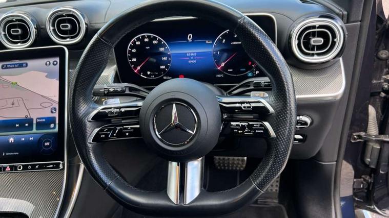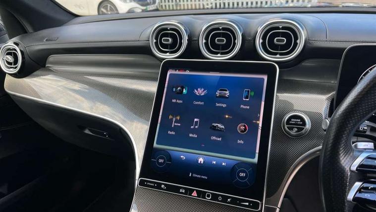 11.9" high resolution multimedia colour display, 12.3" Digital individually configurable instrument display, Acoustic presence indicator, Active lane keeping assist, Attention assist, Blind spot assist, Collision prevention assist plus, Cruise control with speedtronic variable speed limiter, Direct steer speed sensitive steering, DYNAMIC SELECT with a choice of driving modes (ECO, Comfort, Sport, Sport+ and Individual), Easy pack automatic powered tailgate, eCall emergency call system, ECO start/stop function, Fingerprint scanner, Fluorescent jacket for driver, Hard disk navigation, Instrument display in miles with English lettering, MBUX augmented reality for navigation, MBUX navigation premium, MBUX voice control activated by keywords "Hey Mercedes", Mercedes me connect, Outside temperature display, Remote boot release, Remote services, Road sign recognition system, Service indicator (ASSYST), Smartphone integration, Status display for rear seat belts in instrument cluster, Traffic sign assist, Wireless charging, 48V Mild hybrid technology, 4MATIC permanent four wheel drive, 62 litre fuel tank, 9G TRONIC plus automatic transmission, Diesel particulate filter, Sport suspension, DAB digital radio tuner, MBUX extended functions, Mercedes benz sound system, USB ports x 2 USB C ports in centre console, Adaptive high beam assist plus, Aluminium look running boards with rubber studs, Aluminium roof rails, AMG bodystyling front apron, rear apron and side skirts, AMG Line exterior, Auto headlights, Body colour bumpers, Digital light LED headlights, Electrically adjustable door mirrors, Front and rear electric windows, Headlight washers, Heat and noise insulating acoustic glass, Heat insulating dark tinted glass, Heated door mirrors, Heated rear window, Integrated LED daytime running lights, LED indicator lights, LED rear fog lights, LED tail lamp, LED third brake light, Radiator grille with Mercedes Benz pattern and integreated Mercedes star and louvre in dark grey matt with chrome inlay and black frame, Rain sensor windscreen wipers, Rear side wing doors, Rear wiper, Transparent Bonnet, Two chrome plated tailpipe trim elements, Welcome and follow-me home light functionality, Wider wheel arch for AMG wheels, 3 seat bench in 2nd row, 40:20:40 split folding rear seats, Ambient light in 64 colour with dynamic multicolour LED interior lightings, AMG line interior, AMG sports seats, Automatic child seat recognition sensor, Black fabric roof lining, Black floor mats with AMG lettering, Double cup holder in centre console, Easy-pack removable load compartment cover, Electrically height/reach adjustable steering column, Front centre armrest with stowage compartment, Front head restraints, Galvanised steering wheel gearshift paddles, Heated front seats, Illuminated door sill panels with Mercedes Benz lettering, Illuminated glove compartment, Instrument panel and beltlines in Artico man made leather in nappa look, Multi function steering wheel with audio and onboard settings control, Multifunction sports steering wheel in nappa leather, Rear centre headrest, Rear head restraints, Rear top tether child seat ISOFIX attachment, Single front passenger seat, Sports pedals with stainless steel surfaces and rubber studs, Steering wheel with audio and onboard settings control, Sun visors, THERMATIC 2 zone automatic climate control, Anti theft protection package - GLC, Boot comfort package - GLC, Exterior chrome package - GLC, Interior chrome package - GLC, Interior lighting pack - GLC, Memory pack - GLC, Mirror pack - GLC, Parking package with 360 degree camera - GLC, Seat comfort package - GLC, Stowage space package - GLC, USB Package - GLC, 3 rear 3 point seatbelts, Active braking assist, Anti-lock braking system (ABS), ASR traction control, Automatic front passenger airbag deactivation, Black seat belts, Brake calipers with Mercedes-Benz lettering + perforated brake discs, Braking system with larger brake discs on the front axle, Child proof door locks, Dual-stage airbags - driver and front passenger, driver knee bag and window bags for driver, front passenger and rear passengers, Electronic parking brake, Electronic stability programme (ESP) with curve dynamic assist and cross wind assist, Front and rear seatbelt reminder, Front seatbelt pretensioners, Hill start assist, Tyre pressure monitoring system, 360 degree guard vehicle protection plus, Anti theft alarm system with preinstallation for collision detection, Dashcam, Immobiliser, Keyless Go entry and starting function, Centre console in metal structure finish, Metal structure trim, 20" AMG 5 spoke aerodynamically optimised light alloy wheels in painted black with high sheen finish, Summer tyres, TIREFIT with tyre inflation compressor,