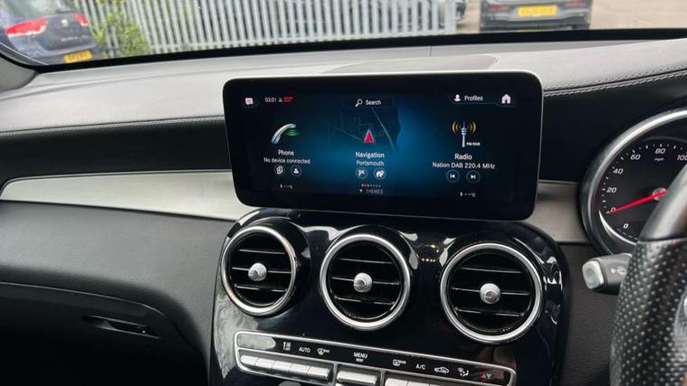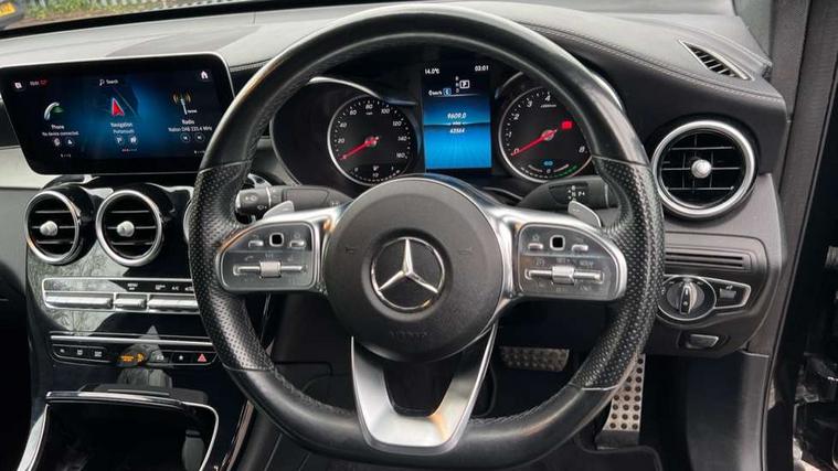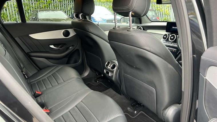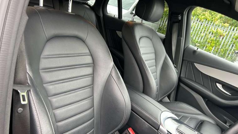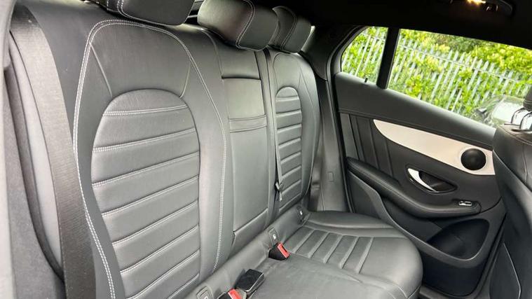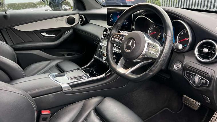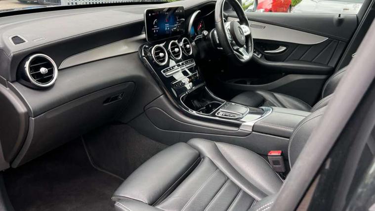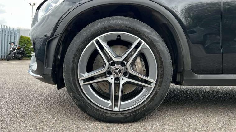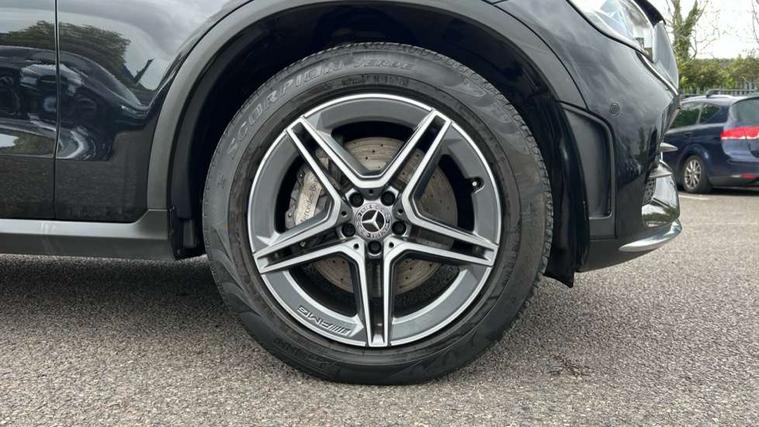 Attention assist, Bluetooth interface for hands free telephone, Collision prevention assist plus, Cruise control with speedtronic variable speed limiter, Direct steer speed sensitive steering, DYNAMIC SELECT with a choice of driving modes (ECO, Comfort, Sport, Sport+ and Individual), Easy pack automatic powered tailgate, ECO start/stop function, Hard disk navigation, Hey Mercedes Voice activation, Instrument cluster with 5.5-inch TFT multi-function display, MBUX Interior assistant, Mercedes connect me with remote online services, Multi function trip computer, Outside temperature display, rear seatbelt status indicator, Parktronic system with rear cross traffic alert and drive away assist, Remote boot release, Reversing camera, Service indicator (ASSYST), 4MATIC permanent four wheel drive, 66 litre fuel tank, 9G TRONIC plus automatic transmission with steering column gear selector, DIRECT SELECT steering wheel gearshift paddles, Petrol Particulate Filter (PPF), Sports suspension tuned for improved handling and driving dynamics, 5 speakers, Frontbass loudspeakers, MBUX multimedia system with DAB digital radio and touchpad including satellite navigation, Media display 10.25-inch touchscreen display, Pre installation for Mercedes Benz Link, USB ports x 2 in centre console, Adaptive brake lights, AMG bodystyling - AMG front apron with sporty air intakes and chrome trim element, AMG diffuser-look rear apron with insert in black, Body colour door mirrors, Body coloured bumpers, Electric windows one touch open/close, Electrically adjustable and heated door mirrors, Front, side and rear exterior chrome trim, Headlamp assist automatic headlamp activation, LED high performance headlamps with integrated LED daytime running lights, LED tail lamp, Privacy glass with dark glass from B pillar backwards, Radiator diamond grille, Rain sensor windscreen wipers, Range adjustable headlights, Rear wiper, Tinted glass all round with single layer safety glass, Two chrome plated tailpipe trim elements, 2 way rear head restraints, 3-spoke multifunction sport AMG steering wheel in black nappa leather with flattened bottom section, chrome insert and perforated leather in grip area, 40:20:40 split folding rear seats, AMG floor mats with edging and embroidered AMG lettering, AMG sports seats, Artico man-made leather upper dashboard with contrast topstitching, Automatic child seat recognition sensor, Black roof lining, Dividing net - rear, Double cup holder in centre console, Easy-pack removable load compartment cover, Front armrest with storage box, Front door sills with Mercedes Benz lettering, Front head restraints, Front seats with electric adjust (backrest, height and seat cushion inclination) with 4 way electric lumbar support and manual cushion depth adjust, Heated front seats, Height/reach adjustable steering column, Illuminated and lockable glove compartment, Leather upholstery, Rear top tether child seat ISOFIX attachment, Sports pedals with stainless steel surfaces and rubber studs, Steering wheel with touch control buttons, THERMOTRONIC 3 zone automatic climate control, Interior lighting pack - GLC, Mirror pack - GLC, Storage pack - GLC, 3 rear 3 point seatbelts, Active bonnet, Adaptive brake system with HOLD function and brake drying in the wet, ASR, Black seat belts, Brake calipers with Mercedes-Benz lettering + perforated brake discs, Child proof door locks, Dual-stage airbags - driver and front passenger, driver knee bag and window bags for driver, front passenger and rear passengers, Electronic parking brake, Electronic stability programme (ESP) with curve dynamic assist and cross wind assist, Front and rear seatbelt reminder, Front passenger seat occupancy sensor, Hill hold function, Tyre pressure monitoring system, Warning triangle and first aid kit, Alarm system/interior protection/immobiliser, Automatic door locking, KEYLESS-GO starting function, Remote central locking, Open pore black ash wood trim, 19" AMG 5 twin spoke alloy wheels painted tremolite grey with high sheen finish and tirefit,