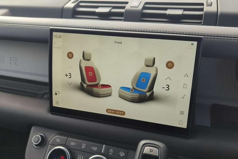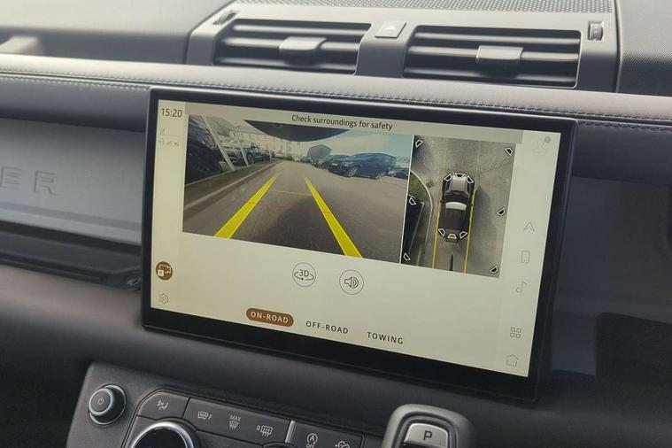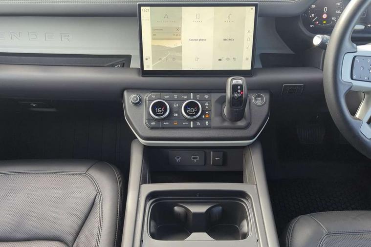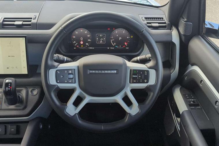 11.4" touchscreen, 360 degree parking aid, 3D Surround Camera with 360 View, 180 Rear View, Front Traffic Detection, Forward Vehicle Guidance, Tow Hitch Assist and clear sight Ground View, Adaptive cruise control, Android Auto, Apple CarPlay, Assisted tailgate with soft close, Blind spot assist, Bluetooth system, Brake pad wear indicator, Clear exit monitor, Connected navigation pro, Driver condition monitor, Electric power assisted steering (EPAS), Interactive driver display, Lane keep assist, Push button start, Rear collision monitor, Rear traffic monitor, Traffic sign recognition with adaptive speed limiter, Trip computer, Wade Sensing, 8 speed automatic transmission, All wheel drive system, Twin speed transfer box, DAB Radio (Digital Audio Broadcasting), Pivi pro connected, Auto dimming interior rear view mirror, Automatic headlight levelling, Automatic headlights, Centre high mounted stop light, Electric heated/power fold door mirrors with approach lights and auto dimming driver side, Electric windows with one touch open/close and anti-trap, Follow me home lighting, Front fog lights, Heated rear window with timer, Heated windscreen, LED tail lights, Panoramic rear side glass, Puddle lights, Rain sensing windscreen wipers, Rear fog lights, Rear wiper, Side hinged tailgate, Standard treadplates, Trailer stability assist, 12V power socket in loadspace, 14 way heated and cooled electric front seats with driver memory and 4 way manual headrests, 3 seat bench in 2nd row, Alpine lights, Configurable cabin lighting, Durable rubber cabin flooring, Durable rubber loadspace flooring, Electric reach + rake adjustable steering column, Extended leather upgrade, Footwell lights, Heated steering wheel, Loadspace cover, Loadspace Hook, Manual Tip & Slide front passenger seat, Multifunction steering wheel, Overhead stowage for sunglasses, Premium cabin lighting, Rear headrests, Rear ISOFIX, Rear reading lights, Removable Loadspace storage tray, Row 2 seats with forward folding seat base, Single front passenger seat, Standard seat configuration, Storage glovebox, Sunvisors with illuminated vanity mirrors, Online pack with data plan - Defender, 5 x 3 point seatbelts, ABS, Brake hold function, Cornering brake control (CBC), Customer configurable autolock, DSC - Dynamic Stability Control, EBD - Electronic brakeforce distribution, Electric parking brake (EPB), Emergency brake assist, Emergency braking, ESP + traction control, Front airbags with passenger seat occupant detector, HDC - Hill descent control, Hill launch assist, Low traction launch, Remote for (e-Call, Optimised assistance call, InControl app, Climate, beep and flash and door), RSC - Roll stability control, Seat belt reminder, TPMS (Tyre pressure monitoring system), Alarm, Immobiliser, Intrusion sensor, Keyless entry, Locking wheel nuts,