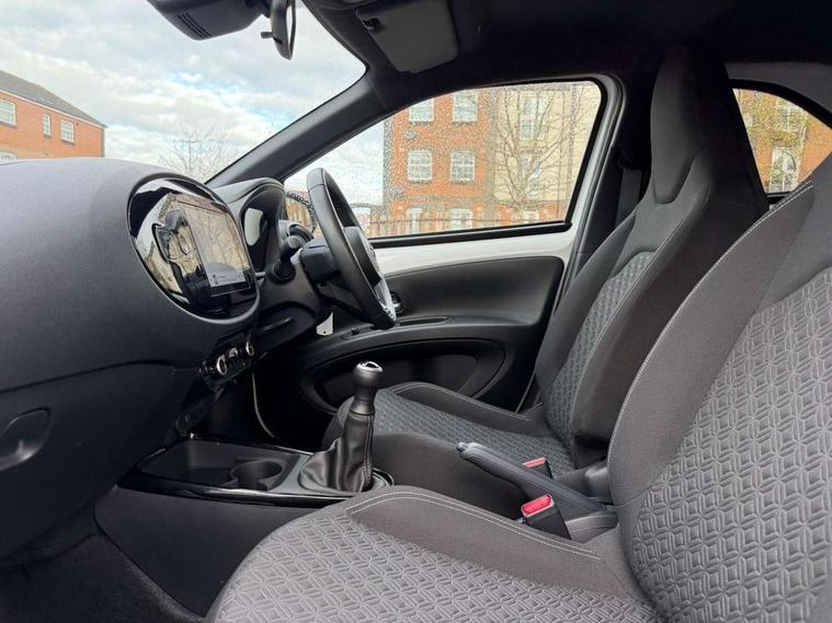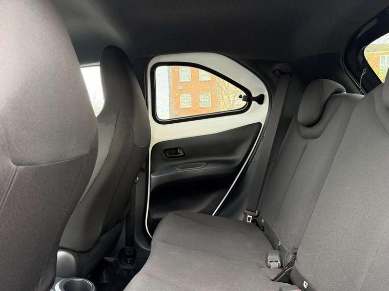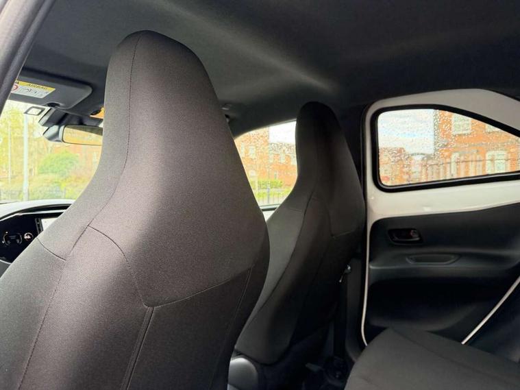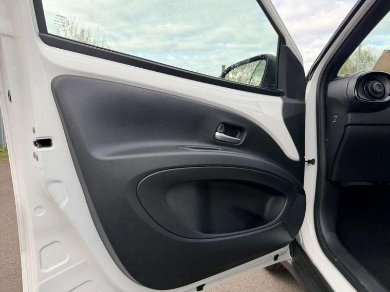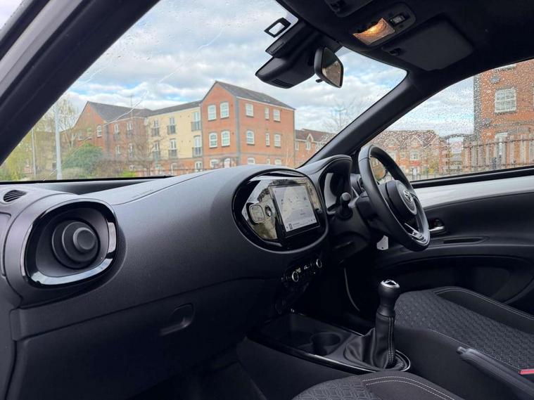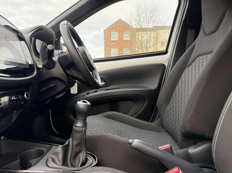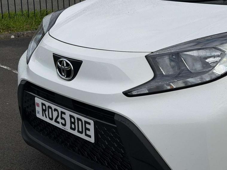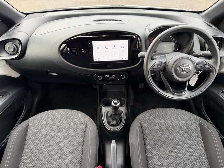 4.2" TFT colour screen, Adjustable speed limiter, Analogue speedometer, Bluetooth connectivity, Digital tachograph, Driver attention alert system, eCall emergency call system, Electric power steering, Intersection turn assist, Key reminder warning, Noise reduction kit, Pre collision system with emergency steering assist, Reversing camera with static guide lines, Smart phone integration with Apple car play/Android Auto, Speed limit display, Start and stop, Vehicle Stability Control (VSC), 4 speakers, 9" HD multimedia display touch screen with Toyota smart connect, DAB digital audio broadcast, USB connector, Auto headlights, Auto wipers, Automatic headlights cut-off, Bicycle towing hook, Black contrast roof, Black side protection mouldings, Black wheel arch mouldings, Body colour door handles, Body coloured front bumper, Boot door scuff plate, Eclipse black rear bumper, Electric heated door mirrors, Follow me home headlights, Front fog lights, Front power windows, Gloss black door mirrors, Gloss black upper front grille, Headlight cut-off reminder, LED daytime running lights, LED front light guide, LED High mounted stop lamp, Manual day/night rear view mirror, Manual headlight levelling, Pagoda roof, Power adjustable door mirrors, Power back door, Privacy glass, Projector halogen headlights, Rain sensor, Rear combination lights LED bulb type, Rear side wing doors, Rear windscreen defogger, Rear windscreen wiper, Short antenna, Variable intermittent windscreen wipers, 12v power outlet - front, 2 seat bench in 2nd row, 3 spoke leather steering wheel, 50/50 split folding rear seat, Adhesive roof headlining, Adjustable speed limiter switch on steering wheel, Audio and telephone switches on steering wheel, Auto air conditioning, Black insert on steering wheel, Black roof lining, Boot light, Centre room light, Chrome interior door handles, Chrome surround on air conditioning buttons, Clean air filter, Console box storage in body color, Fabric upholstery, Floor mats, Front and rear cup holders, Front head rest deco art, Front head restraints, Height adjustable driver seat, Intelligent adaptive cruise control switch on steering wheel, ISOFIX child restraint system on rear seats, Lane departure alert switch on steering wheel, Leather gearshift knob, Manual tilt steering wheel, Manually reclining and sliding driver seat, Manually reclining and sliding front passenger seat, Multimedia switches on steering wheel, Pollen filter, Rear door pockets, Rear head restraints, Satin silver insert on gear shift knob, Single compartment glovebox with lights, Single front passenger seat, Soft tonneau cover, Sun visors with mirror on driver and passenger side, Voice recognition switch on steering wheel, Toyota safety sense pack - Aygo X, Anti lock braking system + Electronic brake force distribution, Child safety door lock, Emergency brake light signal (EBS), Hill start assist control (HAC), Passenger airbag on/off switch, Seat belt reminder for front and rear seats, Supplement restraints system (SRS) - 6 airbags, Traction control, Tyre pressure warning system, Immobiliser, Remote power door locks, Black wheel centre caps, Tyre repair kit,