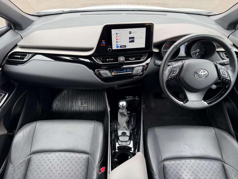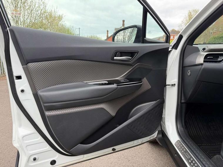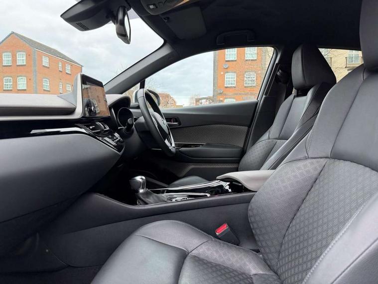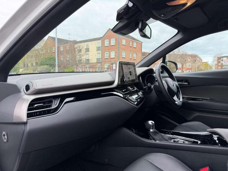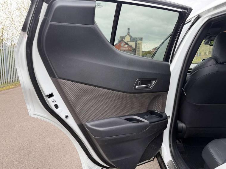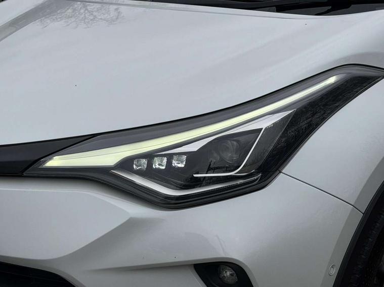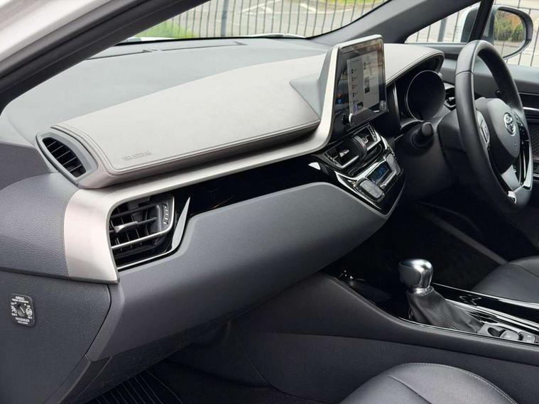 4.2" coloured TFT screen for multi-information display, Adaptive cruise control, Apple car play and Android auto, Bluetooth connectivity, E-call, Electric power steering, Hybrid system indicator, Lane departure alert with steering control, Lane trace assist, Push button tailgate release, Remote boot door release in cabin, Remote boot door release in key, Reversing camera, Road sign assist - RSA, Simple Intelligent parking assist, Smart voice assist, Touch 2 Go navigation system, Trip computer, Voice recognition, Wireless smartphone integration, Vehicle Stability Control (VSC), 6 speakers, AM/FM radio, DAB Radio (Digital Audio Broadcasting), Toyota touch 2 multimedia system with 8" display, USB connector, Wi-fi connectivity, Adaptive front light system, Adaptive LED Headlights, Anti-jam protection on power windows, Auto high beam, Auto up and down function on all power windows, Automatic headlight levelling, Automatic headlights, Automatic headlights cut-off, Black and body coloured rear bumper, Black lower front grille, Black upper front grille, Body colour door handles, Body colour door mirrors, Body colour front spoiler lip, Body coloured front bumper, Boot door release with push button, Electric heated door mirrors, Follow me home headlights, Front and rear power windows, Headlight cut off reminder, Honeycomb lower front grille, LED daytime running lights, LED fog lights, LED front light guide, LED High mounted stop light, LED rear brake lights, LED rear combination lights, Noise reduction layer on front windows and windscreen, Power adjustable door mirrors, Privacy glass, Rain sensor, Rear sequential indicators, Rear side wing doors, Rear spoiler, Rear tailgate, Rear window defogger, Rear window wiper, Shark fin antenna, UV-filter on driver and passenger windows, UV-filter on rear windows, Variable front intermittent wipers, 12v power outlet - front, 3 rear headrests, 3 seat bench in 2nd row, 3 spoke leather steering wheel, 60/40 split folding 2nd row rear seats, Adjustable rear headrests, Adjustable speed limiter switch on steering wheel, Assist grips front and centre pillar, Audio and telephone switches on steering wheel, Black front door assist grips, Blue ambient lighting on front cup holders, Blue ambient lighting on front doors, Boot light, Chrome interior door handles, Driver and front passenger personal light, Driver and front passenger Whiplash Injury Lessening seats, Driver and passenger seatback pockets, Dual zone automatic air conditioning, Floor mats, Front cupholders, Front head restraints, Front sports seats, Glovebox with internal light, Hard tonneau cover, Heated driver and front passenger seats, Heated steering wheel, Hooks for luggage holding net, Humidifying Nanoe air purifier, Illuminated entry system, Isofix attachments on outer rear seats, Leather gearshift, Light on driver sun visor, Light on passenger sun visor, Manual telescopic steering wheel, Manual tilt steering wheel, Microphone on front personal light, Mirror on driver sun visor, Mirror on passenger sun visor, Multimedia switches on steering wheel, Pollen filter, Power adjustable lumbar support on driver seat, Power tilting cushion on driver seat, Shopping bag hooks, Single front passenger seat, Slow opening on lower glovebox, Voice recognition switch on steering wheel, Leather pack - C-HR, Tech with parking sensor pack - C-HR, 16 Disk front wheel brake, 3x3 point rear seatbelts, ABS+EBD+Brake assist, Electronic parking brake, Front and rear seatbelt reminder, Front passenger airbag on/off switch, Hill start assist control (HAC), Pre collision system with pedestrian detection, Pre-tensioners and force limiters, Rear door child safety locks, SRS Airbags - Driver + Front passenger, front side, front and rear curtain and driver's knee airbags, Toyota safety sense, Tyre pressure monitoring system, Tyre pressure warning system, Acoustic vehicle alert system (AVAS), Glass-breaking alarm sensors, Immobiliser, Intrusion alarm, Intrusion sensor, Motion sensor alarm, Power door locks, Power passenger window lock, Remote central locking, Black lower dashboard, Dark brown upper dashboard, Piano black console, Silver deco line on upper dashboard, Tyre repair kit,