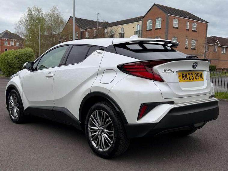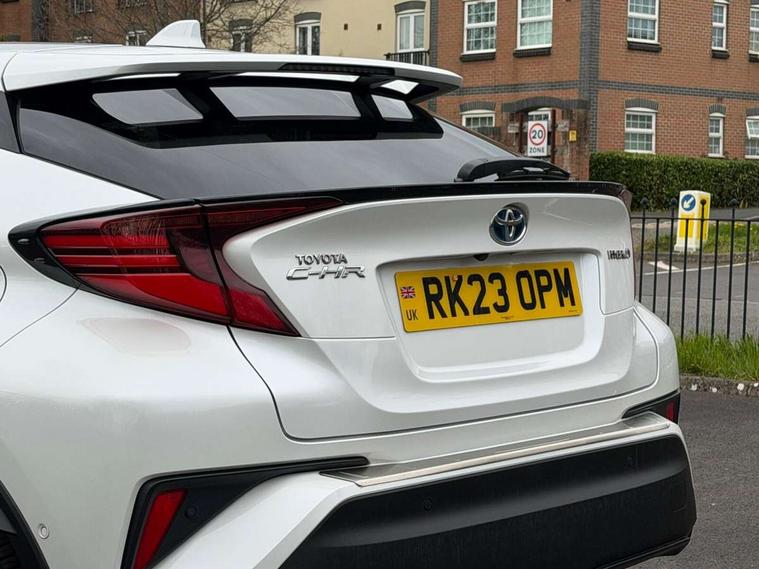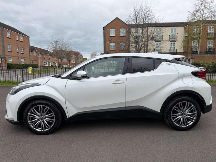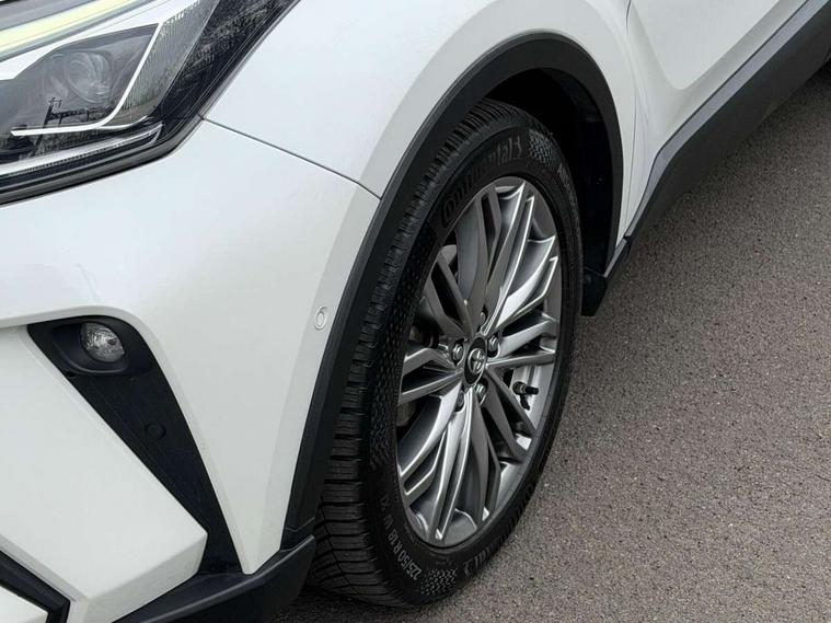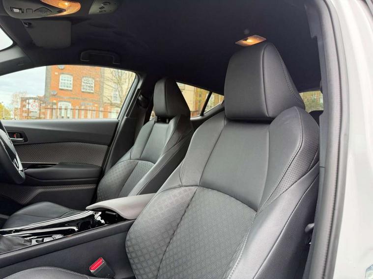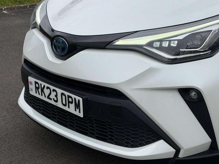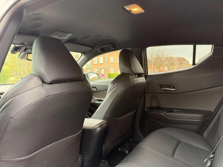 4.2" coloured TFT screen for multi-information display, Adaptive cruise control, Apple car play and Android auto, Bluetooth connectivity, E-call, Electric power steering, Hybrid system indicator, Lane departure alert with steering control, Lane trace assist, Push button tailgate release, Remote boot door release in cabin, Remote boot door release in key, Reversing camera, Road sign assist - RSA, Simple Intelligent parking assist, Smart voice assist, Touch 2 Go navigation system, Trip computer, Voice recognition, Wireless smartphone integration, Vehicle Stability Control (VSC), 6 speakers, AM/FM radio, DAB Radio (Digital Audio Broadcasting), Toyota touch 2 multimedia system with 8" display, USB connector, Wi-fi connectivity, Adaptive front light system, Adaptive LED Headlights, Anti-jam protection on power windows, Auto high beam, Auto up and down function on all power windows, Automatic headlight levelling, Automatic headlights, Automatic headlights cut-off, Black and body coloured rear bumper, Black lower front grille, Black upper front grille, Body colour door handles, Body colour door mirrors, Body colour front spoiler lip, Body coloured front bumper, Boot door release with push button, Electric heated door mirrors, Follow me home headlights, Front and rear power windows, Headlight cut off reminder, Honeycomb lower front grille, LED daytime running lights, LED fog lights, LED front light guide, LED High mounted stop light, LED rear brake lights, LED rear combination lights, Noise reduction layer on front windows and windscreen, Power adjustable door mirrors, Privacy glass, Rain sensor, Rear sequential indicators, Rear side wing doors, Rear spoiler, Rear tailgate, Rear window defogger, Rear window wiper, Shark fin antenna, UV-filter on driver and passenger windows, UV-filter on rear windows, Variable front intermittent wipers, 12v power outlet - front, 3 rear headrests, 3 seat bench in 2nd row, 3 spoke leather steering wheel, 60/40 split folding 2nd row rear seats, Adjustable rear headrests, Adjustable speed limiter switch on steering wheel, Assist grips front and centre pillar, Audio and telephone switches on steering wheel, Black front door assist grips, Blue ambient lighting on front cup holders, Blue ambient lighting on front doors, Boot light, Chrome interior door handles, Driver and front passenger personal light, Driver and front passenger Whiplash Injury Lessening seats, Driver and passenger seatback pockets, Dual zone automatic air conditioning, Floor mats, Front cupholders, Front head restraints, Front sports seats, Glovebox with internal light, Hard tonneau cover, Heated driver and front passenger seats, Heated steering wheel, Hooks for luggage holding net, Humidifying Nanoe air purifier, Illuminated entry system, Isofix attachments on outer rear seats, Leather gearshift, Light on driver sun visor, Light on passenger sun visor, Manual telescopic steering wheel, Manual tilt steering wheel, Microphone on front personal light, Mirror on driver sun visor, Mirror on passenger sun visor, Multimedia switches on steering wheel, Pollen filter, Power adjustable lumbar support on driver seat, Power tilting cushion on driver seat, Shopping bag hooks, Single front passenger seat, Slow opening on lower glovebox, Voice recognition switch on steering wheel, Leather pack - C-HR, Tech with parking sensor pack - C-HR, 16 Disk front wheel brake, 3x3 point rear seatbelts, ABS+EBD+Brake assist, Electronic parking brake, Front and rear seatbelt reminder, Front passenger airbag on/off switch, Hill start assist control (HAC), Pre collision system with pedestrian detection, Pre-tensioners and force limiters, Rear door child safety locks, SRS Airbags - Driver + Front passenger, front side, front and rear curtain and driver's knee airbags, Toyota safety sense, Tyre pressure monitoring system, Tyre pressure warning system, Acoustic vehicle alert system (AVAS), Glass-breaking alarm sensors, Immobiliser, Intrusion alarm, Intrusion sensor, Motion sensor alarm, Power door locks, Power passenger window lock, Remote central locking, Black lower dashboard, Dark brown upper dashboard, Piano black console, Silver deco line on upper dashboard, Tyre repair kit,