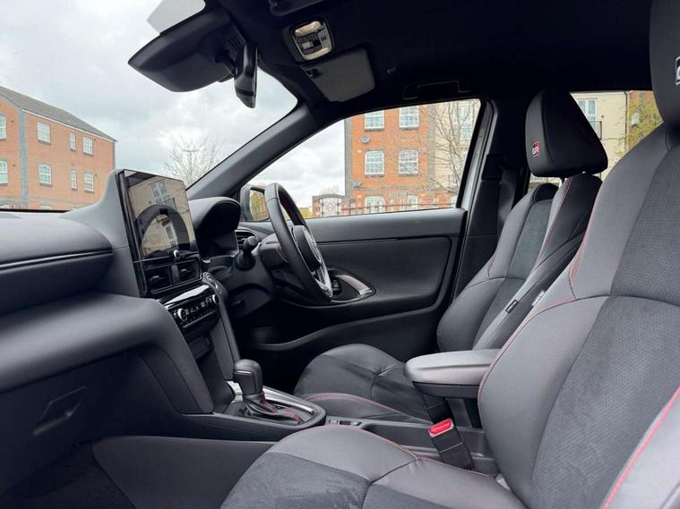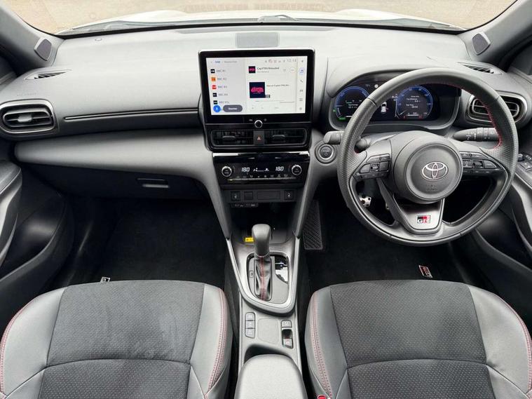 10.5" Multimedia display screen, 10.5" Toyota smart connect+ with navi multimedia system with wireless Smartphone integration incl Apple CarPlay, 12.3" Multi information display screen, Adaptive cruise control, multi info switches on steering wheel, Adjustable speed limiter, Bluetooth connectivity, Color multi-information display, Digital speedometer, Digital tachometer, Drive mode selector, Driver attention alert system, eCall emergency system, Electric power steering, Emergency driving stop system, Full range intelligent adaptive cruise control, Hybrid system indicator, Intersection turn assist, Key reminder warning, Lane trace assist, My T Connected services, Pre-collision system enhanced with emergency steering assist, Reversing camera, Road sign assist - RSA, Static guide lines on reversing camera, Tailgate, Telephone switch on steering wheel, Wireless Mobile Phone Charger, Steering assisted vehicle stability control, 6 speakers, DAB Digital radio, Front USB Type-C connector, Front USB-C device charger, Acoustic windscreen glass, Anti-jam protection on power windows, Auto dimming rear view mirror, Auto high beam [AHB] with on/off switch, Auto intermittent windscreen wipers, Automatic headlights, Automatic headlights cut-off, Black door moulding, Black lower front grille, Black protection moulding on side doors, Black rear bumper with diffuser, Black rear under run, Black roof rails, Black wheel arch mouldings, Body colour door handles, Body colour front bumper, Electric adjustable heated door mirrors, Follow me home headlights, Front and rear electric windows with auto up/down function, Gloss black upper front grille, GR Sport meshed lower front grille, GR Sport meshed upper front grille, GR sport scuff plates, Headlight cut off reminder, Indicators integrated on door mirrors, Intermittent rear wiper, LED 3rd brake light, LED daytime running lights guide, LED front fog lights, LED front light guide, LED Indicators, LED projector headlights, LED rear lights with sequential indicators, Manual headlight levelling, Noise reduction layer on windscreen, Pre wiring for towing hook, Privacy glass, Rain sensor, Rear roof spoiler, Rear side wing doors, Rear window defogger, Shark fin antenna, 12v power outlet - front, 12V power point in boot, 2x Rear coat hooks, 3 seat bench in 2nd row, 3 Spoke GR Sport leather steering wheel, 40/60 split deckboard, 40:20:40 split folding rear bench seat, Adjustable rear headrests, Adjustable speed limiter switch on steering wheel, Black roof lining, Boot light, Driver and front passenger personal lights, Driver and front passenger Whiplash injury Lesseing seats, Driver and passenger seatback pockets, Dual zone automatic air conditioning, Fabric door trim, Front console box, Front cup holders, Front door pockets, Front head restraints, Front sport seats, Front/rear assist grips, Gear shift indicator, GR sport floor mats, Heated driver and passenger seats, Height adjustable driver's seat, Height adjustable front passenger seat, Hooks for luggage holding belts, ISOFIX child restraint system, Lane departure alert switch on steering control, Leather gearshift, LED centre room light, Light on driver and passenger sun visor, Manual telescopic and tilting steering wheel, Mirror on driver and passenger sun visor, Nanoe-X air purifier, Pollen air filter, Power adjustable lumbar support on driver seat, Rear cup holders, Rear door pockets, Rear head restraints, Remote air-conditioning system, Single compartment glovebox, Single front passenger seat, Soft tonneau cover, Storage box under boot floor, Ultra suede cloth upholstery, Voice recognition switch on steering wheel, White ambient lighting in centre console, White ambient lighting in footwell, White ambient lighting on front doors, 3x3 point rear seat belts, ABS+EBD+Brake assist, Driver and passenger central airbags, Driver and passenger front airbags, Driver and passenger side airbags, Electronic parking brake, Emergency brake light system (EBS), Front seat belt reminder, Hill start assist control (HAC), Passenger airbag on/off switch, Pre-collision system with pedestrian and cyclist detection, Rear door child safety locks, Rear passenger side airbags, Rear seat belt reminder, Traction control, Tyre pressure warning system, Immobiliser, Intrusion alarm, Keyless smart entry with push button start, Power door locks, Power passenger window lock, Remote door lock, Tyre repair kit,