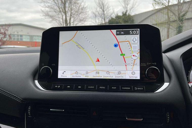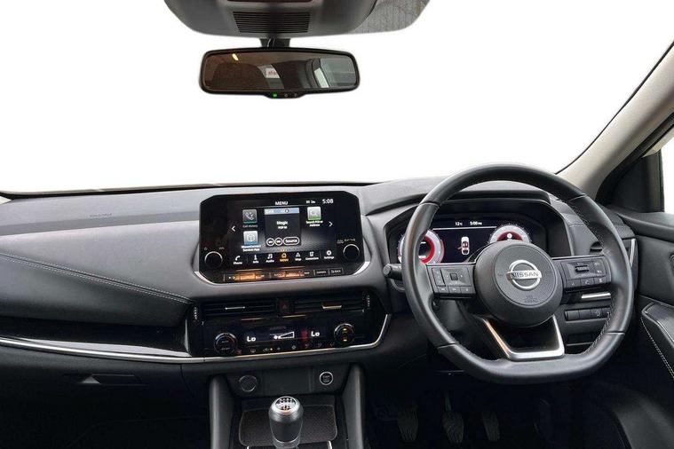 Blind spot warning, Drive modes (sport, normal, eco), Electric speed sensitive power steering, Emergency and breakdown call, Front and rear parking sensors, Full Digital 12.3" TFT Digital Combimeter, Google maps services - search, weather, 3D maps and Google street view, Idle stop/start system, Intelligent around view monitor, Intelligent Cruise control (ICC), Intelligent driver alert system, Intelligent forward collision warning, Intelligent lane intervention, Lane departure prevention, Lane departure warning system, Maximum speed limiter, Moving object detection, Nissan connect 12.3 inch touchscreen infotainment system, Nissan connect navigation, Push button starter, Rear cross traffic alert, Remote control services - door locks, lights, horn and car locator, Telematics - notifications and connectivity services, TomTom live traffic services, Traffic sign recognition with legal speed adjustment, Trip computer, Virtual personal assistant and firmware over the air capability, Wireless Apple CarPlay and wired Android Auto, 6 speakers, AM/FM audio system with DAB, Bluetooth audio streaming, Front USB connections (Type-A and Type-C), Rear USB charging only ports (Type-A and Type-C), Auto dimming rear view mirror, Auto rear wiper when reversing, Automatic hazard signal with emergency stop signal, Body colour mirror caps, Body coloured door handles, Bodyside mouldings, Chrome side window finisher, Door handle with button, Dusk sensor, Electric auto folding door mirrors, Electrically adjustable and heated door mirrors with LED turn indicator, Follow me home headlights, High beam assist, Intelligent auto headlights, LED daytime running lights, LED Headlights, LED rear lights, One touch front and rear electric windows with remote opening and closing, Partially body coloured bumpers, Privacy glass, Rain sensor, Rear bumper with graphite insert, Rear reversing light (bulb lighting), Rear roof spoiler, Rear side wing doors, Rear styling plate, Shark fin antenna, Splash free rain sensing wipers, Super UV and infrared cut glass, Three blink turn signal, 12v power socket in dashboard and luggage, 2 way electrical driver lumbar adjustment, 2x Rear coat hooks, 3 bench rear seats in 2nd row, 3 rear headrests, 4 folding assist grip, 6 Luggage hooks - 4 on floor, 2 on side, 6-way manually adjustable driver's seat, 60/40 split folding rear seat bench, Ambient lighting around centre console, Centre console storage tray, Chrome interior door handles, Cloth monoform upholstery, Driver and front passenger sunvisors with illuminated vanity mirrors, Driver seat back pocket, Dual zone automatic climate control with pollen filter, Front and rear door storage, Front cupholders x 2, Front door with bottle holders, Glovebox with light, Hard trunk cover, Height adjustable front headrests, Leather shift knob, Leather steering wheel, Luggage board system, Luggage space lighting, Manually adjustable passenger (slide recline + lifter), Multifunction steering wheel, Passenger seat back pocket, PVC front centre console and armrest, Rear armrest with 2 cupholders, Rear door bottle holders, Single front passenger seat, Soft PVC kneepad, Steering wheel switches, Sunglasses holder, Tilt/telescopic adjustable steering wheel, Two rear isofix child seat anchorage points with top tether, Welcome light and console tray ambient lighting, 3x3 point rear seatbelt pretensioners + load limiters, ABS, ESP, EBD and brake assist, Active brake limited slip, Auto hold function, Child locks on rear doors, Curtain and front side, far side airbags, Driver and passenger airbags, Driver, passenger and 2nd row rear seat belt reminder, Electronic parking brake, Front seatbelt pretensioners + load limiters, Height adjustable front seatbelts, Hill start assist, Intelligent blind spot intervention, Intelligent front emergency braking with pedestrian, cyclist recognition and junction assist, Intelligent rear automatic braking, Tyre pressure monitoring system, Vehicle dynamic control, Capless fuel filler, Engine immobiliser, Nissan i-key, Remote central door locking with deadlocking, Thatcham Cat.1 alarm, Interior instrumental panel B finisher, 18" Diamond cut alloy wheels, Tyre puncture repair kit,