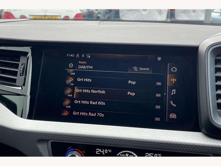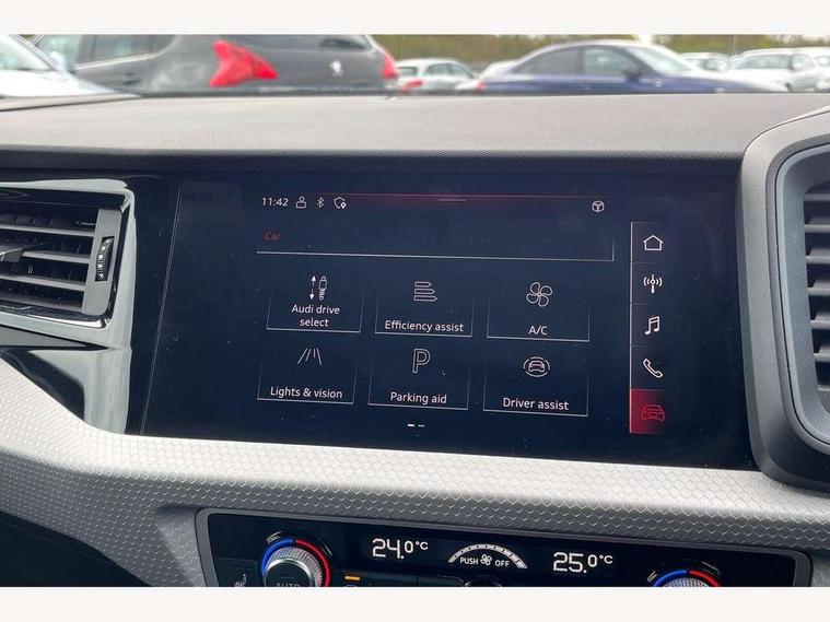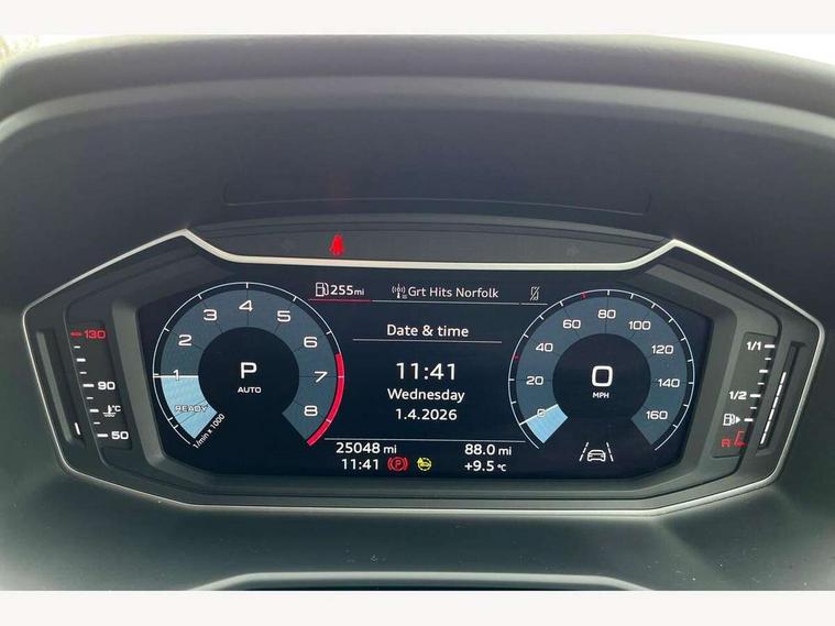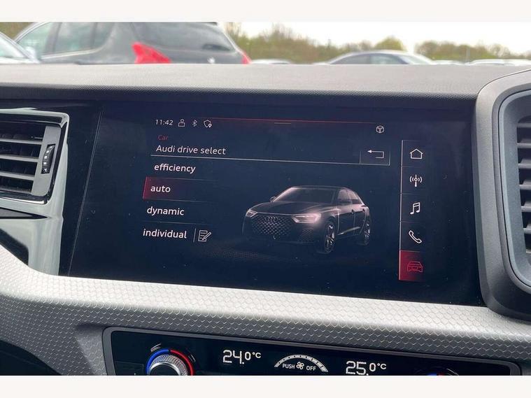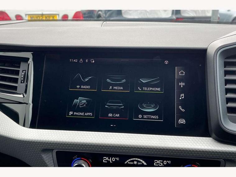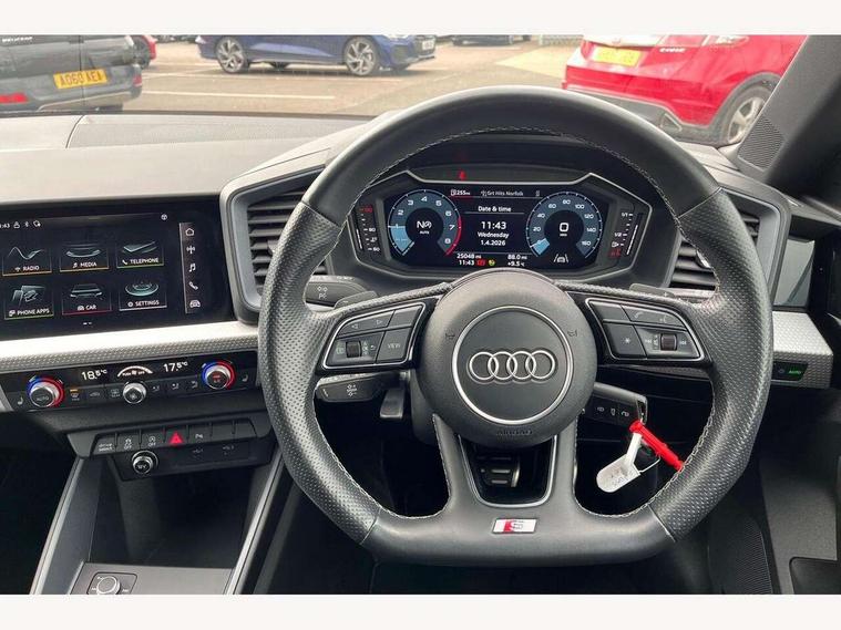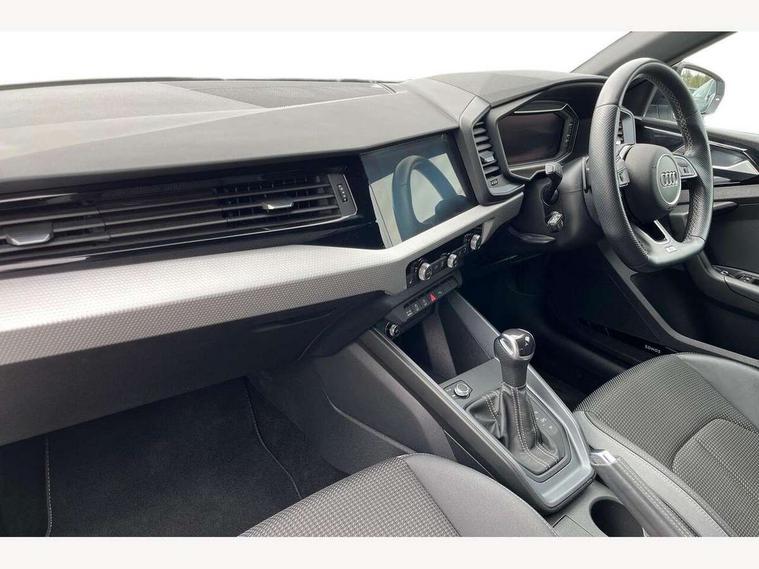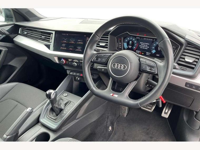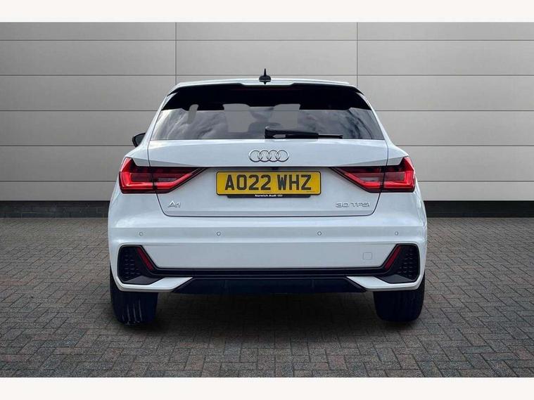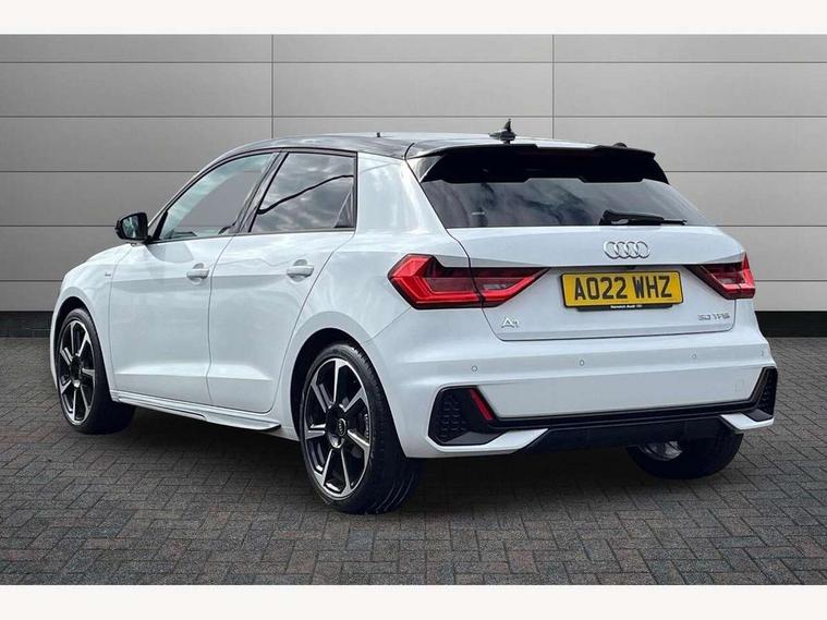 10.25" Digital instrument cluster display classis style instrument dials + speed, odometer, time, outside temperature, telephone menu + fuel level warning, Audi connect safety emergency and service including E-call, Audi drive select - power steering assistance + engine + gear shift 3 preset modes (auto, dynamic, efficiency and an Individual mode), Audi smartphone interface with connect compatible smartphone via USB directly MMI display + Nav, music, third party apps controlled via MMI controller, Automatic start/stop system, Bluetooth interface, Cruise control, Driver's information system, Electromechanical power steering, Emergency services call system, Lane departure warning system, Service interval indicator, Speed limiter, Voice control system, Washer fluid level indicator, Sports suspension, 1 x SDXC card reader, 2 x USB type C connection points, DAB Digital radio, MMI radio plus with 8.8" colour MMI display screen and MMI touch, Auto dimming rear view mirror, Black door mirrors, Black side skirts, Body coloured bumpers, Contrast roof - Mythos black, Door sill trims with aluminium inlays and logo, Electric front and rear windows, Electrically adjustable, heated, folding door mirrors with integrated LED side indicator, Front side air inlets in grained matt black and C frame in titanium black, Front wing badges, Heat insulating glass windscreen and side windows, Heated rear windscreen, High level LED brake light, LED headlights with LED rear lights + dynamic rear indicators + headlight adjustment and high beam, turning light + LED daytime running lights, Radiator protective grille frame in matt aluminium silver, Rain and light sensors, Rear diffuser strip in matt titanium black, Rear fog lights, Rear side wing doors, Rear wing door, Rear wiper, Side front spoiler lips in grained matt black, 12V socket in centre console with two cup holders, 3 rear seats with headrests, 3 seat bench in 2nd row, 3 spoke flat bottomed multi-function plus leather steering wheel with S badging, grips in preforated leather, contrast stitching and paddle shift, 40:60 Split folding rear seat or folded fully, Black cloth headlining, Driver and passenger seat with manual height adjust with forward and backwards adjustment, Front and rear black floor mats with contrast stitching in fine silver, Front head restraints, Front passenger seat, Height and reach adjustable steering wheel, ISOFIX child seat mounting for front passenger and outer rear seats including top tether attachment point of outer rear seats, Leather gear knob with aluminium trim, Luggage compartment light with front and rear reading lights, Manually adjustable lumbar support in front seats, Stainless steel pedals, Black styling pack - A1 Sportback Black Edition, LED interior lighting pack - A1, Luggage compartment pack - A1, 3x3 point rear seatbelts, Audi pre-sense front with pedestrain and cyclist recognition, Brake assist function, Driver and front passenger airbag with front side and head airbags, Electronic Stability Control including ABS, EBD, ASR and EDL, Front passenger airbag deactivation switch, Hill hold assist, Manual rear child locks, Seatbelt height adjustment for front seats, Seatbelt monitoring, Tyre pressure warning light, Warning triangle and first aid kit, Anti theft alarm, Anti theft wheel bolts and loose wheel warning, Immobiliser, Remote central locking with 2 foldaway keys, Aluminium trim for control switches, air vents and digital instrument cluster, Silver grey inlays polygon structure in diamond paint finish, Structured grey accent areas including air vents, door handle recesses and centre console in quartz paint finish, 18" 7 spoke rotor design alloy wheels in gloss anthracite black, diamond cut finish,