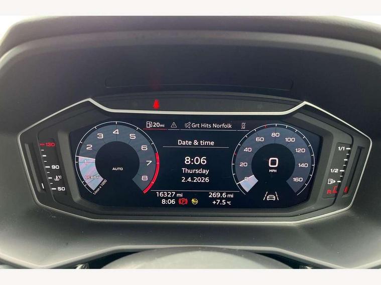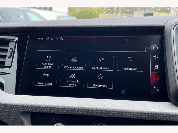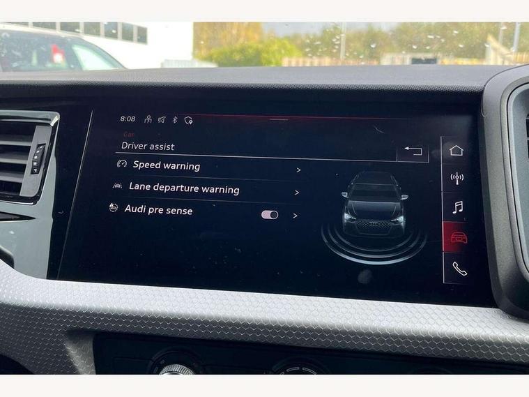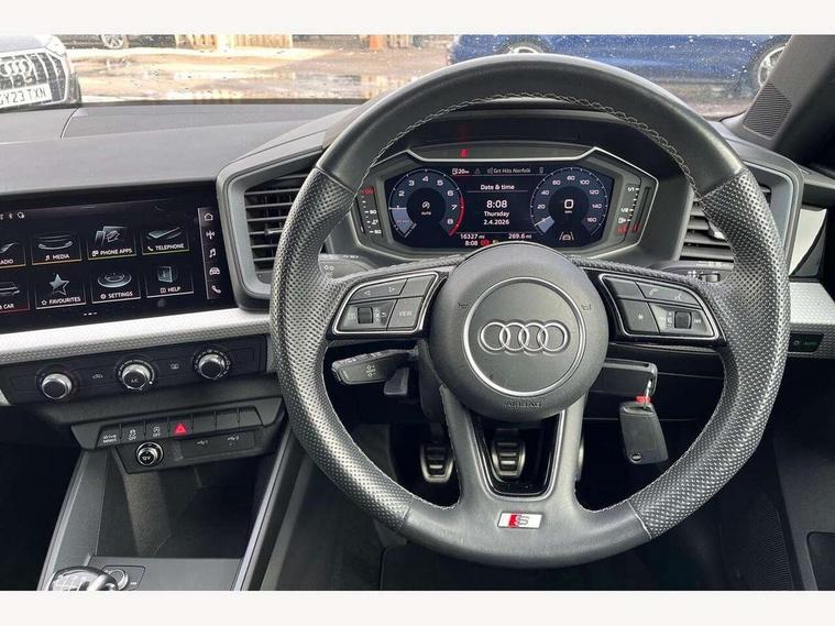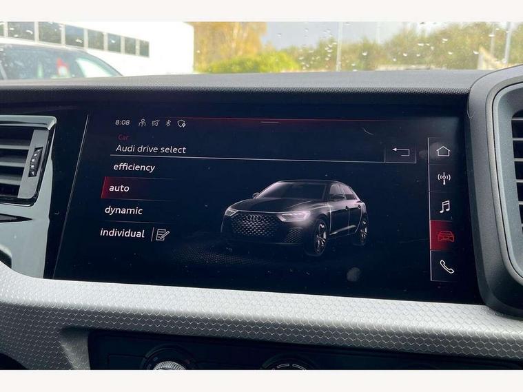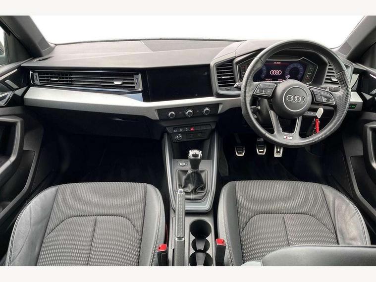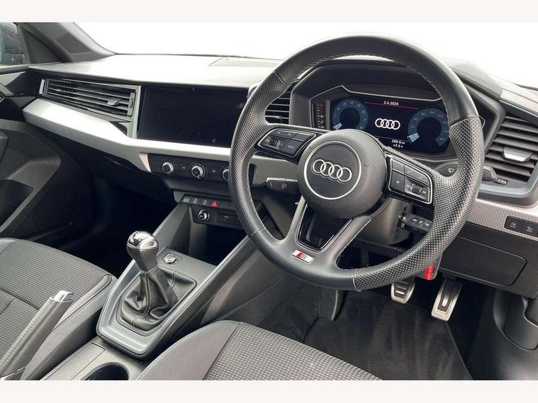 10.25" Digital instrument cluster display classis style instrument dials + speed, odometer, time, outside temperature, telephone menu + fuel level warning, Audi drive select - power steering assistance + engine, Audi smartphone interface with connect compatible smartphone via USB directly MMI display + Nav, music, third party apps controlled via MMI controller, Automatic start/stop system, Bluetooth interface, Cruise control, Driver's information system, Electromechanical power steering, Emergency e-call, Emergency services call system, Lane departure warning system, Service interval indicator, Speed limiter, Voice control system, Washer fluid level indicator, Sports suspension, 1 x SDXC card reader, 2 x USB type C connection points, DAB Digital radio, MMI radio plus with 8.8" colour MMI display screen and MMI touch, Auto dimming rear view mirror, Body coloured door mirrors, Door sills with aluminium inlays and S Line logo, Electric front and rear windows, Electrically adjustable, heated, folding door mirrors with integrated LED side indicator, Front side air inlets in grained matt black and C frame in anthracite black, Heat insulating glass windscreen and side windows, Heated rear windscreen, High level LED brake light, LED headlights with LED rear lights + dynamic rear indicators + headlight adjustment and high beam, turning light + LED daytime running lights, Radiator grille and rear diffuser in matt anthracite black, Radiator protective grille frame in matt aluminium silver, Rain and light sensors, Rear fog lights, Rear side wing doors, Rear wing door, Rear wiper, S line badges on front wings, Side front spoiler lips in grained matt black, 12V socket in centre console with two cup holders, 3 rear seats with headrests, 3 seat bench in 2nd row, 3 spoke leather multi-function plus steering wheel features S badging and grips in perforated leather with contrast stitching, 40:60 Split folding rear seat or folded fully, Black cloth headlining, Driver and passenger seat with manual height adjust with forward and backwards adjustment, Front and rear black floor mats with contrast stitching in fine silver, Front head restraints, Front passenger seat, Height and reach adjustable steering wheel, ISOFIX child seat mounting for front passenger and outer rear seats including top tether attachment point of outer rear seats, Leather gear knob with aluminium trim, Luggage compartment light with front and rear reading lights, Manually adjustable lumbar support in front seats, Stainless steel pedals, LED interior lighting pack - A1, Luggage compartment pack - A1, S line exterior styling pack - A1 Sportback, 3x3 point rear seatbelts, Audi pre-sense front with pedestrain and cyclist recognition, Brake assist function, Driver and front passenger airbag with front side and head airbags, Electronic Stability Control including ABS, EBD, ASR and EDL, Front passenger airbag deactivation switch, Hill hold assist, Manual rear child locks, Seatbelt height adjustment for front seats, Seatbelt monitoring, Tyre pressure warning light, Warning triangle and first aid kit, Anti theft alarm, Anti theft wheel bolts and loose wheel warning, Immobiliser, Remote central locking with 2 foldaway keys, Aluminium trim for control switches, air vents and digital instrument cluster, Silver grey inlays polygon structure in diamond paint finish, Structured grey accent areas including air vents, door handle recesses and centre console in quartz paint finish,