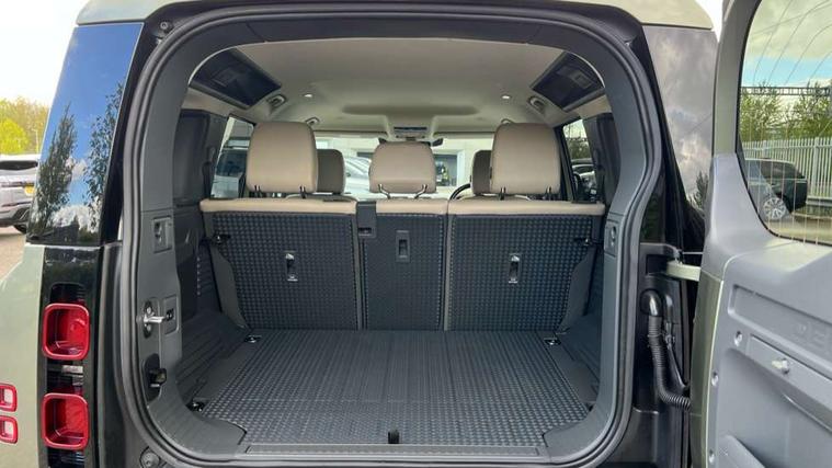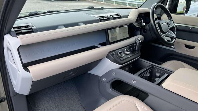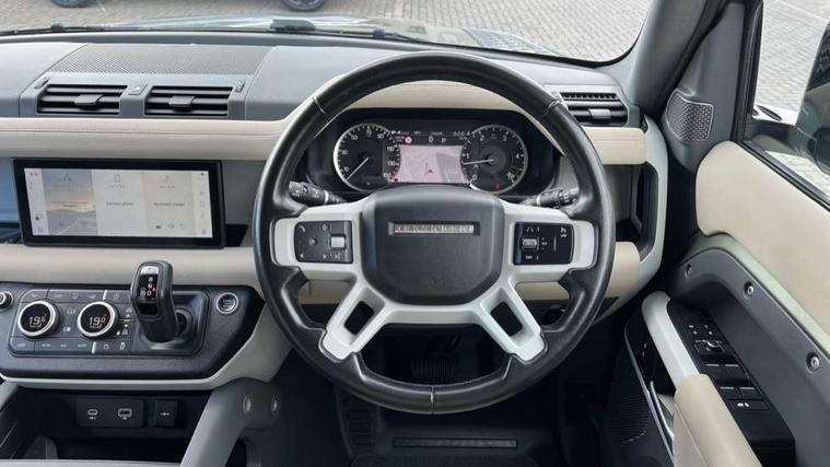 360 degree parking aid, 3D Surround Camera with 360 View, 180 Rear View, Front Traffic Detection, Forward Vehicle Guidance, Tow Hitch Assist and clear sight Ground View, Adaptive cruise control, Android Auto, Apple CarPlay, Assisted tailgate with soft close, Blind spot assist, Bluetooth system, Brake pad wear indicator, Clear exit monitor, Connected navigation pro, Driver condition monitor, Electric power assisted steering (EPAS), Interactive driver display, Lane keep assist, Push button start, Rear traffic monitor, Traffic sign recognition with adaptive speed limiter, Trip computer, Wade Sensing, 8 speed automatic transmission, All wheel drive system, Twin speed transfer box, DAB Radio (Digital Audio Broadcasting), Pivi pro connected, Automatic headlight levelling, Automatic headlights, Centre high mounted stop light, Electric heated/power fold door mirrors with approach lights and auto dimming driver side, Electric windows with one touch open/close and anti-trap, Follow me home lighting, Heated rear window with timer, Heated windscreen, LED tail lights, Puddle lights, Rain sensing windscreen wipers, Rear fog lights, Rear side wing doors, Rear wiper, Side hinged tailgate, Trailer stability assist, 12V power socket in loadspace, 3 seat bench in 2nd row, Alpine lights, Durable rubber cabin flooring, Durable rubber loadspace flooring, Footwell lights, Front passenger isofix child seat attachment, Loadspace cover, Loadspace Hook, Multifunction steering wheel, Overhead stowage for sunglasses, Premium cabin lighting, Rear headrests, Rear ISOFIX, Rear reading lights, Single front passenger seat, Standard seat configuration, Storage glovebox, Sunvisors with illuminated vanity mirrors, Online pack with data plan - Defender, 5 x 3 point seatbelts, ABS, Brake hold function, Cornering brake control (CBC), Customer configurable autolock, DSC - Dynamic Stability Control, EBD - Electronic brakeforce distribution, Electric parking brake (EPB), Emergency brake assist, Emergency braking, ESP + traction control, Front airbags with passenger seat occupant detector, HDC - Hill descent control, Hill launch assist, Low traction launch, Power operated child locks, Remote for (e-Call, Optimised assistance call, InControl app, Climate, beep and flash and door), RSC - Roll stability control, Seat belt reminder, TPMS (Tyre pressure monitoring system), Alarm, Immobiliser, Intrusion sensor, Keyless entry, Locking wheel nuts,