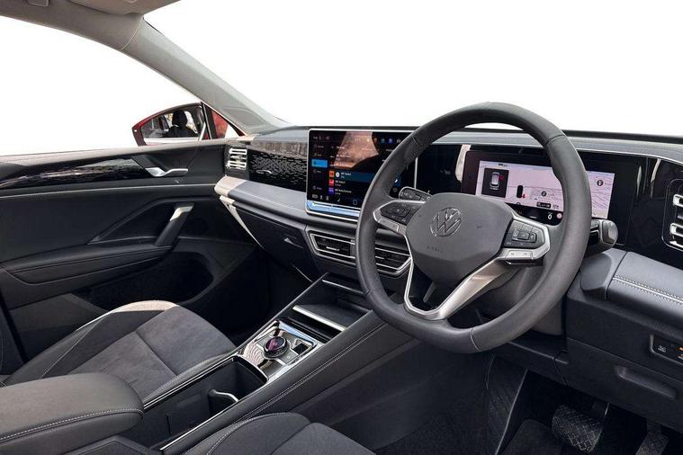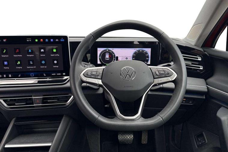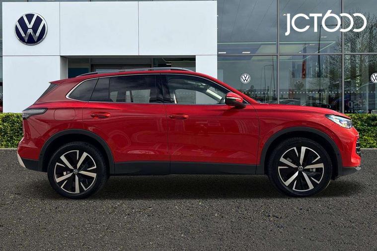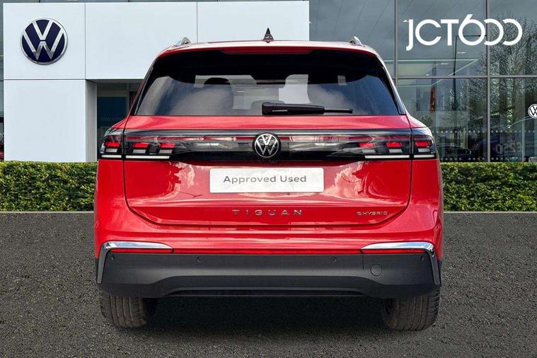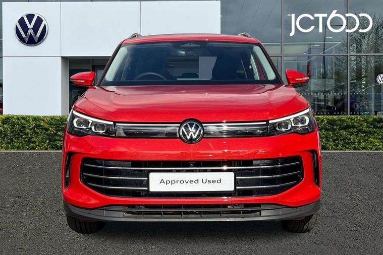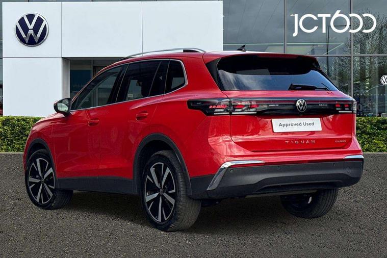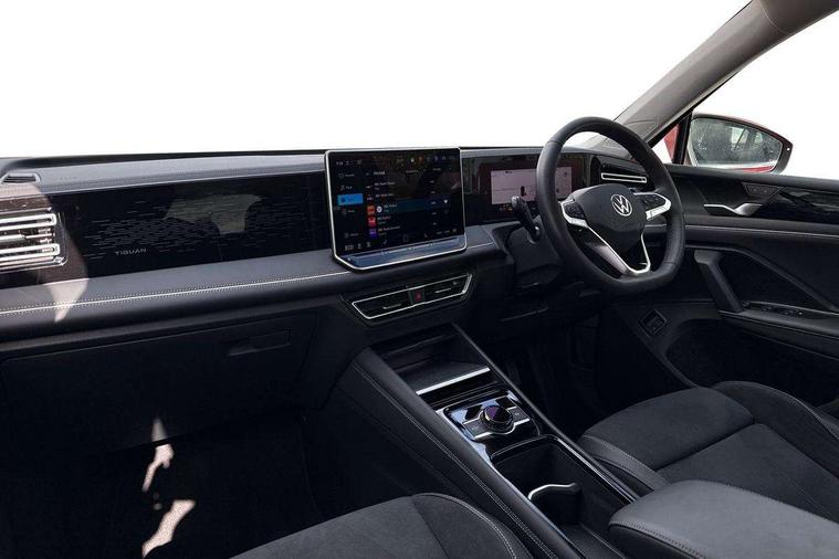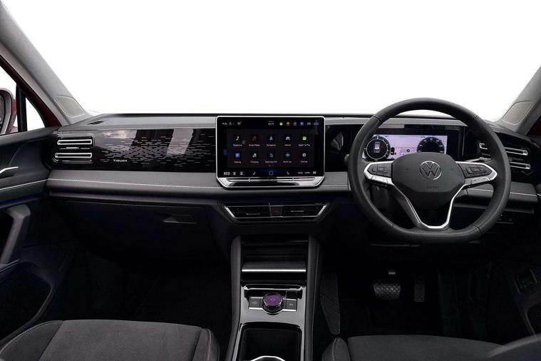 Adaptive cruise control (ACC), Advanced driver attention and drowsiness monitor, Bluetooth mobile phone interface, Car2X technology, Comfort drive travel assist, lane keeping system, lane assist and emergency assist, Digital Cockpit Pro - 10.25" high resolution dash display screen with customisable menus and information, Dynamic road sign display, E-Sim card for online connectivity, eCall emergency call service, Front Assist - Autonomous emergency braking with pedestrian and cyclist monitoring, Lane change system, Side assist, Rear traffic alert and Exit warning system, Multifunction front facing camera, Oncoming vehicle braking when turning including swerve support, Park assist pro with park distance control (Remote park assist), Power assisted steering with speed sensitive, Start/stop system with regenerative braking, Warning signal and warning light for front and rear seatbelts not fastened, Wireless App-Connect, Adaptive chassis control DCC pro includes driving mode selection, Charging cable Mode 3 Type 2 / 3 (16A), Front shock absorption, Front wheel drive, Rear shock absorption, Digital radio reception (DAB), Diversity antenna for FM reception, Air intake with Chrome trim, Ambient lighting with logo projection, Auto dimming interior rear view mirror, Automatic headlight control system, Body colored bumpers in R-Line style, Body coloured door handles, Body-coloured exterior mirror housings, Chrome moldings on the side windows, Coming/leaving home lighting function, Heat insulating glass in side and rear windows, Heated rear window, Heated windscreen washer jets, High level 3rd brake light, Illuminated door handle recesses, Illuminated lightline between headlamps, Laminated safety glass from B-pillar backwards 90% tinted, Laminated safety glass windshield, LED Day time running light, Rain sensor windscreen wipers, Rear fog light on one side, reversing light on both sides, Rear side wing doors, Rear wiper, Silver roof rails, 12V outlet in center console rear and in luggage compartment, 12V socket in centre console, 3 bench rear seats in 2nd row, Air care climatronic 3 zone air conditioning system with rear air conditioning control panel, Carpet mats, front and rear, Centre console with illuminated storage compartment with sliding cover and two drinks holders, Ceramique headlining, Chrome elements on the mirror switch and power window switches and door pulls, Door and side trim panel with leatherette insert, Door sill protectors, Front centre armrest, Interior ambient lighting with 30 colour options, ISOFIX anchors for child seats on outer rear seats and front passenger seat compatible with i-Size, Mechanical rear seat release, Power adjustable lumbar support in front, Rear bench seat, split folding, longitudinally movable and folding with load-through hatch and centre armrest, Safety optimised front head restraints, Single front passenger seat, Sports comfort seats in front, Sun visors with illuminated vanity mirrors, Three rear head restraints, Variable luggage compartment floor, Comfort package with park assist plus and Safelock - Tiguan, Driver assistance package - Tiguan, 3 point seat belt for centre rear seats, 3 Point seat belts in front with pretensioners, 3 point seatbelts in outer rear with ECE label, Driver and front passenger airbag with front passenger airbag deactivation, Electronic parking brake with auto hold, Front and rear curtain airbags, Front and rear side airbags, Front centre airbag, Front disc brakes, Hill start assist, Manual child proof rear door locks, Rear disc brakes, Two tone horn, Warning triangle, Decorative inserts Cross in dash and front door panels, Interior door handle in matte chrome, Soul instrument panel, Tyre mobility kit including compressor and sealing foam,