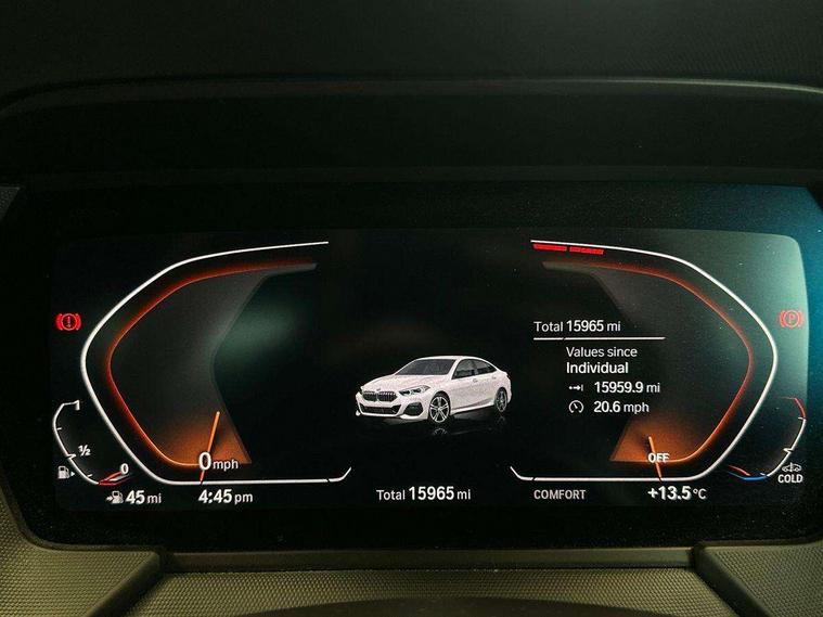 Active guard plus, Attentiveness assist, Auto start-stop, BMW ConnectedDrive online services, BMW Intelligent Personal Assistant, BMW Live Cockpit Professional with 10.25" high resolution instrument and control display, BMW Online services, BMW operating system with 7.0 mid interface, BMW Teleservices, Check Control warning system for monitoring of lights and door/luggage compartment open warning, Cruise control with braking function, iDrive controller with 7 short cut favourite buttons on centre console, Integrated navigation data with map data via USB +features such as 3D landmarks and micro city models, Integrated owners handbook, Intelligent voice assistant, Lane departure warning system, M Sports steering, On board computer - average speed+fuel consumption, service interval, clock/date, odometer/trip meter, outside temperature display and ice warning, Optimum shift indicator, Personal Profile, Pull away assistant, Speed limiting function, Aluminium lightweight construction, Balancer shaft, Double VANOS, Drive performance control with ECO PRO comfort + sport mode, Dual clutch automatic transmission, Electronic differential lock, High precision injection, M Sport suspension with stiffer spring/damper set-up and vehicle lowered by 10mm + twin tube gasfilled shock absorbers and Anti roll bars, Performance Control, Petrol Particulate Filter, VALVETRONIC engine management, 2x USB Type C ports (for charging and data transfer), 4G LTE Connectivity with hard wied 4G network sim card, DAB digital radio, MP3 players and RDS double tuner, Auto wipers, Automatically dimming rear view mirror, Body colour door handles, Body colour mirror caps, Chrome 'M' logo side designation, Chrome exhaust single tailpipe, round, Direction indicator side lights integrated exterior mirrors, Electric windows - front and rear, with open/close fingertip control and trap release, Exterior mirrors - electrically folding with anti-dazzle, Fading support, Follow me home headlights, Front and rear bumper system with replaceable deformation elements, Front door sill finishers in black plastic with M designation in metallic look, Heated, electrically adjustable exterior mirror aspheric on driver side, convex on passenger side, High gloss black B pillar finish, High gloss shadow line exterior trim, High level third brake light, LED daytime running lights, LED front fog lights, Lightweight engineering, Model designation on right side of tailgate, Preparation for high beam assistant, Rain sensor with automatic headlight activation, Rear boot, Rear fog lights, Rear side wing doors, Reversing light in rear light cluster, Welcome lighting, 12V power socket in centre console, 2 cupholders in front centre console, 3 rear seat head restraints, 3 rear seats, 3 spoke M sports design leather steering wheel finished in nappa leather with specific M badge, Anthracite finished floor mats with contrasting surround, Anthracite headlining, Automatic two zone climate control air conditioning, Child seat ISOFIX attachment for two outer rear seats and front passenger seat with anchorage points, Conditioned based service, Driver and front passenger seat heating, Front and rear door pockets including bottle trays, Front and rear side armrests integrated into door trim, Front armrest foldable with integrated storage compartment, Front centre interior light over interior mirror and rear centre automatic interior light when door is opened/ignition switched off or via remote key, Front head restraints, Front passenger seat, Front sports seats with electric side bolster adjustment, Glove compartment, Luggage compartment lighting, Manually adjustment steering wheel column, Multi-function controls for steering wheel, Sun visors with vanity mirrors and insert tab, Through loading system with 40/20/40 split folding rear seat, Two lashing eyes, Additional interior lighting pack - 2 Series Gran Coupe, Connected pack professional - 2 Series Gran Coupe, Extended storage pack - 2 Series Gran Coupe, M Sport exterior styling aerodynamics pack - 2 Series Gran Coupe, 2 tone horn, Airbag - Front driver and passenger, front and rear head, front side, curtain head protection, manual deactivation of front passenger airbag possible, Anti lock braking system (ABS) with cornering brake control, BMW emergency call, Brake drying, Braking readiness, City braking function, Crash sensor activating of airbags, Unlocking doors, hazard warning lights, interior light, safety battery terminal, Dynamic stability control + (DSC+), Dynamic Traction Control - DTC, Electrically operated hand brake, Rear brake discs, Rear child proof door locks, Seat belt security check for driver and front passenger, Seatbelt warning, Side impact protection, Three point seat belts on all seats including front belt stopper, pyrotechnic belt tensioners and belt force limiters, Trailer stability control, Tyre pressure monitoring system, Ventilated front disc brakes, Warning triangle and first aid kit, Central locking switch for all doors, fuel filler cap and luggage compartment, Deadlocking function system to all doors, Drive away locking system on all doors and luggage compartment, Locking wheel bolts, Start/Stop button (illuminated) in centre console with keyless engine start and Auto Start-Stop deactivation button, Thatcham Cat.1 alarm and immobiliser, Two remote control key with integrated key - open/close doors/fuel flap/tailgate +1 button for unlock compartment with M design high gloss black inlay, Contrast stitching on instrument panel, 18" Burnished M double spoke bi-colour alloy wheels finished in orbit grey - style 819M, Reduced rolling resistance tyres,