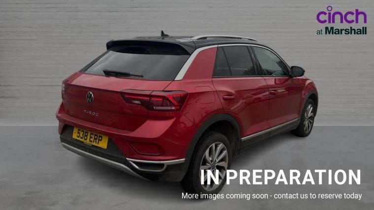 10.25" Digital cockpit pro, Bluetooth mobile phone interface, Driver alert system with fatigue detection, Driver tips and journey analysis, Emergency call service, Lane keeping system Lane Assist, Modified key software - reduce switch off time for key status change to Long no motion, Online services, Park assist including front and rear parking sensors, Service interval indicator, Tailgate/trunk lid release from outside, Think blue trainer driver tips and journey analysis, Warning sound and light for front seatbelts unfastened, Wireless app connect, Battery regeneration during braking, Start/stop function with battery regeneration, Diversity antenna for FM reception, Music playback - MP3, WMA and AAC files, Premium USB cable in choice of either Apple or Android smartphone compatibility, SD card slot, Simultaneous pairing of 2 compatible mobile devices, Title and cover art display, We Connect and We Connect Plus functionality, 3rd brake light, Auto dimming interior rear view mirror, Automatic hazard lights activation under emergency braking, Automatic headlight control with LED separate daytime running lights with coming/leaving home function, Body colour sports bumpers with silver metallic underbody fascia, Dynamic headlight range control with self adjusting whilst driving, Extended roof spoiler, Exterior mirrors aspherical on driver side, convex on front passenger side, External USB type C socket and charging sockets, Front windscreen wiper with intermittent wipe and 4 position delay, Heated rear window, LED rear combination lamps, LED rear number plate lights, LED tail lamp rear comination lamps, Light mode for poor weather, rain, fog or snow, Power windows with comfort operation and circuit breaker, Rain sensor, Rear exhaust tailpipe, Rear fog light on one side and reversing lights on both sides, Rear side wing doors, Rear wash/wipe with intermittent wipe setting, Remote electrically foldable door mirrors, puddle lights and reverse activated passenger's door mirror, 12V power socket in centre console, 3 rear head restraints, 3 seat bench in 2nd row, 4 load lashing points in luggage compartment, Air care climatronic air conditoning system with active combination filter and 2-zone temperature control, Chrome plated radiator grille inserts, air vent surrounds and light switch surrounds, Door and side trim panel with leatherette insert, Drawer under drivers seat, Front + rear carpet mats, Front centre armrest, Front comfort sports seats, Front cupholders x 2, Front footwell illumination, Instrument lighting, white adjustable panel illumination, Interior ambient lighting and surround lighting, Interior light delay, Isofix child seat preparation, Leather gearshift handle, LED interior light with switch off delay/dimmer and 2 front/rear LED reading lights, Load-through provision with cup holder when folded down ('Unsplit rear seat bench, split folding backrest, with centre armrest), Luggage compartment lighting, Non-folding front passenger seat backrest, Single front passenger seat, Storage compartment in left and right luggage area, Storage compartment in rear doors, Storage compartments in driver and front passenger doors, Sunvisors with illuminated vanity mirrors, Variable boot floor, height adjustable and removable, Driver assistance pack without proactive passenger protection - T-Roc, 3 point height adj front seatbelts + pretensioners, 3 point seatbelts in outer rear with ECE label, ABS, Child locks on rear doors, Driver and front passenger airbag with front passenger airbag deactivation, Driver and front passenger safety-optimised head restraints, Drivers seatbelt reminder, Electronic parking brake, Electronic Stability Control (ESC) inc EDL (Electronic Differential Lock) and ASR (Traction Control), Front and rear passengers curtain airbag system including front side airbags, Front assist with city emergency braking and pedestrian monitoring, Front seat side impact airbags, Predictive pedestrian protection, Rear disc brakes, Single tone horn, Tyre pressure loss indicator, Volkswagen roadside assistance, Anti-theft alarm system with interior monitoring, backup horn, and towing protection, Remote central locking with SAFELOCK, radio remote control with 2 remote control folding keys, Trims for alloy wheels,