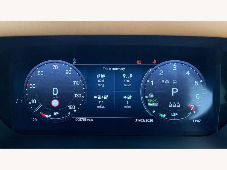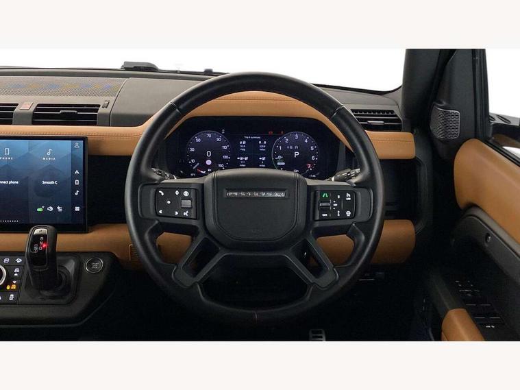 11.4" touchscreen, 360 degree parking aid, 3D Surround Camera with 360 View, 180 Rear View, Front Traffic Detection, Forward Vehicle Guidance, Tow Hitch Assist and clear sight Ground View, Adaptive cruise control, Android Auto, Apple CarPlay, Assisted tailgate with soft close, Blind spot assist, Bluetooth system, Brake pad wear indicator, Clear exit monitor, Connected navigation pro, Driver condition monitor, Electric power assisted steering (EPAS), Interactive driver display, Lane keep assist, Push button start, Rear collision monitor, Rear traffic monitor, Traffic sign recognition with adaptive speed limiter, Trip computer, Wade Sensing, 7 kW onboard charger, 8 speed automatic transmission, AC/DC charging, Adaptive dynamics, All wheel drive system, Electronic air suspension, Home charging cable mode 2 basic, Public charging cable, Twin speed transfer box, DAB Radio (Digital Audio Broadcasting), Meridian 400w sound audio system with 11 speakers and subwoofer, Pivi pro connected, Automatic headlight levelling, Automatic headlights, Black exposed rear recovery eyes, Centre high mounted stop light, ClearSight interior rear view mirror, Electric heated/power fold door mirrors with approach lights and auto dimming driver side, Electric windows with one touch open/close and anti-trap, Follow me home lighting, Front fog lights, Heated rear window with timer, Heated windscreen, LED tail lights, P400e badge, Privacy glass, Puddle lights, Rain sensing windscreen wipers, Rear fog lights, Rear side wing doors, Rear wiper, Side hinged tailgate, Solar attenuating windscreen, Trailer stability assist, X-Dynamic badge, 12V power socket in loadspace, 14 way heated and cooled electric adjustable memory front seats with 4 way manual headrests, 3 seat bench in 2nd row, Alpine lights, Configurable cabin lighting, Durable rubber cabin flooring, Durable rubber loadspace flooring, Electric reach + rake adjustable steering column, Extended leather upgrade, Footwell lights, Front passenger isofix child seat attachment, Heated steering wheel, Loadspace cover, Loadspace Hook, Multifunction steering wheel, Overhead stowage for sunglasses, Premium cabin lighting, Rear headrests, Rear ISOFIX, Rear reading lights, Single front passenger seat, Standard seat configuration, Storage glovebox, Sunvisors with illuminated vanity mirrors, Twin front cupholders with cover, Online pack with data plan - Defender, 5 x 3 point seatbelts, ABS, Brake hold function, Cornering brake control (CBC), Customer configurable autolock, DSC - Dynamic Stability Control, EBD - Electronic brakeforce distribution, Electric parking brake (EPB), Emergency brake assist, Emergency braking, ESP + traction control, Front airbags with passenger seat occupant detector, HDC - Hill descent control, Hill launch assist, Low traction launch, Power operated child locks, Remote for (e-Call, Optimised assistance call, InControl app, Climate, beep and flash and door), RSC - Roll stability control, Seat belt reminder, TPMS (Tyre pressure monitoring system), Alarm, Immobiliser, Intrusion sensor, Keyless entry, Locking wheel nuts,