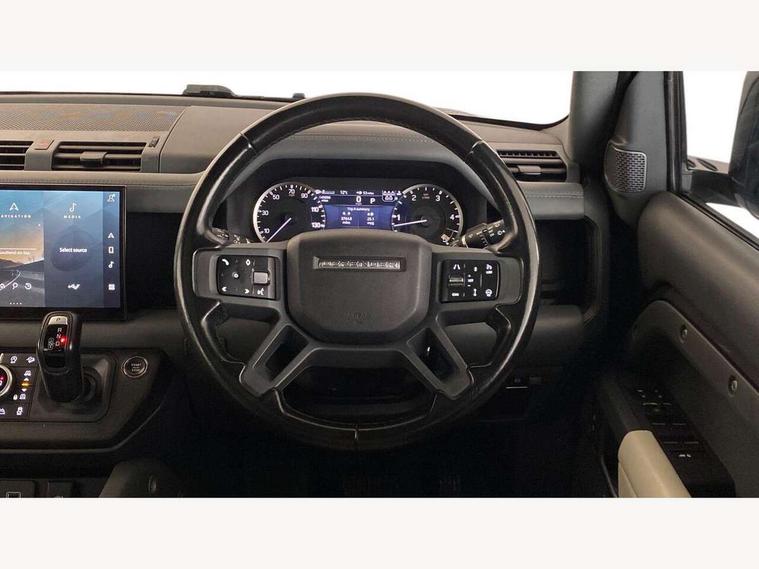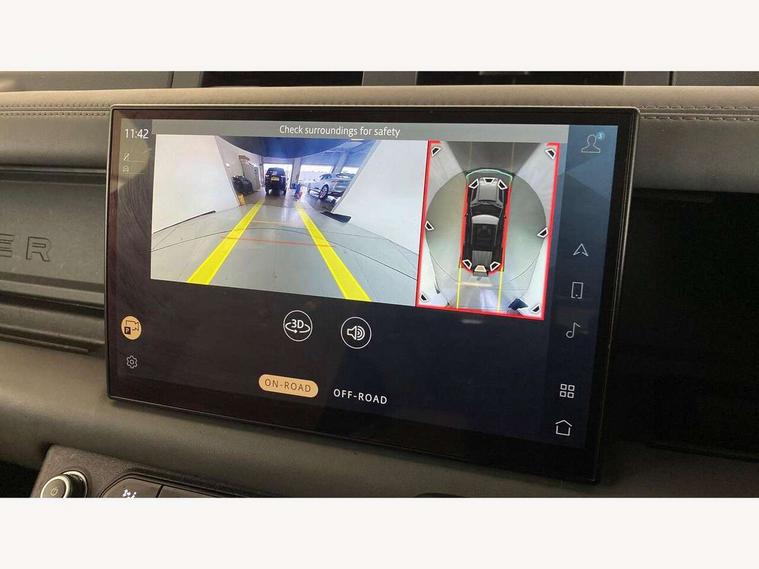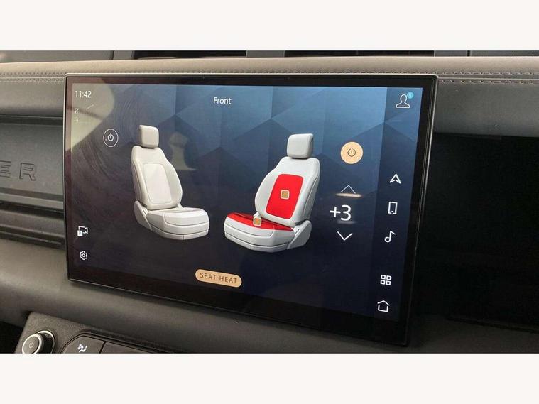 11.4" touchscreen, 360 degree parking aid, 3D Surround Camera with 360 View, 180 Rear View, Front Traffic Detection, Forward Vehicle Guidance, Tow Hitch Assist and clear sight Ground View, Adaptive cruise control, Android Auto, Apple CarPlay, Assisted tailgate with soft close, Blind spot assist, Bluetooth system, Brake pad wear indicator, Clear exit monitor, Connected navigation pro, Driver condition monitor, Electric power assisted steering (EPAS), Lane keep assist, Push button start, Rear collision monitor, Rear traffic monitor, Traffic sign recognition with adaptive speed limiter, Trip computer, Wade Sensing, 8 speed automatic transmission, All wheel drive system, Twin speed transfer box, DAB Radio (Digital Audio Broadcasting), Meridian 700w surround sound audio system with 15 speakers, Pivi pro connected, Automatic headlight levelling, Automatic headlights, Centre high mounted stop light, ClearSight interior rear view mirror, Electric heated/power fold door mirrors with approach lights and auto dimming driver side, Electric windows with one touch open/close and anti-trap, Follow me home lighting, Front fog lights, Heated rear window with timer, Heated windscreen, LED tail lights, Privacy glass, Puddle lights, Rain sensing windscreen wipers, Rear fog lights, Rear side wing doors, Rear wiper, Side hinged tailgate, Trailer stability assist, X-Dynamic badge, 12V power socket in loadspace, 14 way heated and cooled electric adjustable memory front seats with 4 way manual headrests, 2 seat bench in 3rd row, 3 seat bench in 2nd row, Air quality sensor, Alpine lights, Cabin Air Purification plus, Durable rubber cabin flooring, Durable rubber loadspace flooring, Electric reach + rake adjustable steering column, Extended leather upgrade, Footwell lights, Front passenger isofix child seat attachment, Heated steering wheel, Loadspace cover, Loadspace Hook, Multifunction steering wheel, Overhead stowage for sunglasses, Premium cabin lighting, Rear headrests, Rear ISOFIX, Rear reading lights, Single front passenger seat, Storage glovebox, Sunvisors with illuminated vanity mirrors, Twin front cupholders with cover, Online pack with data plan - Defender, 7 three point seatbelts, ABS, Brake hold function, Cornering brake control (CBC), Customer configurable autolock, DSC - Dynamic Stability Control, EBD - Electronic brakeforce distribution, Electric parking brake (EPB), Emergency brake assist, Emergency braking, ESP + traction control, Front airbags with passenger seat occupant detector, HDC - Hill descent control, Hill launch assist, Low traction launch, Power operated child locks, Remote for (e-Call, Optimised assistance call, InControl app, Climate, beep and flash and door), RSC - Roll stability control, Seat belt reminder, TPMS (Tyre pressure monitoring system), Alarm, Immobiliser, Intrusion sensor, Keyless entry, Locking wheel nuts,