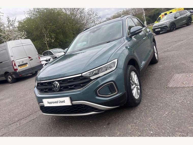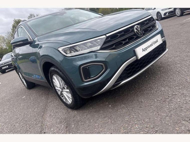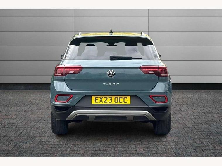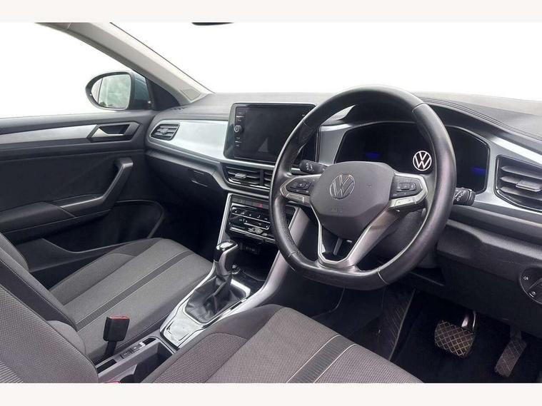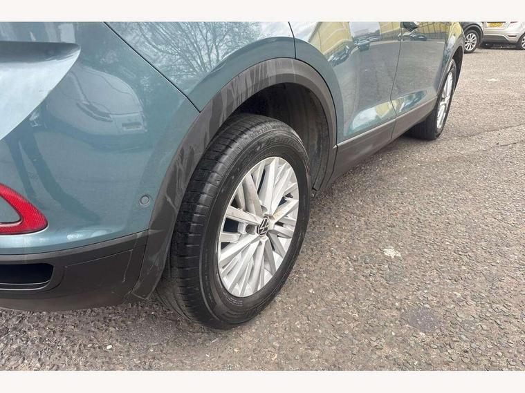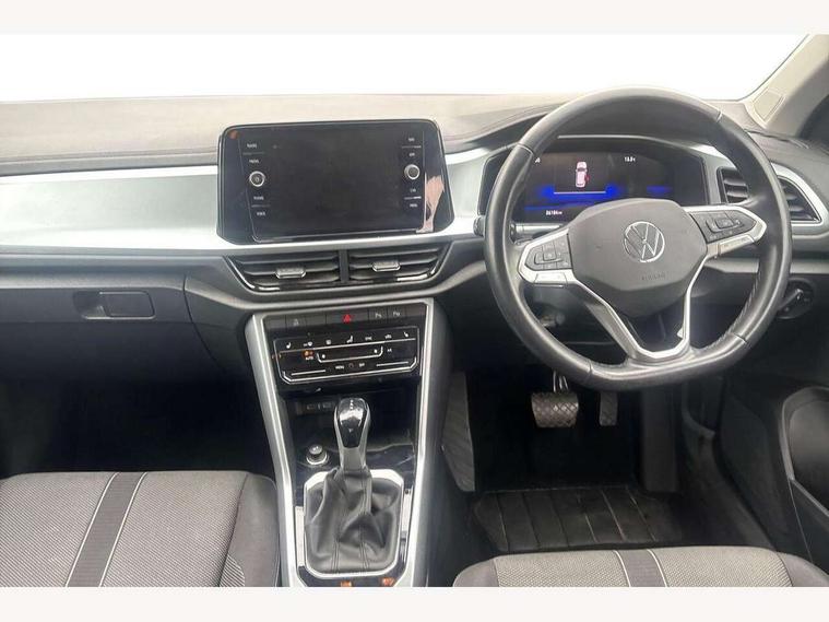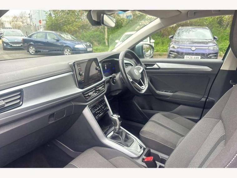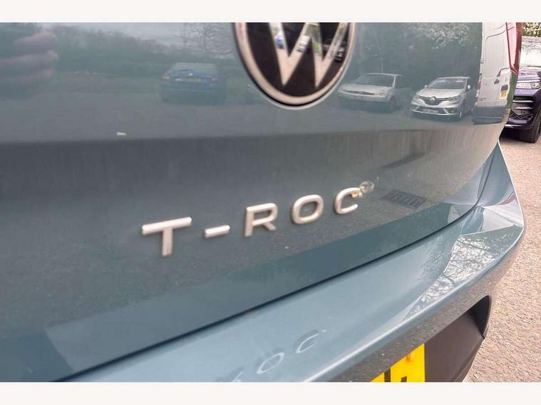 Bluetooth mobile phone interface, Driver alert system with fatigue detection, Driver tips and journey analysis, Emergency call service, Lane keeping system Lane Assist, Modified key software - reduce switch off time for key status change to Long no motion, Online services, Park assist including front and rear parking sensors, Power assisted speed sensitive steering, Service interval indicator, Tailgate/trunk lid release from outside, Think blue trainer driver tips and journey analysis, Warning sound and light for front seatbelts unfastened, Wireless app connect, Battery regeneration during braking, Front shock absorption, Rear shock absorption chassis with increased ride height, Start/stop function with battery regeneration, DAB Digital radio, Diversity antenna for FM reception, Front and rear 6 speakers, Music playback - MP3, WMA and AAC files, Premium USB cable in choice of either Apple or Android smartphone compatibility, SD card slot, Simultaneous pairing of 2 compatible mobile devices, Title and cover art display, We Connect and We Connect Plus functionality, 3rd brake light, Auto dimming interior rear view mirror, Automatic hazard lights activation under emergency braking, Automatic headlight control with LED separate daytime running lights with coming/leaving home function, Black roof rails, Body coloured bumpers and radiator grille with chrome trim and front fog lamps with chrome bezel, Body coloured exterior mirror housings and door handles, Extended roof spoiler, Exterior mirrors aspherical on driver side, convex on front passenger side, External USB type C socket and charging sockets, Front windscreen wiper with intermittent wipe and 4 position delay, Heated rear window, LED Headlights, LED rear combination lamps, LED rear number plate lights, LED tail lamp rear comination lamps, Power windows with comfort operation and circuit breaker, Rain sensor, Rear exhaust tailpipe, Rear fog light on one side and reversing lights on both sides, Rear side wing doors, Rear wash/wipe with intermittent wipe setting, Remote electrically foldable door mirrors, puddle lights and reverse activated passenger's door mirror, 12V power socket in centre console, 3 rear head restraints, 3 seat bench in 2nd row, 4 load lashing points in luggage compartment, Air care climatronic air conditoning system with active combination filter and 2-zone temperature control, Ambient lighting with mirror logo projection, Cloth upholstery, Door and side trim panel in cloth, Drawer under drivers seat, Driver/front passenger seat height adjustment, Front centre armrest, Front comfort sports seats, Front cupholders x 2, Front reading light, Instrument lighting, white adjustable panel illumination, Interior light delay, Isofix child seat preparation, Leather gearshift handle, Load-through provision with cup holder when folded down ('Unsplit rear seat bench, split folding backrest, with centre armrest), Luggage compartment lighting, Lumbar support for driver's and front passengers seat, Non-folding front passenger seat backrest, Single front passenger seat, Storage compartment in left and right luggage area, Storage compartment in rear doors, Storage compartments in driver and front passenger doors, Sunvisors with illuminated vanity mirrors, Variable boot floor, height adjustable and removable, Driver assistance pack without proactive passenger protection - T-Roc, 3 point height adj front seatbelts + pretensioners, 3 point seatbelts in outer rear with ECE label, ABS, Child locks on rear doors, Driver and front passenger airbag with front passenger airbag deactivation, Driver and front passenger safety-optimised head restraints, Drivers seatbelt reminder, Electronic parking brake, Electronic Stability Control (ESC) inc EDL (Electronic Differential Lock) and ASR (Traction Control), Front and rear passengers curtain airbag system including front side airbags, Front assist with city emergency braking and pedestrian monitoring, Front disc brakes, Front seat side impact airbags, Hill start assist, Predictive pedestrian protection, Rear disc brakes, Single tone horn, Tyre pressure loss indicator, Volkswagen roadside assistance, Alarm with interior protection, Anti-theft alarm system with interior monitoring, backup horn, and towing protection, Remote central locking with SAFELOCK, radio remote control with 2 remote control folding keys, Pewter matt decorative inserts for intrument panel, centre console and door panels at the front, Trims for alloy wheels,