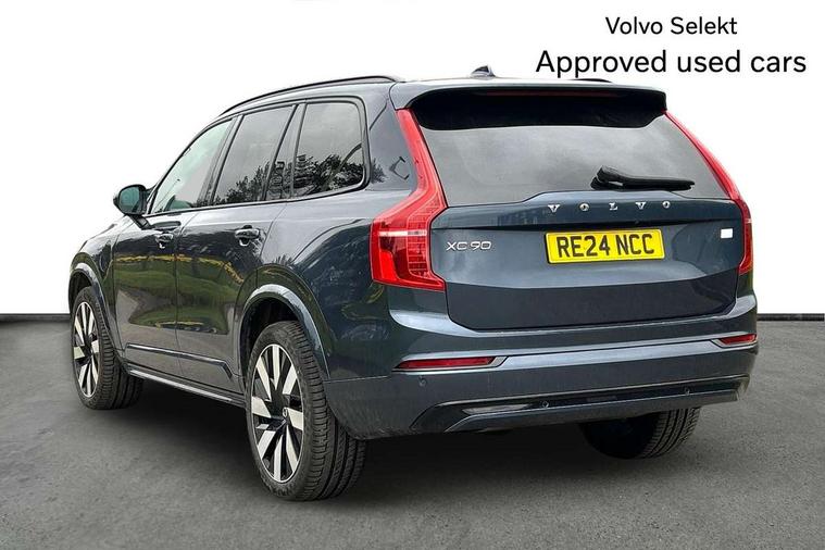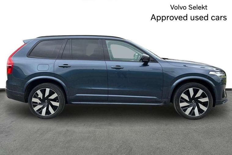 12.3" Progressive Driver Display, 360 degree surround view parking camera with side proximity sensors, 9" centre console portrait touch screen, Adjustable steering wheel force, Bluetooth hands free telephone connection, Drive mode settings, Driver alert control with lane keeping aid, Driver assistance (pilot assist and adaptive cruise control), Driver awareness - Blind spot information system with steer assist, cross traffic alert with autobrake and rear collision warning and mitigation, Emergency call service, Front and rear park assist, Google Automotive Services - Navigation with Voice recoginition and google assistant, Handsfree power tailgate opening and closing, Oncoming Lane Mitigation, Power operated tailgate, Service interval indicator, Speed limiter, Speed sensitive steering, Trip computer, Volvo on call, Wireless Mobile Phone Charger, 3.7 kW monophase on board charger, 6m 3 phase 16amp Type 2 / mode 3 charge cable, 7m 10amp charge cable with 3 pin plug, 8 speed automatic transmission with start/stop + manual change functions, Electric rear axle drive, Lithium-ion battery, On board charger - 6.4 kW 2 phase/3.7kW single phase, Recharging port located in nearside front wing, Touring chassis, DAB Radio (Digital Audio Broadcasting), Low speed exterior sound speaker, Premium Sound by Harman Kardon, dirac unison, dolby pro logic II surround sound, 13 speakers/600W output and fresh air subwoofer, Steering wheel remote infotainment controls, Active bending headlights with adaptive shadow technology, Adaptive brake lights with high level LED brake lights, Auto dimming interior + exterior mirrors, Auto folding and heated power door mirrors, Automatic headlight levelling system, Automatic LED Headlights + Active high beam incorporating daytime running lights, Body colour bumpers, Front and rear power windows, Headlight cleaning system, Heated front windscreen, High gloss black door mirrors and window surround, High gloss black front and rear bumper deco, High gloss black mesh front grille with surround, Home safe and approach lighting, Integrated roof rails in high gloss black, Power glass tilt and slide panoramic sunroof with sun curtain, Puddle lights, Rain sensor with automatic windscreen wiper activation, Rear side wing doors, Rear wash/wipe with intermittent wipe setting, Roof antenna, Roof spoiler, Visible VIN plate, 12V socket front tunnel console, rear passenger compartment and cargo area, 2 seat bench in 3rd row, 2nd Row centre armrest with and cupholders, 3 seat bench in 2nd row, 4 zone electronic climate control with Clean zone air quality system + pollen filter, A-pillar parking ticket holder, Advanced interior air cleaner PM2.5, Air conditioning for 3rd row of seats, Ambient door and instrument panel lighting, B Pillar ventilation, Bright metal luggage threshold, Centre console cupholders and storage, Floor mats, Front and rear door pocket and front cupholder illumination, Front and rear reading lights, Theatre lighting and centre armrest storage illumination, Front footwell and side step illumination, Front headrests, Front seat cushion extensions, Heated front seats, Heated rear seats, Heated steering wheel, Height/reach adjustable steering column, Illuminated front and rear tread plates, Illuminated luggage compartment, Illuminated tailgate, Illuminated vanity mirrors + ticket holder, Illumination lockable glovebox compartment, Integrated sun curtains in rear doors, Isofix outer rear child seat preparation in 2nd row, Load protection net, Luggage compartment divider with grocery bag holder, Outboard armrest with cupholder and storage for third row passengers, Power driver seat with multi directional lumbar support and memory for seat and exterior mirrors, Power folding 2nd row headrests, Power passenger seat with multi directional lumbar support and memory, Rear footwell and side step illumination, Rear headrests, Recharge aluminium tread plates, Semi automatic load cover, Single front passenger seat, Underfloor luggage compartment storage, 7 three point seatbelts, City safety with steering support includes pedestrian, cyclist and large animal detection and front collision warning with full auto brake, Drivers knee airbag, Dual stage driver/passenger airbags, First aid kit, Front seats SIPS airbags, Hill descent control - off drive mode, Hill start assist, IC (Inflatable Curtains) - Full Length, Passenger airbag cut-off switch, Power child locks on rear doors, Power parking brake with auto hold function, Road sign information display, Run off Road Mitigation, Run off Road Protection, Seatbelt reminder and pretensioners for all seats, SIPS (Side Impact Protection System), Slippery road and hazard light alert, Stability and Traction Control with Spin control, Engine Drag Control and Corner Traction Control, Tyre pressure monitoring system, Vehicle deceleration control with Anti-lock Brake System, Electronic Brake Distribution and Emergency Brake Assist, Warning triangle, WHIPS whiplash protection system - front, Anti-theft alarm including immobiliser/volume sensor + level sensor, Care key with user defined top speed, Key integrated remote control central locking + fuel flap with deadlocking system and auto open/close power windows, Keyless drive includes keyless entry and keyless start, Locking wheel nuts, Private locking for glovebox and tailgate, Tailored Instrument Panel and Door Tops with Contrast Stitching, Tyre sealant kit and compressor,