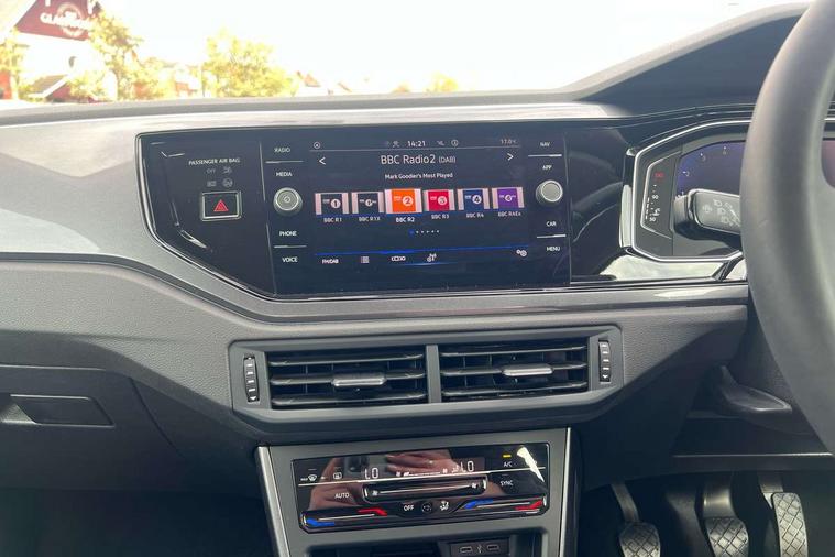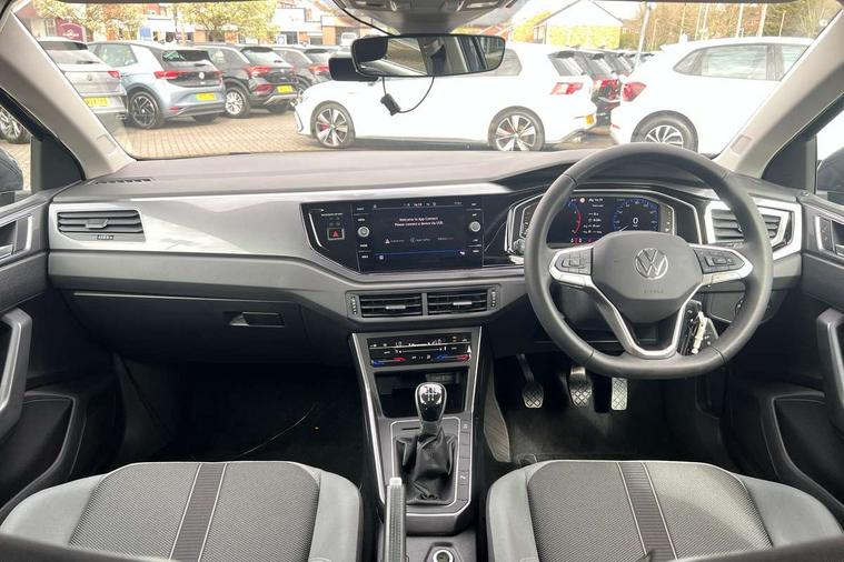 Adaptive cruise control without follow-to-stop and speed limiter, Bluetooth mobile phone interface, Digital Cockpit Pro with 10.25" Display, Driver alert system, Dynamic road sign display, Emergency call service, Power assisted speed sensitive steering, Preparation for We connect and We connect plus, Speedo and rev counter, electronic odometer, trip, service interval display and fuel gauge, Standard rear axle, Travel Assist - Lane keeping system and traffic jam assist, Travel assist including emergency assist, Trip computer, Warning signal and warning light for front and rear seatbelts not fastened, Washer fluid level indicator, Wireless app connect, Front wheel drive, Rear shock absorpion, Start-stop system with battery regeneration (recuperation - energy recovery during braking), DAB Digital radio, Diversity antenna for FM reception, Front and rear 6 speakers, Automatic dimming interior rear view mirror, Automatic headlights, Body colour door handles, Body coloured bumpers and radiator grille with chrome trims, Electric front windows, Front fog lights with static cornering function, Heat insulating darkened glass in side and rear windows, Heat insulating glass windscreen, LED separate daytime running lights with coming/leaving home function, Power folding adjustable/heated exterior mirrors and front passenger exterior mirror lowering function, Rain sensor, Rear electric windows, Rear fog light, Rear side wing doors, Rear windscreen washer and wiper with interval delay, Third brake light, 12V power socket in centre console, 2 USB-C ports in the front, 2 USB-C charging sockets on the center console in the rear, 3 rear head restraints, 60/40 split folding rear seat and rear seat bench not split, Air care climatronic air conditoning system with active combination filter and 2-zone temperature control, Ambient lighting, Ceramique headliner, Chrome plated radiator grille inserts, air vent surrounds and light switch surrounds, Door and side trim panel, Driver and front passenger seat height adjustment, Driver/passenger sunvisors with illuminated vanity mirrors, Front + rear carpet mats, Front centre armrest, Front footwell illumination, Front seat backrest storage pockets, Front sports comfort seats, Handbrake lever handle in leather, Isofix child seat preparation easy-fit (for two outer rear seats, and front passenger seat) compatible with I-size, Leather trimmed gear knob, LED interior light with switch off delay and dimmer, 2 reading lights front and rear, Luggage compartment cover, Luggage compartment floor, Luggage compartment lighting, Lumbar adjustment for front seats, Multifunction steering wheel, Single front passenger seat, Standard pedal cluster, IQ LED matrix headlights pack - Polo, Light and vision pack - Polo, 3 point height adj front seatbelts + pretensioners, 3x3 point rear seatbelts, ABS, Driver and front passenger airbag with front passenger airbag deactivation, Drivers and front passengers safety optimised head restraints, ESC (Electronic stability control) + EDL (Electronic Differntial lock) and ASR (Traction control), Extended and predictive pedestrian/ cyclist protection, Front curtain and side airbags with center airbag, Front disc brakes, Hill hold control, Manual child lock in rear doors, Rear drum brakes, Single tone horn, Tyre pressure loss indicator, Alarm with interior protection, Anti-theft alarm system with interior monitoring, backup horn, and towing protection, Anti-theft wheel bolts, Electronic engine immobiliser, Chrome applications on rotary light, mirror adjustment, window regulator switches, outlet with frame in black, Deep iron gloss decorative inserts in dash and front door panels, Low rolling resistance tyres,