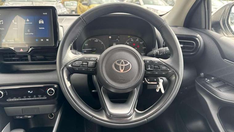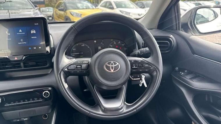 4.2" coloured TFT multi information display with analogue speedometer, Adaptive cruise control, Adjustable speed limit with speed warning, Bluetooth connectivity, E-call, Electric power steering, Hybrid energy display, Lane trace assist, Multi information display switches on steering wheel, Pre-collision system (PCS), Reversing camera, Smartphone integration with Apple CarPlay and Android auto, Tailgate, Voice recognition, Vehicle Stability Control (VSC), 4 speakers, 9" Multimedia touch display, Toyota Touch 3 system with DAB radio, USB connection, Acoustic windscreen glass, Auto high beam assist, Auto windscreen wipers, Automatic headlights, Body coloured door mirrors, Bulb indicators, Chequered front grille, Daytime running lights, Electric adjustable heated door mirrors, Follow me home headlights, Front auto power windows with anti jam protection, Front halogen fog lights, Halogen projector headlights, LED High mounted stop lamp, Manual headlight levelling, Rain sensor, Rear auto power windows with anti jam protection, Rear roof spoiler, Rear side wing doors, Rear wiper, Shark fin antenna, Turning signal integrated indicators in door mirrors, Variable front intermittent wipers, 3 adjustable rear headrests, 3 seat bench in 2nd row, 3 spoke leather steering wheel, 60/40 split folding rear seat, Active headrests, Adjustable boot height, Auto air conditioning, Coat hooks in rear grab handles, Cup holders (2 front & door), Data Communication Module (DCM) connected services, Fabric upholstery, Front armrest, Glovebox, Grey roof lining, Height adjustable driver's seat, Isofix seat fixing, Leather gearshift, Pollen filter, Shopping bag hooks, Single front passenger seat, Tilt/telescopic steering column, 3 point seatbelts on all rear seats, ABS+EBD+Brake assist, Electronic parking brake, Emergency brake light system (EBS), Front passenger airbag on/off switch, Front seatbelt reminder, Hill start assist control (HAC), Rear child proof door locks, Rear seat belt reminder, Supplemental Restraint System (SRS) 8 airbags: Driver & passenger's airbags, dual side curtain airbags, side impact airbags, front centre airbag, Toyota Safety Sense 3 with over the air updates, Tyre pressure warning system, 2x Master key, Alarm/immobiliser, Remote powered central double locking doors, Soft touch instrument panel, 16" 5 spoke silver finish alloy wheels, Space saver spare wheel,