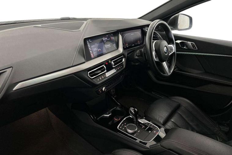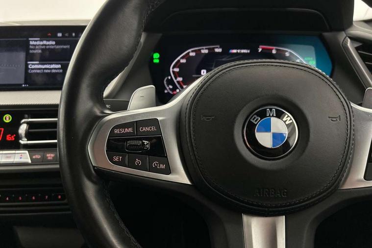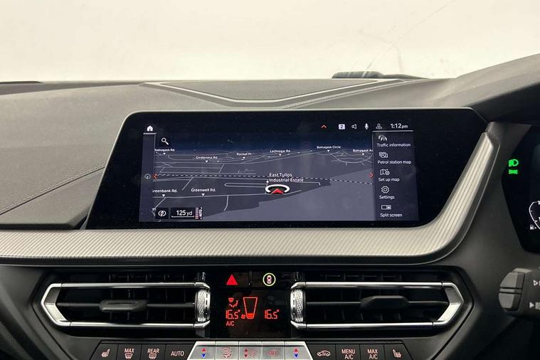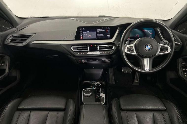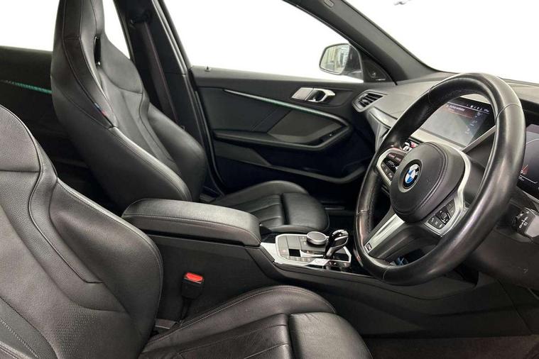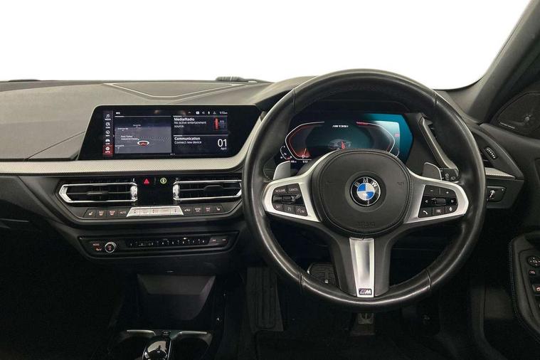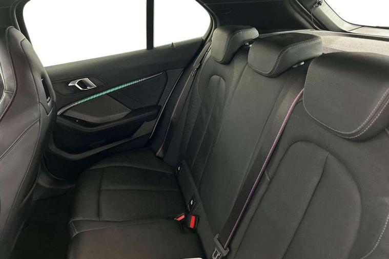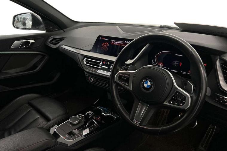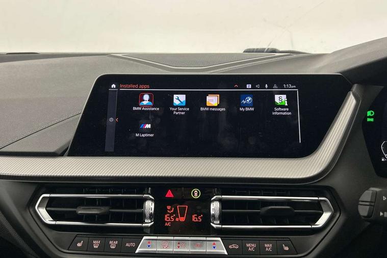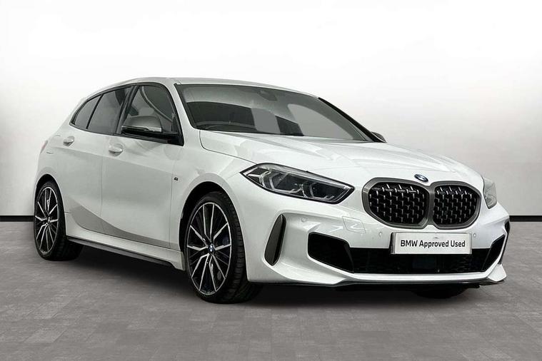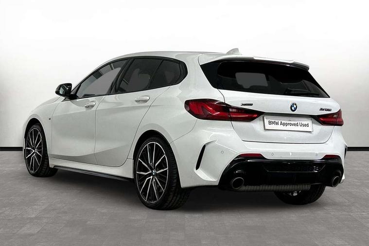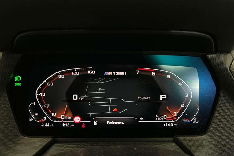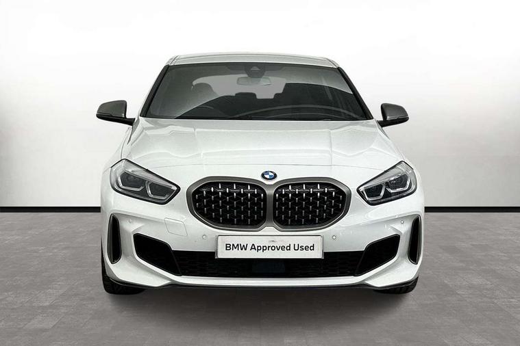 Active guard plus, Attentiveness assist, Bluetooth / WiFi interface for wireless connection of mobile terminal devices and audio streaming, BMW ConnectedDrive online services, BMW Teleservices, Check Control warning system for monitoring of lights and door/luggage compartment open warning, Eco pro mode, Electro hydraulically controlled multi-plate clutch transfers drive to rear axle and with power take-off device located on the front differential., Energy efficient operating strategy, Front axle single joint with specific axle kinematics to minimise drive influences on steering + provide increased rigidity agile driving behaviour, Gearshift time display in manual mode, Integrated owners handbook, M Sports steering with M135i xDrive specific settings, Oil sensor for level and grade, On board computer, Optimum shift indicator, Personal Profile, Pull away assistant, Rigidly mounted rear subframe - Multi link construction with separate spring / damper configuration and excellent driving characteristics, Speed limit Info including no-overtaking indicator, Speed limiter, Sporty fast gear shifting in sport mode, Aluminium lightweight construction, Anti roll bar front and rear, Balancer shaft, Double VANOS, Drive Performance Control, Eight speed sport automatic transmission with gearshift paddle switches, Electronic differential lock, Electronic selector lever, Engine cover with M performance designation, High precision injection, Larger fuel tank capacity (50 litres), Launch control, M135i specific heavily de-throttled engine intake air guide, M135i specific high-performance cooling package, M135i specific larger turbocharger with integrated divert-air valve, Petrol Particulate Filter, Twin tube gas filled shock absorbers with degressive characteristic curve, VALVETRONIC engine management, Variable, stepless and infinitely adjustable distribution of drive torque between the front and rear axles, xDrive intelligent all wheel drive with M135i specific reinforced components, DAB Digital radio, Stereo speaker system with 2 mid range speakers in the front door trims and rear parcel shelf + 2 central bass speakers underneath the front seats, Auto dimming rear view mirror, Automatic headlight beam throw control, Automatic windscreen wipers and automatic headlight, Body colour door handles, Body colour roof trims, Cerium grey exterior mirror caps, Direction indicator side lights in exterior mirrors, Exhaust tailpipe, Cerium Grey with bevelled finish - twin, round 100mm, left and right split, Fading support, Folding side mirrors with auto dimming/folding wing mirrors with auto dimming, Follow me home headlights, Front and rear bumper system with replaceable deformation elements, Front and rear electric windows with open and close fingertip control, anti trap facility and comfort closing, Front door sill finishers with M135i designation, Green tinted heat protection glazing, Heated, electrically adjustable exterior mirror aspheric on driver side, convex on passenger side, High gloss shadowline window frame, Recess cover mirror frames and B/C pillar embelisher trim, High level third brake light, Integrated front windscreen with washer jets, Kidney grille frame in Cerium Grey with Mesh design, LED daytime running lights, LED eyebrow turn indicators, LED front fog lights, Lightweight engineering, M logo designation side in cerium grey, M Performance exhaust system with valve control and minimised exhaust back pressure, M Performance specific setup, M Sport spoiler, Matt black air guide grilles, Matt black wheel arch trim, Model designation on electric bootlid includes xDrive designation for M135i xDrive, Nearside reverse light in rear light cluster, Preparation for high beam assistant, Rear fog lights, Rear window wiper, Reinforced crank drive, new pistons and adapted con rods, Shark fin antenna, Trailer stabilisation logic, Visible VIN plate, Welcome lighting, 12V power socket in front centre console with blanking plug, 3 rear seat head restraints, 3 spoke sports leather steering wheel with black leather and stitching, pearl chrome decorative finish, specific M Badge, Ambient interior lighting, Anthracite headlining, Child seat ISOFIX attachment for two outer rear seats and front passenger seat with anchorage points, Conditioned based service, Driver and front passenger seat heating, Floor mats in anthracite velour with contrasting colour seam to match contrast stitching on instrument panel, Folding rear clothes hook, Four grab handles integrated in roof lining, Front and rear door pockets with bottle holders, Front and rear side armrest integrated into door trim, Front armrest, Front M sports seats, Glove compartment, Height adjustable front head restraints, Luggage compartment for bag hooks on left and right, foldable luggage compartment liner and two lashing eyelets, Manual adjust steering wheel, Multi-function controls for steering wheel, Storage compartment in centre console, Sun visors with vanity mirrors and insert tab, Two front centre console cupholders, Two zone automatic air conditioning, Additional interior lighting pack - 1 Series M135i, Additional storage compartment pack with code 493 -1 series, BMW live cockpit professional pack- 1 Series, Connected pack professional - 1 Series, Interior lights pack - 1 Series, M Sport exterior styling aerodynamics pack - 1 Series 135i, 2 tone horn, 3 point seatbelts on all seats, front pyrotechnic belt tensioners, stopper and belt force limiters, rear coded belt buckles, Airbags - Front driver/passenger, front and rear curtain head protection, front side, manual deactivation of front passenger airbag, Anti lock braking system (ABS) with brake assist, BMW emergency call, Brake drying, Braking readiness, Child proof locking system in rear door, Comfort modes, Cornering brake control, Crash sensor activating central locking release, hazard warning lights, fuel cut off, interior lighting + activation of safety battery terminal clamp, Driver and front passenger