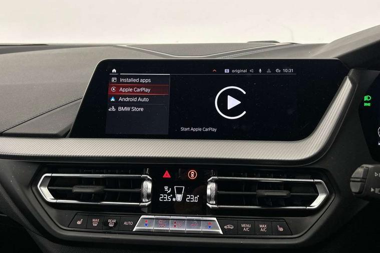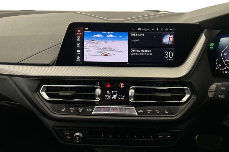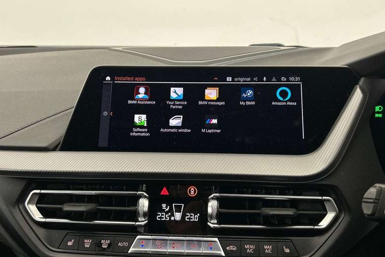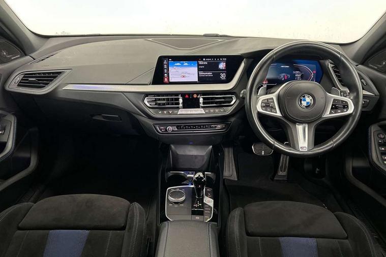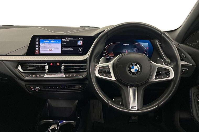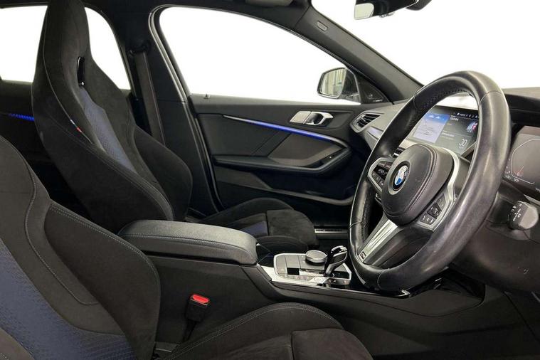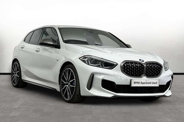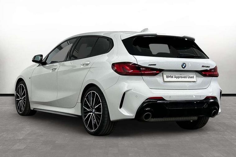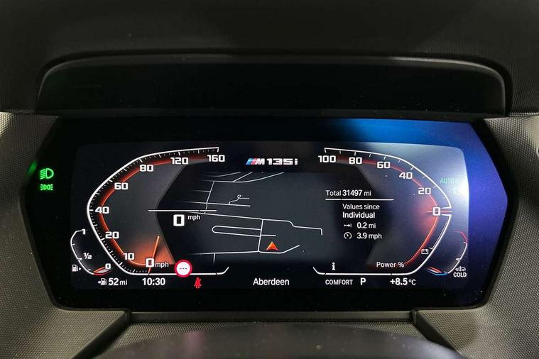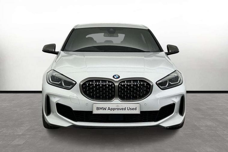 Active guard plus, Attentiveness assist, BMW ConnectedDrive online services, BMW Teleservices, Check Control warning system for monitoring of lights and door/luggage compartment open warning, Cruise control with brake assist, Eco pro mode, Electric power steering, Electro hydraulically controlled multi-plate clutch transfers drive to rear axle and with power take-off device located on the front differential., Energy efficient operating strategy, Front axle single joint with specific axle kinematics to minimise drive influences on steering + provide increased rigidity agile driving behaviour, Gearshift time display in manual mode, Integrated owners handbook, Lane departure warning system, M Sports steering with M135i xDrive specific settings, Oil sensor for level and grade, On board computer, Optimum shift indicator, Personal Profile, Pull away assistant, Rigidly mounted rear subframe - Multi link construction with separate spring / damper configuration and excellent driving characteristics, Speed limit Info including no-overtaking indicator, Speed limiter, Sporty fast gear shifting in sport mode, Aluminium lightweight construction, Anti roll bar front and rear, Balancer shaft, Double VANOS, Drive Performance Control, Eight speed sport automatic transmission with gearshift paddle switches, Electronic differential lock, Electronic selector lever, Engine cover with M performance designation, High precision injection, Larger fuel tank capacity (50 litres), Launch control, M135i specific heavily de-throttled engine intake air guide, M135i specific high-performance cooling package, M135i specific larger turbocharger with integrated divert-air valve, Petrol Particulate Filter, Twin tube gas filled shock absorbers with degressive characteristic curve, VALVETRONIC engine management, Variable, stepless and infinitely adjustable distribution of drive torque between the front and rear axles, xDrive intelligent all wheel drive with M135i specific reinforced components, DAB Digital radio, Auto dimming rear view mirror, Automatic headlight beam throw control, Automatic windscreen wipers and automatic headlight, Body colour door handles, Body colour roof trims, Cerium grey exterior mirror caps, Direction indicator side lights in exterior mirrors, Exhaust tailpipe, Cerium Grey with bevelled finish - twin, round 100mm, left and right split, Fading support, Folding side mirrors with auto dimming/folding wing mirrors with auto dimming, Follow me home headlights, Front and rear bumper system with replaceable deformation elements, Front and rear electric windows with open and close fingertip control, anti trap facility and comfort closing, Front door sill finishers with M135i designation, Green tinted heat protection glazing, Heated, electrically adjustable exterior mirror aspheric on driver side, convex on passenger side, High gloss shadowline window frame, Recess cover mirror frames and B/C pillar embelisher trim, High level third brake light, Integrated front windscreen with washer jets, Kidney grille frame in Cerium Grey with Mesh design, LED daytime running lights, LED eyebrow turn indicators, LED front fog lights, Lightweight engineering, M logo designation side in cerium grey, M Performance exhaust system with valve control and minimised exhaust back pressure, M Performance specific setup, M Sport spoiler, Matt black air guide grilles, Matt black wheel arch trim, Model designation on electric bootlid includes xDrive designation for M135i xDrive, Nearside reverse light in rear light cluster, Preparation for high beam assistant, Rear fog lights, Rear side wing doors, Rear window wiper, Reinforced crank drive, new pistons and adapted con rods, Shark fin antenna, Trailer stabilisation logic, Visible VIN plate, Welcome lighting, 12V power socket in front centre console with blanking plug, 3 rear seat head restraints, 3 seat bench in 2nd row, 3 spoke sports leather steering wheel with black leather and stitching, pearl chrome decorative finish, specific M Badge, Ambient interior lighting, Anthracite headlining, Black boot net with lashing eyes, Cargo function on 2nd seat row, Child seat ISOFIX attachment for two outer rear seats and front passenger seat with anchorage points, Conditioned based service, Driver and front passenger seat heating, Folding rear clothes hook, Four grab handles integrated in roof lining, Front and rear door pockets with bottle holders, Front and rear side armrest integrated into door trim, Front armrest, Front integrated head restraints, Front M sports seats, Glove compartment, Luggage compartment for bag hooks on left and right, foldable luggage compartment liner and four lashing eyelets, Manual adjust steering wheel, Multi-function controls for steering wheel, Single front passenger seat, Storage compartment in centre console, Sun visors with vanity mirrors and insert tab, Two front centre console cupholders, Two zone automatic air conditioning, Velour floor mats, Additional interior lighting pack - 1 Series M135i, BMW live cockpit professional pack- 1 Series, Connected pack professional - 1 Series, Interior lights pack - 1 Series, M Sport exterior styling aerodynamics pack - 1 Series 135i, 2 tone horn, 3 point seatbelts on all seats, front pyrotechnic belt tensioners, stopper and belt force limiters, rear coded belt buckles, Airbags - Front driver/passenger, front and rear curtain head protection, front side, manual deactivation of front passenger airbag, Anti lock braking system (ABS) with brake assist, BMW emergency call, Brake drying, Braking readiness, Child proof locking system in rear door, City braking function, Comfort modes, Cornering brake control, Crash sensor activating central locking release, hazard warning lights, fuel cut off, interior lighting + activation of safety battery terminal clamp, Driver and front passenger seat belt security check, Dynamic stability control + (DSC+), Dynamic Traction Control - DTC, Electrically operated hand brake including automatic ho