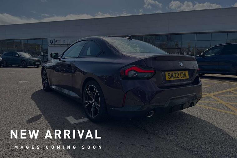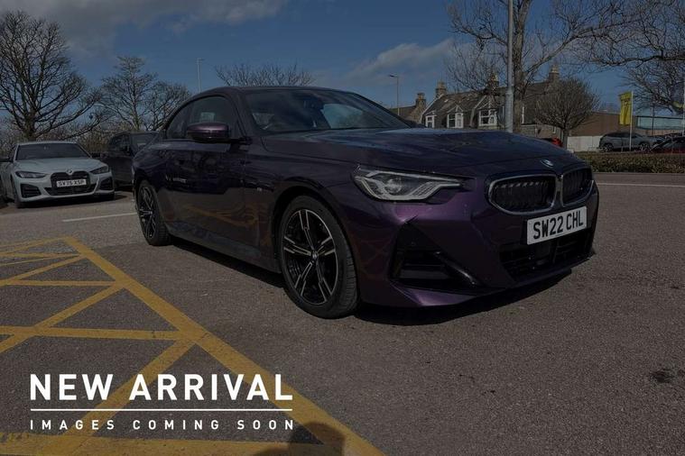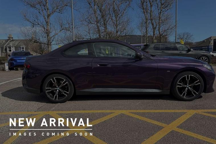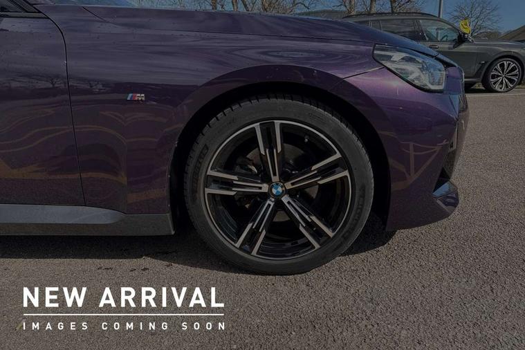 Attentiveness assist, Auto start-stop, Bluetooth, BMW ConnectedDrive online services, BMW Teleservices, Check Control warning system for monitoring of lights and door/luggage compartment open warning, Direct selection buttons, Drive off assistant, Eco pro mode, Electric power steering, Front/rear Parking distance control, iDrive controller with turn and press function, Integrated owners handbook, Intelligent functions, Live cockpit plus with nav function 12.3" instrument cluster and 14.9" centre display, Oil sensor for level and grade, Optimum shift indicator, Personal Profile, Touch operation on control display, Variable sport steering, Widescreen multi-media display, Aluminium lightweight construction, Balancer shaft, BMW TwinPower Turbo four-cylinder petrol engine, Double VANOS, Drive performance control with ECO PRO comfort + sport mode, Electronic differential lock, High precision injection, M sport suspension, Petrol Particulate Filter, Sport automatic steptronic transmission with gearshift paddles, manual gearshift time display, launch control, coasting idle ECO PRO/COMFORT modes, Twin scroll turbocharger with Valvetronic, DAB tuner, Acoustic windscreen wipers for reduced driving noise, Adaptive LED Headlights, Automatic windscreen wipers and automatic headlight, Automatically dimming rear view mirror, Body colour door handles flush with door surface, Body colour door mirrors, Body colour front and rear bumpers, Daytime running lights, Electric windows - front and rear, with open/close fingertip control and trap release, Exhaust tailpipes x2 - 90mm in left and right, Fading support, Front and rear bumper system with replaceable deformation elements, Front door sill finishers in black plastic with BMW designation, Front windscreen wipers with integrated washer jets, Green tinted heat protection glazing, High beam assistant, High gloss shadowline exterior trim in mirror triangle cover, mirror cover panel, mirror bezel and window border, High level third brake light, Indicators integrated int mirror housing, LED registration plate light, LED technology rear tail lights, brake lights and turn indicators, Lightweight engineering, Model designation on right side of tailgate, One piece kidney grille with hight gloss chrome surround, Rear boot, Rear fog lights, Reversing light in rear light cluster, Shark fin antenna, Single part LED rear lights with smoked glass components, Trailer stabilisation logic, Visible VIN plate, 12V power socket in front centre console with blanking plug, 2 cupholders in front centre console, 3 zone automatic air conditioning, Ambient lighting, Compartment in front of cupholder, Conditioned based service, Driver seat backrest width adjustment, Front and rear side armrests integrated into door trim, Front armrest, Front door pockets, Front head restraints, Front sport seats, Heated front seats, Illuminated glove compartment with separate small compartment, M headliner Anthracite, M sport leather steering wheel, Manually adjustment steering wheel column, Rear seat backrest with manual 40:20:40 split folding, Rear seat centre foldable armrest with integrated cup holder, Single front passenger seat, Storage compartment between rear seats, Storage tray and compartment with cover in centre console, Sun visors with vanity mirrors and insert tab, Through loading system with 40/20/40 split folding 2 rear seat in 2nd row, Two folding rear seat headrests, Velour floor mats, Additional storage compartment pack without USB - 2 Series Coupe, Connected pack professional - 2 Series Coupe, Interior and exterior mirror pack - 2 Series Coupe, M Sport exterior styling aerodynamics pack - 2 Series Coupe, 2 tone horn, Anti lock braking system (ABS) with cornering brake control, Automatic Stability Control (ASC), BMW emergency call, Brake drying, Child seat ISOFIX attachment for the two outer rear seats, Crash sensor activating of airbags, Unlocking doors, hazard warning lights, interior light, safety battery terminal, Deactivation of fuel pump in the event of a crash, Driver and front passenger airbags, Driver and front passenger side airbags, integrated in the door side seat backrest bolsters for all seat variants, Dynamic brake control, Dynamic stability control + (DSC+), Dynamic Traction Control - DTC, Electrically operated hand brake including automatic hold function and automatic release when driving off, Front and rear disc brakes, Front passenger airbag deactivation, Head airbags for all 4 outer seats, Manual deactivation of front passenger airbag, Seat belt security check for driver and front passenger, Seatbelt warning, Side impact protection, Three point seat belts on 4 seats including front belt stopper, pyrotechnic belt tensioners and belt force limiters, Tyre pressure sensor, Warning triangle and first aid kit, Alarm system (Thatcham 1) with remote control and electronic engine immobiliser, Central locking switch for all doors, fuel filler cap and luggage compartment, Deadlocking function system to all doors, Drive away locking system on all doors and luggage compartment, Locking wheel bolts, Start/Stop button (illuminated) in centre console with keyless engine start and Auto Start-Stop deactivation button, Two remote control key with integrated key - one button for open and close doors/fuel flap/tailgate and separate button for unlock luggage compartment, BMW mobility tyre sealing system, Electrically powered 12V compressor, Reduced rolling resistance tyres,