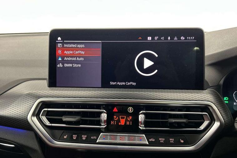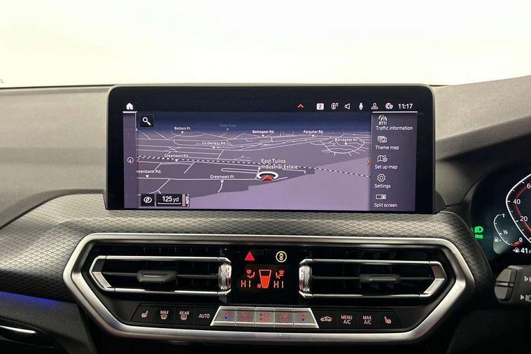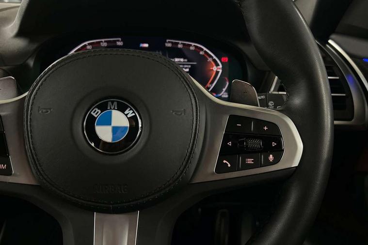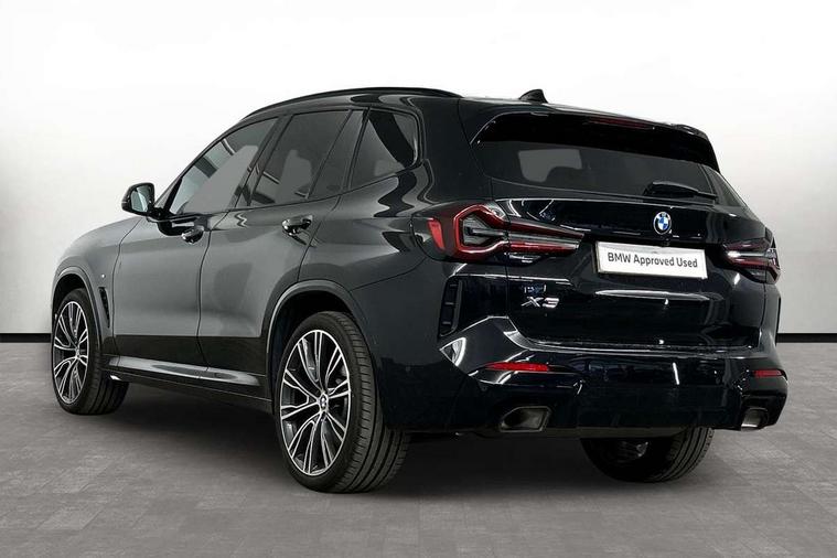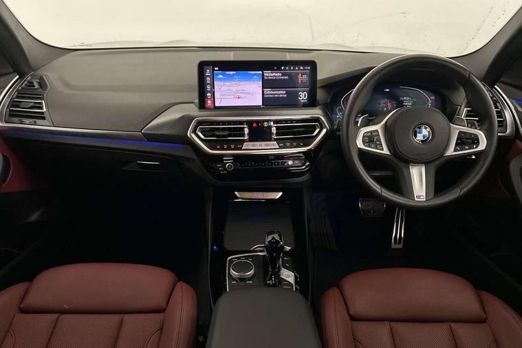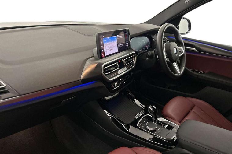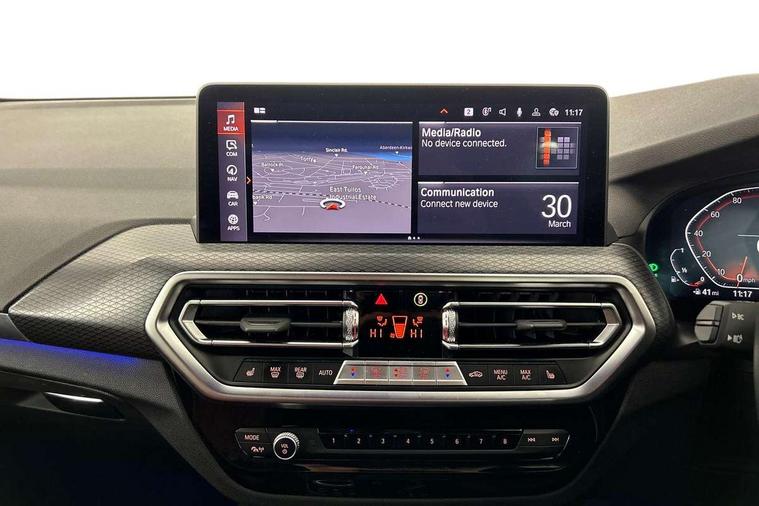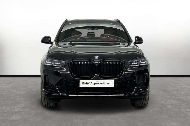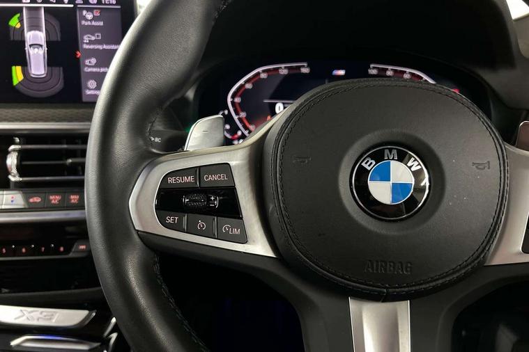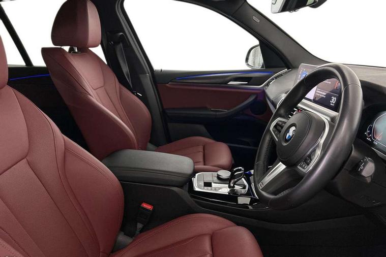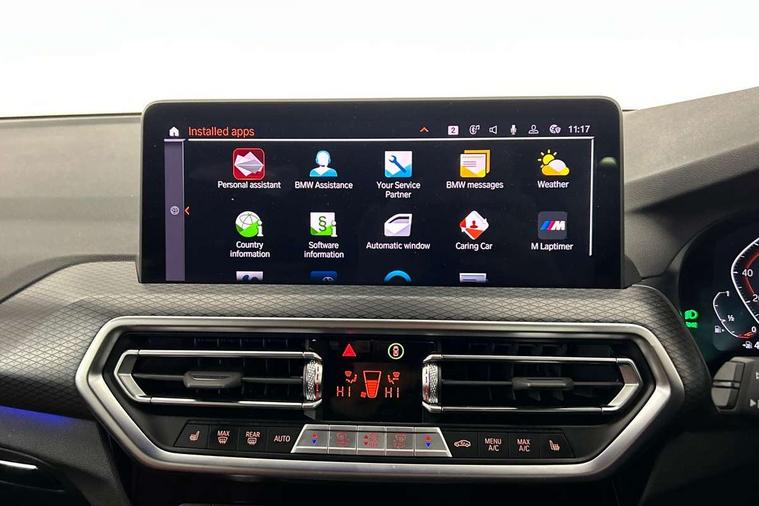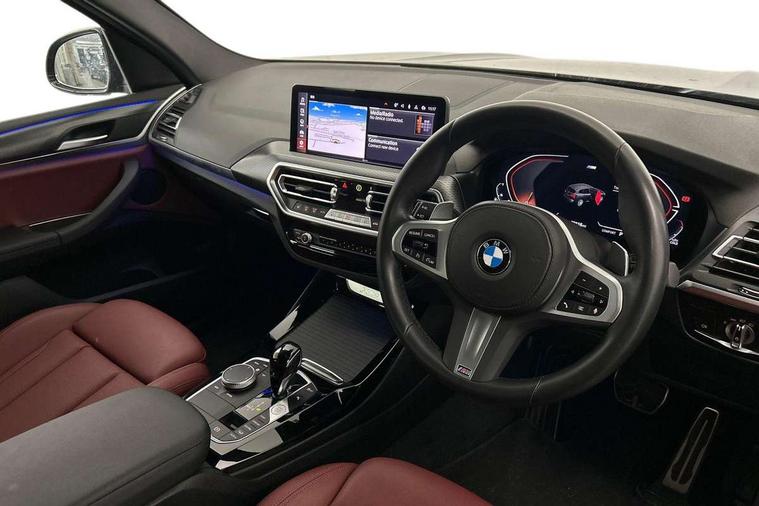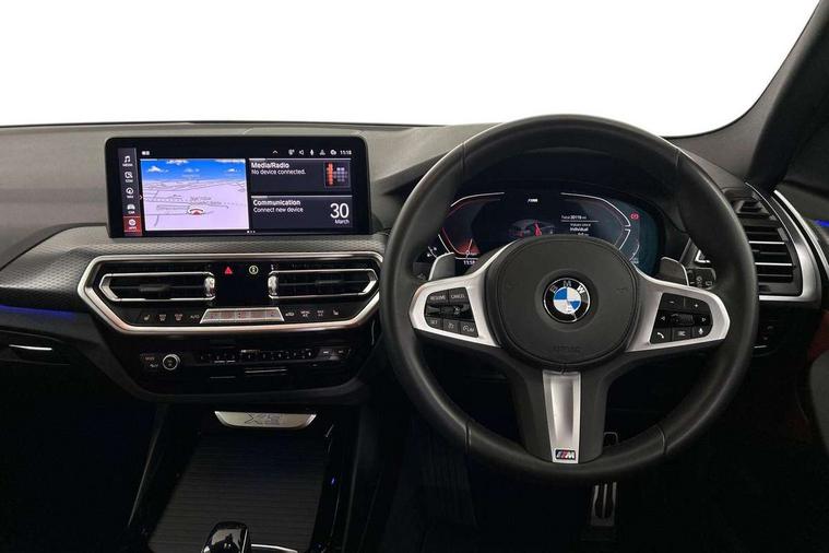 Active Guard, Attentiveness assist, BMW Live Cockpit Professional nav system including 12.3" instrument display + 12.3 high resolution control display, BMW Online services, BMW Teleservices, Brake pad wear indicator in front and rear, Check Control warning system for monitoring of lights and door/luggage compartment open warning, Condition based service - BMW service history, electronic service booklet, integrated owner's handbook, Connected drive services, Electric boot lid, Front/rear Parking distance control, iDrive touch controller with 8 favourite buttons, Instrument cluster with speedometer with mph readout, tachometer, fuel gauge and oil temperature gauge, Lights on warning by audio warning signal when ignition is switched off, Oil sensor for level and grade, warning by check control system, On board computer - average speed+fuel consumption, service interval, clock/date, odometer/trip meter, outside temperature display and ice warning, Optimum shift indicator, Personal Profile - automatic lock when driving away selectable, Run flat indicator, Stop/start system, Variable sports power steering with drive performance control Sport+ mode, Automatic transmission with gearshift paddles, Incorrect fuelling protection, M sport suspension, Multi-link rear suspension, BMW professional radio/CD/MP3, DAB tuner, Acoustic glazing, Automatic windscreen wipers and automatic headlight, Black finish on B pillars, Body colour door handles, Body colour electric adjust heated aspherical door mirrors, Body colour roof mouldings, Body coloured bumpers, Direction indicator, side repeaters, integrated in exterior mirrors, Dynamic brake lights, Exhaust tailpipes - dual, round, split left and right with chrome finisher, Fingertip control / anti-trap function on electric window, Folding wing mirrors with auto dimming, Follow me home headlights, Front and rear bumper system with replaceable deformation elements, Front and rear electric windows, Gloss chrome tailpipes finishers, Green tinted heat insulating glass, Heated windscreen washer jets, High beam assistant, High gloss black shadow line roof rails, High gloss shadowline exterior trim in decorative moulding side frame/recess cover/guide rail/B, C pillars/mirror frame and triangle with mirror base, High level 3rd brake light incorporating LED Technology, Interior rear view electrochromatic mirror with automatic anti dazzle function, LED tail lights, Lightweight engineering, M aerodynamic bodystyling, M Sport entry door sill strips, Model designation, Rain sensor, Rear side wing doors, Rear wing door, Rear wiper, Shark fin antenna, Side exterior M designation badges, Visible VIN plate, Welcome lighting, Windscreen wipers with adjustable interval, 12V power point in luggage area, 12V power socket in front centre console, 2 x USB Type C ports for charging and data transmission (front centre console) and 2 x USB Type C ports for charging (rear centre console), 3 rear headrests, 3 seat bench in 2nd row, 3 zone automatic air conditioning, 4 lashing points to secure luggage, 40:20:40 split folding rear seat with loading system, Ambient lighting, Anthracite headlining, Automatic interior light when door is opened/ignition switched off or via remote key, Floor mats in velour, Foldable storage floor with compartment, Four grab handles integrated in roof lining, Front and rear bottle holders integrated into door trim storage compartments, Front and rear side armrests integrated into door trim, Front centre armrest with storage compartment, Front footwell lights, Front head restraints, Front passenger seat, Front sports seats, Front/rear courtesy lights with soft on/off dimming, Front/rear reading lights, Heated front seats, Isofix rear child seat preparation, Leather gear knob, Lockable glove compartment, Luggage area underfloor compartment, Luggage compartment lighting, M sport leather steering wheel, Multifunction steering wheel, Parcel shelf removeable and storable under boot floor, Reach and rake adjustable steering column, Rear centre armrest with 2 cupholders, Removable / retractable luggage cover, Slope adjustable rear seats, Storage compartment in rear centre console and front/rear door trims, Sun visors with vanity mirrors and ticket pocket, Toolkit located in luggage compartment, Two front cupholders with removable oddments tray/lid, Connected pro pack - X3, ADB - Automatic Differential Brake, Anti-lock braking system (ABS) with brake assist, Automatic Stability Control (ASC), Battery safety cut-off, BMW emergency call, Brake drying, Brake energy regeneration, Braking pre-tensioning, Child locks on rear doors, Cornering brake control (CBC), Crash Sensor - activation of central locking release, hazard warning light and interior lighting, Deactivation of fuel pump in the event of a crash, Driver and front passenger front and side airbags with passenger deactivation and ITS front and rear head airbags, Driver and front passenger knee airbag, DSC+, Dynamic brake control, Dynamic Traction Control - DTC, Electromechanical parking brake, Hill descent control, Hill start assist, Seatbelt security check for front seats, Side impact protection, Three point seatbelts to all seats with front and outer rear pyrotechnic belt tensioners and seat belt force limiters, Two tone horn, Tyre pressure sensor, Ventilated front and rear disc brakes, Warning triangle and first aid kit, Central locking switch for all doors, fuel filler cap and luggage compartment, Electronic engine immobiliser, Locking wheel nuts, Remote control including two integrated key - one button for open/close all lockable content, windows and separate button for open luggage compartment, Remote control Thatcham category 1 alarm, Start/stop button with Comfort Go keyless engine start and auto Start/stop deactivation button, Low rolling resistance tyres,