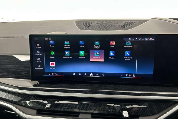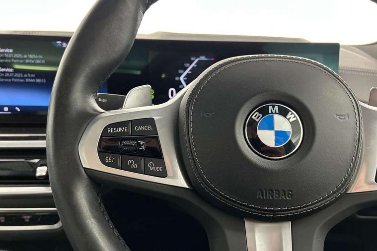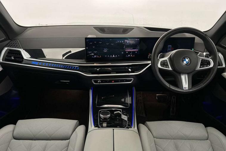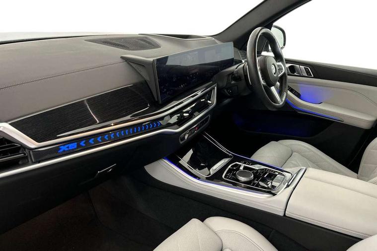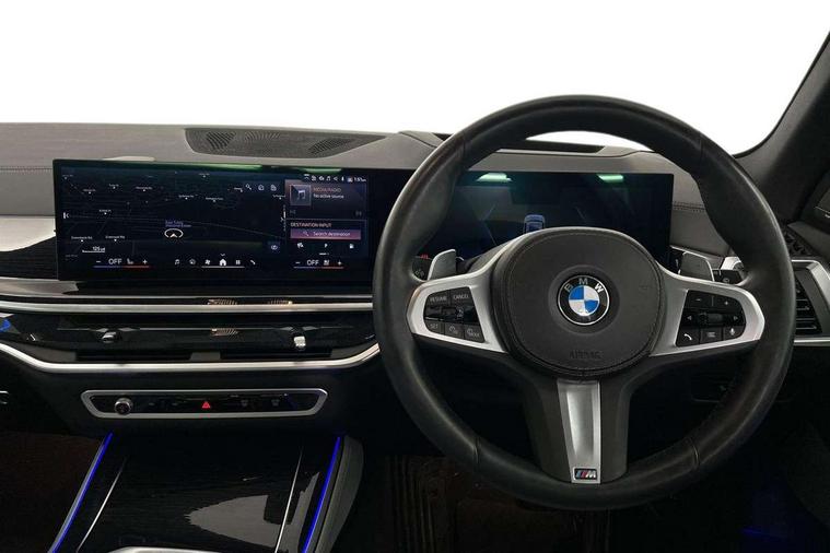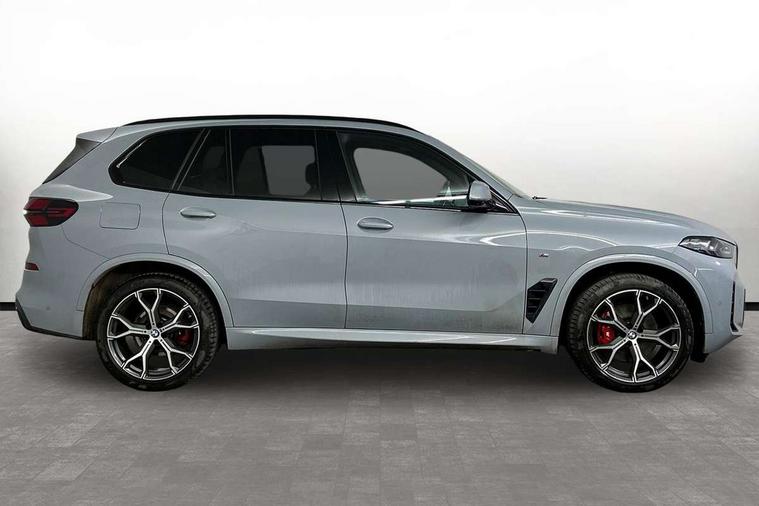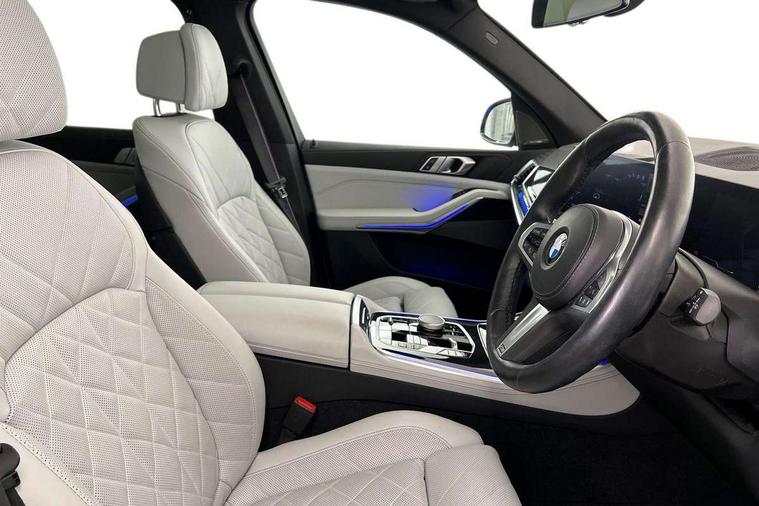 Attentiveness assist, Automatic tailgate operation, BMW ConnectedDrive online services, BMW live cockpit + with curved 12.3 instrument cluster/14.9 central display, nav/Tuner with diversity reception, RDS/4GLTE/remote software upgrade, BMW Recovery system, BMW Teleservices, Condition based service, Cruise control with brake assist, eCall emergency call system, Enhanced bluetooth with wireless charging, Integrated owner's handbook, PAS, Speed limiter, Wi-Fi hotspot, Drive performance control with ECO PRO comfort + sport mode, Eight speed steptronic sport automatic transmission and gearshift paddles on the steering wheel, Hi-Fi loudspeaker system, Adaptive LED Headlights, Front and rear electric windows, High beam assistant, High gloss black shadow line roof rails, LED daytime running lights, Rear side wing doors, Third brake light in rear spoiler, Variable intermittent rear wash/wipe, 12V - Power sockets with 2x centre console and 1x luggage compartment, 3 seat bench in 2nd row, Foldable rear centre armrest with 2 cupholders and storage compartment, Front and rear side armrest integrated into door trim, Headrests for all seats, Luggage compartment separating net, Single front passenger seat, Three spoke sport M leather steering wheel, Velour floormats, Ambient light interior pack - X5, Driving assistant pack with radar based driver assistance system - X5, Expanded exterior mirror pack - X5/X5 M, M aerodynamics pack - X5, 3 rear seatbelts, Active protection, Airbags - driver/front passenger, rear and side, first and second row seats head airbags, front passenger seat airbag deactivation + knee airbag, Anti-lock braking system (ABS), Automatic Stability Control (ASC), Brake energy regeneration, Cornering brake control (CBC), Crash sensor activating central locking release, hazard warning lights, fuel cut off, interior lighting + activation of safety battery terminal clamp, DSC - Dynamic Stability Control, Dynamic Traction Control - DTC, Electromechanical parking brake with automatic drive away release and auto hold function, Electronic brake force distribution, Hill start assistant, M Sport blue painted brake calipers with 'M' designation, Mechanical child proof lock on rear doors, Tyre pressure monitoring system, Tyre pressure sensors, Ventilated front and rear disc brakes, Warning triangle and first aid kit, Closing system with central locking, Comfort access system, Locking wheel bolts, Sensatec instrument panel,