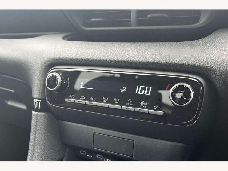 7" Digital Combimeter, Adaptive cruise control, Adjustable speed limit with speed warning, Bluetooth connectivity, Colour binocular inspired displays with digital speedometer, E-call, Electric power steering, Hybrid energy display, Lane trace assist, Multi information display switches on steering wheel, Pre-collision system (PCS), Reversing camera, Smartphone integration with Apple CarPlay and Android auto, Tailgate, Voice recognition, Vehicle Stability Control (VSC), 4 speakers, 9" Multimedia touch display, Toyota Touch 3 system with DAB radio, USB connection, Acoustic windscreen glass, Auto high beam assist, Auto windscreen wipers, Automatic headlights, Body coloured door mirrors, Electric adjustable heated door mirrors, Follow me home headlights, Front auto power windows with anti jam protection, LED daytime running lights, LED front fog lights, LED front light guide, LED Headlights, LED High mounted stop lamp, LED Indicators, LED rear light guide, Manual headlight levelling, Painted chequered front grille, Rain sensor, Rear auto power windows with anti jam protection, Rear privacy glass, Rear roof spoiler, Rear side wing doors, Rear wiper, Shark fin antenna, Turning signal integrated indicators in door mirrors, Variable front intermittent wipers, 3 adjustable rear headrests, 3 seat bench in 2nd row, 3 spoke leather steering wheel, 60/40 split folding rear seat, Active headrests, Adjustable boot height, Auto air conditioning, Coat hooks in rear grab handles, Cup holders (2 front & door), Data Communication Module (DCM) connected services, Fabric upholstery, Front armrest, Glovebox, Grey roof lining, Height adjustable driver's seat, Isofix seat fixing, Leather gearshift, Pollen filter, Shopping bag hooks, Single front passenger seat, Tilt/telescopic steering column, 3 point seatbelts on all rear seats, ABS+EBD+Brake assist, Electronic parking brake, Emergency brake light system (EBS), Front passenger airbag on/off switch, Front seatbelt reminder, Hill start assist control (HAC), Rear child proof door locks, Rear seat belt reminder, Supplemental Restraint System (SRS) 8 airbags: Driver & passenger's airbags, dual side curtain airbags, side impact airbags, front centre airbag, Toyota Safety Sense 3 with over the air updates, Tyre pressure warning system, 2x Master key, Alarm/immobiliser, Remote powered central double locking doors, Soft touch instrument panel, Space saver spare wheel,