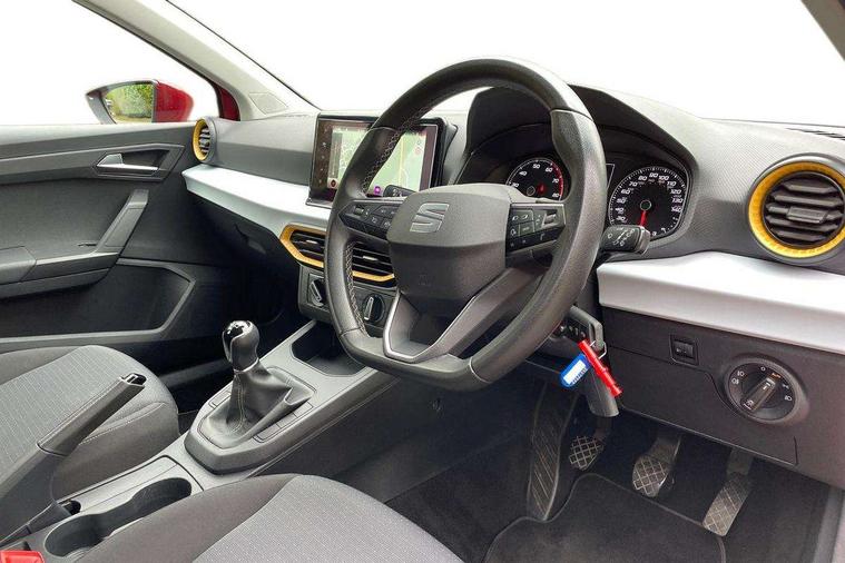'Lights On' Reminder warning buzzer, 9.2" touchscreen navigation system with type C USB socket, Voice control and DAB/AM/FM radio, Auto start and stop system, Bluetooth audio streaming with handsfree system, Cruise control, Digital clock, E-call, Full link smartphone integration with mirror link, wireless apple carplay, Google android auto + USB Type C cable for apple and android devices, Lane assist, Low fuel warning light, Outside temperature gauge, Power Steering, Seat connect with safety, service, remote and online, SEAT logo boot release, Speed limiter, Trip computer, Comfort suspension, Auxiliary input socket, Radio/MP3 player, SD card slot, Steering wheel mounted controls, Anti theft roof antenna, Body colour bumpers, Body colour door handles, Body colour door mirrors, Dimming interior rear view mirror, ECO LED automatic headlights and LED daytime running lights, Electric front windows, Electric headlight adjustment, Electrically adjustable door mirrors, Front/rear fog lights, Halogen tailights, Rain sensor, Rear side wing doors, Rear wiper, Third brake light, 3 seat bench in 2nd row, 60/40 split folding rear seat, Air conditioning with dust and pollen filter, Chrome interior detailing and grey headlining, Cloth upholstery, Comfort seats, Front courtesy lights, Front cupholders x 2, Front reading lights, Gear shift indicator, Glovebox, Height adjustable front and rear headrests (five), Height adjustable front seats, Height/reach adjust steering wheel, Illuminated boot, Instrument lighting with brightness control, Isofix, Leather multifunction flat bottomed sports steering wheel, Passenger sunvisor, Single front passenger seat, Sunvisors with mirror and driver side card holder, 3 point seatbelts on all 3 rear seats, ABS, Active front headrests, Child locks on rear doors, Electronic stability control, Energy recovery system, Front assist forward collision warning and autonomous emergency braking, Front driver and passenger side airbags with curtain airbag and front passenger airbag deactivation, Hill hold control, Multi-Collision braking, Seat belt reminder for front and rear seats, Tiredness recognition system, Tyre pressure monitoring system, Electronic engine immobiliser, Locking wheel bolts, Remote central locking + deadlocks, 16" Design machined alloy wheels in Nuclear grey,