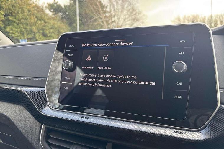 'Lights On' Reminder warning buzzer, 10.25" Digital cockpit pro, Advanced driver attention and drowsiness monitor, Blind spot monitoring, Car information display, Driver profile selection including ECO function, Dynamic road sign display, E-Sim card for online connectivity, eCall emergency call system, Front and rear parking sensors, Front assist, forward collision warning, autonomous emergency braking and speed limiter, Low washer fluid warning light, Multifunction computer with visual gear change recommendation for fuel consumption, Multifunction front facing camera for distance control, Operating permit alteration, Power assisted steering, Predictive adaptive cruise control, Preparation for navigation system with media and internet package, Preparation for We connect and We connect plus, Semi-automated driving assistance, travel assist including lane keeping system Lane Assist and emergency assisst, Speedo, rev counter, electronic odometer, trip, service interval display, exterior temperature and fuel gauge, Warning sound and light for doors and tailgate open, Warning sound and light for front seatbelts unfastened, Wireless Car net app connect with Apple CarPlay, combined functionality of Apple CarPlay/Android Auto and MirrorLink, Wireless charging, Misfuel prevention device, Start-stop system with battery regeneration (recuperation - energy recovery during braking), 2 USB C ports in front, 2 USB charging sockets on the centre console in the rear charging capacity upto 45W, Diversity antenna for FM reception, Music playback - MP3, WMA and AAC files, Radio, Automatic dimming interior rear view mirror, Automatic hazard lights activation under emergency braking, Automatic headlight control with LED separate daytime running light and coming home and leaving home feature, Body colour door handles, Body colour door mirrors, Body coloured bumpers, Dynamic headlight range control with self adjusting whilst driving, Electric folding door mirror, adjustable, heated with front passenger exterior mirror lowering function, Exterior mirrors convex on the left and aspherical on the right, Front and rear electric windows, Front door sill protectors with R-Line logo, Galvanised body, Heat insulating and laminated safety glass windshield, Heat insulating darkened glass in side and rear windows, High Beam Assist, automatic sensing for switching between dipped and main beam, LED rear combination lights, LED third brake light, Lower door sills and door pillars in black, Privacy glass for rear side windows and rear window, Rain sensor, Rear fog light on one side, reversing light on both sides, Rear side wing doors, Rear window aerial, Rear window wiper with intermittent control, Reflectors in all doors, Scuff plates, Tailgate with integrated roof spoiler, 12V Accessory socket in centre console, 2 Front and rear reading lights incorporating LED technology, 3 rear head restraints, 3 seat bench in 2nd row, 60/40 split folding rear seat backrest, Air care climatronic 2 zone air conditioning system, Ambient lighting, Brushed stainless steel pedals, Chrome plated radiator grille inserts, air vent surrounds and light switch surrounds, Cloth upholstery, Comfort front sport seats, Door and side trim panel, Drawer under drivers seat, Driver and front passenger sunvisor with vanity mirror, Dust and pollen filter, Front + rear carpet mats, Front centre armrest with storage compartment, Front footwell illumination, Front seat back storage pockets, Glove compartment door with light, Heated front seats, Heating and fresh air system with 4 stage blower, Height/reach adjust steering wheel, Instrument lighting white adjustable panel illumination, Interior light with switch off delay and dimmer, Isofix anchors for child seats on outer rear seats and front passenger seats, Leather gearshift handle, Leather wrapped multifunction steering wheel, Luggage compartment floor, Luggage compartment lighting, Manual front seats with height adjustment, Padded dashboard, Removable luggage compartment cover, Single front passenger seat, Storage compartment in drivers and front passengers door, Titanium black roof lining, Unsplit sliding rear seat bench, 3 point outer rear seat belts with ECE label, 3 Point seatbelt for centre rear seat, Anti-lock Braking System (ABS) with Hydraulic Brake Assist (HBA), Automatic post collision braking system, Disc brakes in front, Disc brakes in rear, Driver and front passenger safety-optimised head restraints, Drivers and Front Passengers airbags with front passengers airbag deactivation switch, ESC with EDL and ASR (traction control), Extended and predictive pedestrian/cyclist protection, Front and rear passenger curtain airbag system including front side airbags, Height adjustable front 3 point seatbelts + pretensioners, Hill start assist, Pre crash preventive occupant protection, Proactive passenger protection system in combination with front assist, Rear door child safety locks, Rigid safety cell with front and rear crumple zones, Single tone horn, Tyre pressure loss indicator, Volkswagen roadside assistance, Alarm with interior protection, Anti theft alarm system, Electronic engine immobiliser, Remote tailgate unlocking using key fob, Titanium Black Decorative inserts - R Line, Low rolling resistance tyres,
