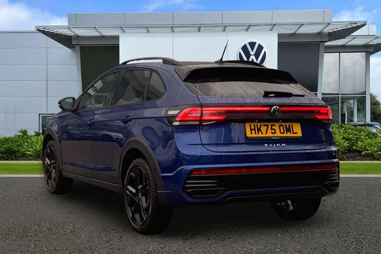 Advanced driver attention and drowsiness monitor, Digital cockpit pro - 10.25" high resolution TFT dash display screen with customizable menus and information, Driving profile selection, e-Call (emergency call), Power Steering, Predictive adaptive cruise control, Travel assist including emergency assist, Washer fluid level indicator, Wireless Charging including Bluetooth, Start-stop system with battery regeneration (recuperation - energy recovery during braking), XDS electronic differential lock for improved traction and handling, Digital radio reception (DAB+), WeConnect plus, Ambient lighting with logo projection, Aspherical driver's exterior mirror, Auto headlights, Body coloured bumpers, Body coloured door handles, Cornering headlights, Electric windows, External USB type C socket and charging sockets, LED rear combination lamp, LED third brake light, Left convex exterior mirror, Power folding adjustable/heated exterior mirrors and front passenger exterior mirror lowering function, Rear fog light on one side, reversing light on both sides, Rear side wing doors, Rear wash/wipe with intermittent wipe setting, 12V socket in centre console, 2 front reading lights, 3 rear head restraints, 3 seat bench in 2nd row, Air care climatronic air conditoning system with active combination filter and 2-zone temperature control, Black carpets, Black roof lining, Child seat anchor for child seat system i-Size, 2x top tether and child seat anchor in front on front passenger side, Chrome bezel for instrument cluster, vents, door handles + gear shift, Driver and front passenger seat height adjustment, Front + rear carpet mats, Front centre armrest, Front footwell illumination, Front sports comfort seats, Heated front seats, Height and reach adjustable steering wheel, Interior ambient lighting and surround lighting, Karoso artvelours cloth upholstery, Leather trimmed gear knob, Leather wrapped multifunction steering wheel, Luggage compartment floor, Luggage compartment light, Lumbar support for driver's and front passengers seat, Seat covers in grey + titanium black, Single front passenger seat, Split folding backrest with centre armrest and unsplit rear seat bench, Stainless steel pedals, Storage compartment under front seats, Sun visors with illuminated vanity mirrors, Black design pack - Taigo Black Edition, Black roof pack with mirror housing - Taigo, IQ.LIGHT - LED matrix headlights pack - Taigo, Light and Sight pack including High beam assist - Taigo, 2 x 3-point seatbelts/outer rear seats with ECE label, 3-point seat belts in front with pretensioner and height adjustment, 3-point seatbelt for centre rear seat, Adaptive driver and front passenger airbags with passenger airbag deactivation function, Driver and front passenger safety-optimised head restraints, Electronic stability control, Extended and predictive pedestrian/ cyclist protection, Front and rear disc brakes, Front curtain and side airbags with center airbag, Hill start assist, Manual rear child locks, Single tone horn, Tyre pressure loss indicator, Anti-theft alarm system with interior monitoring, backup horn, and towing protection, Grey anodised matte decorative inserts in dash and front door panels, 18" Misano black alloy wheels with diamond-turned surface, Breakdown kit, Low rolling resistance tyres,